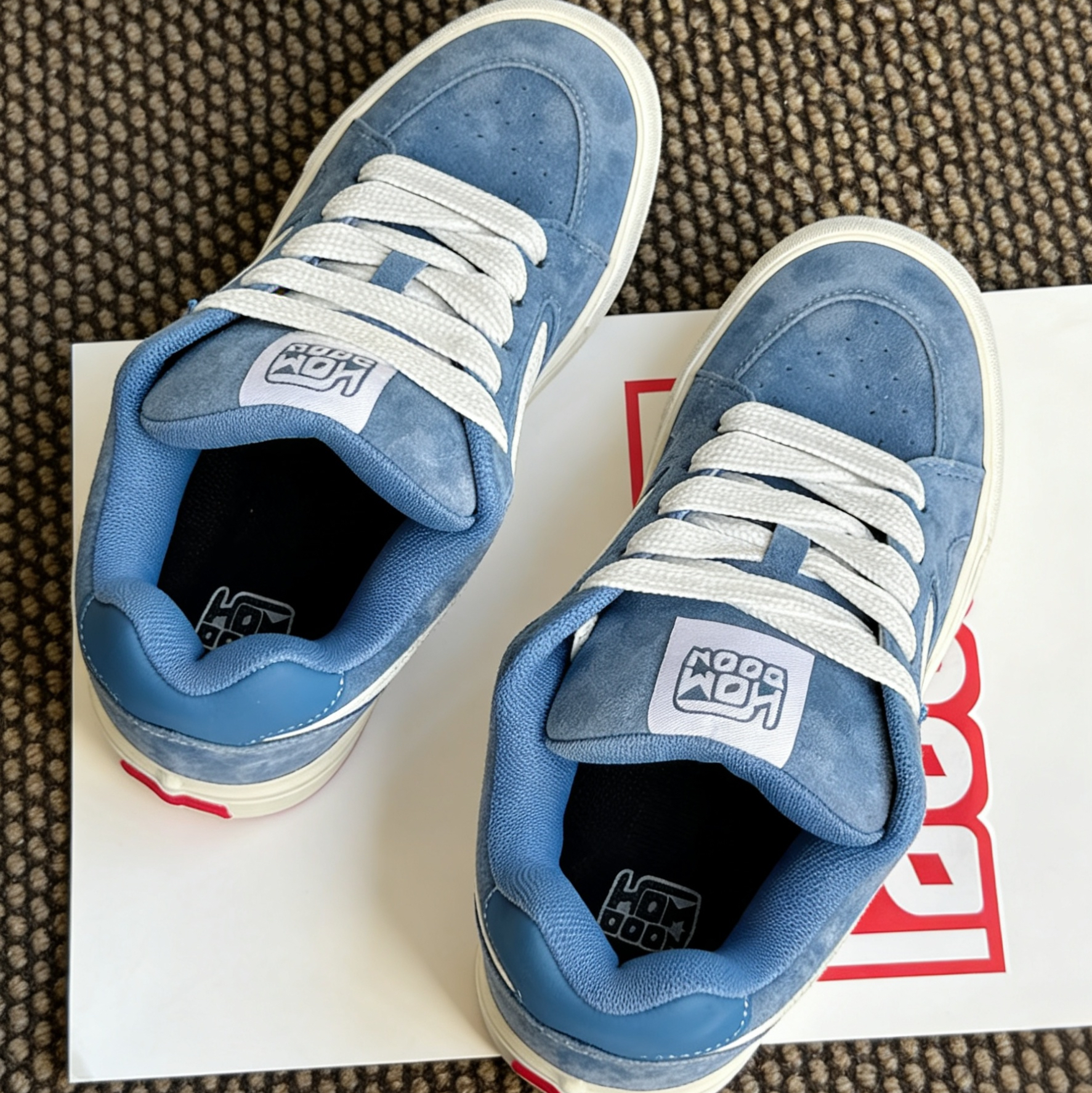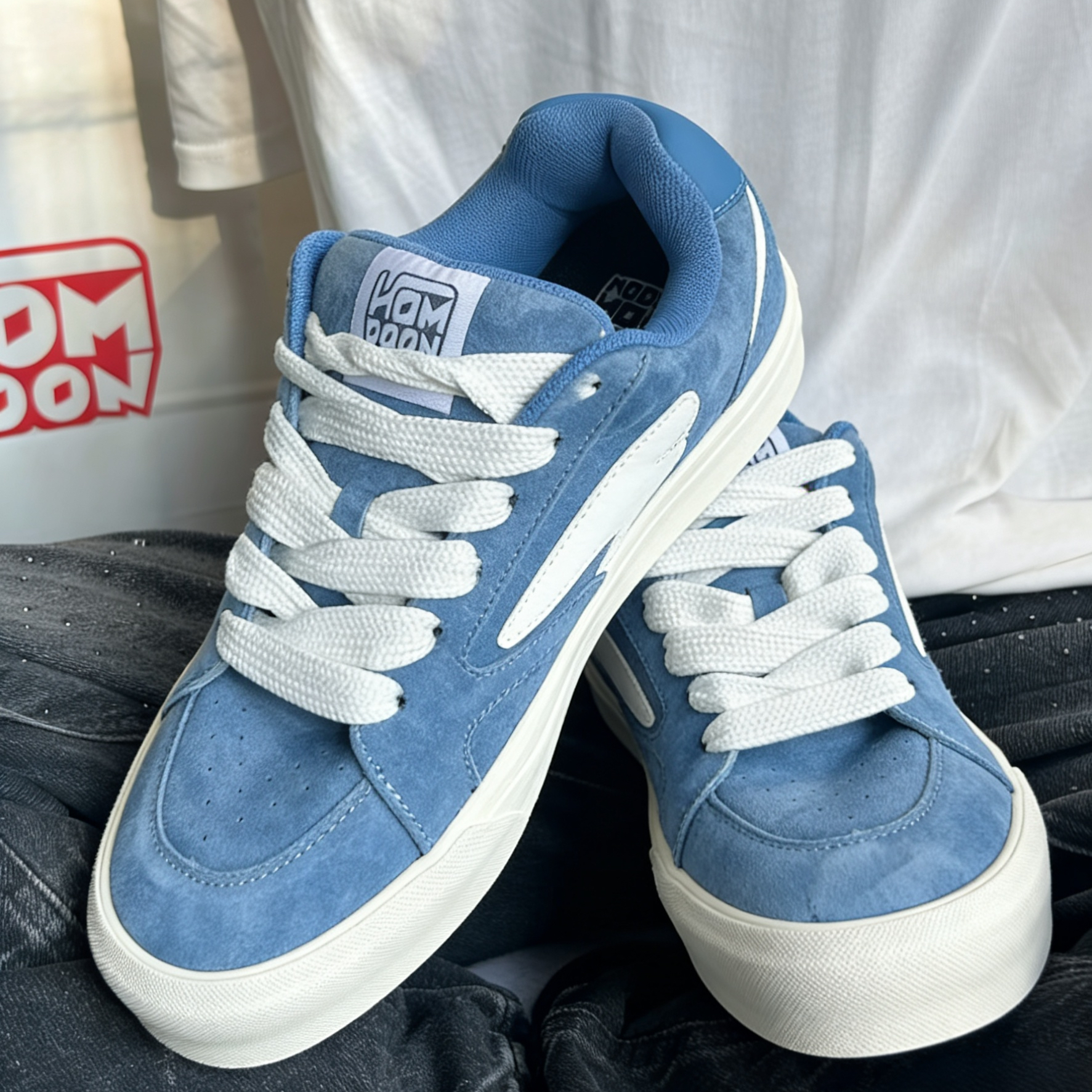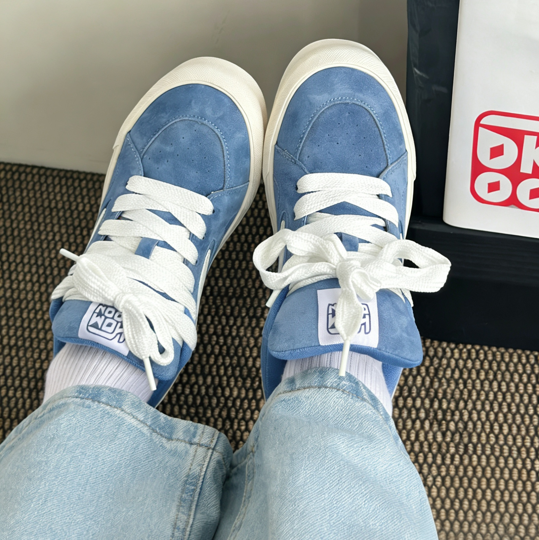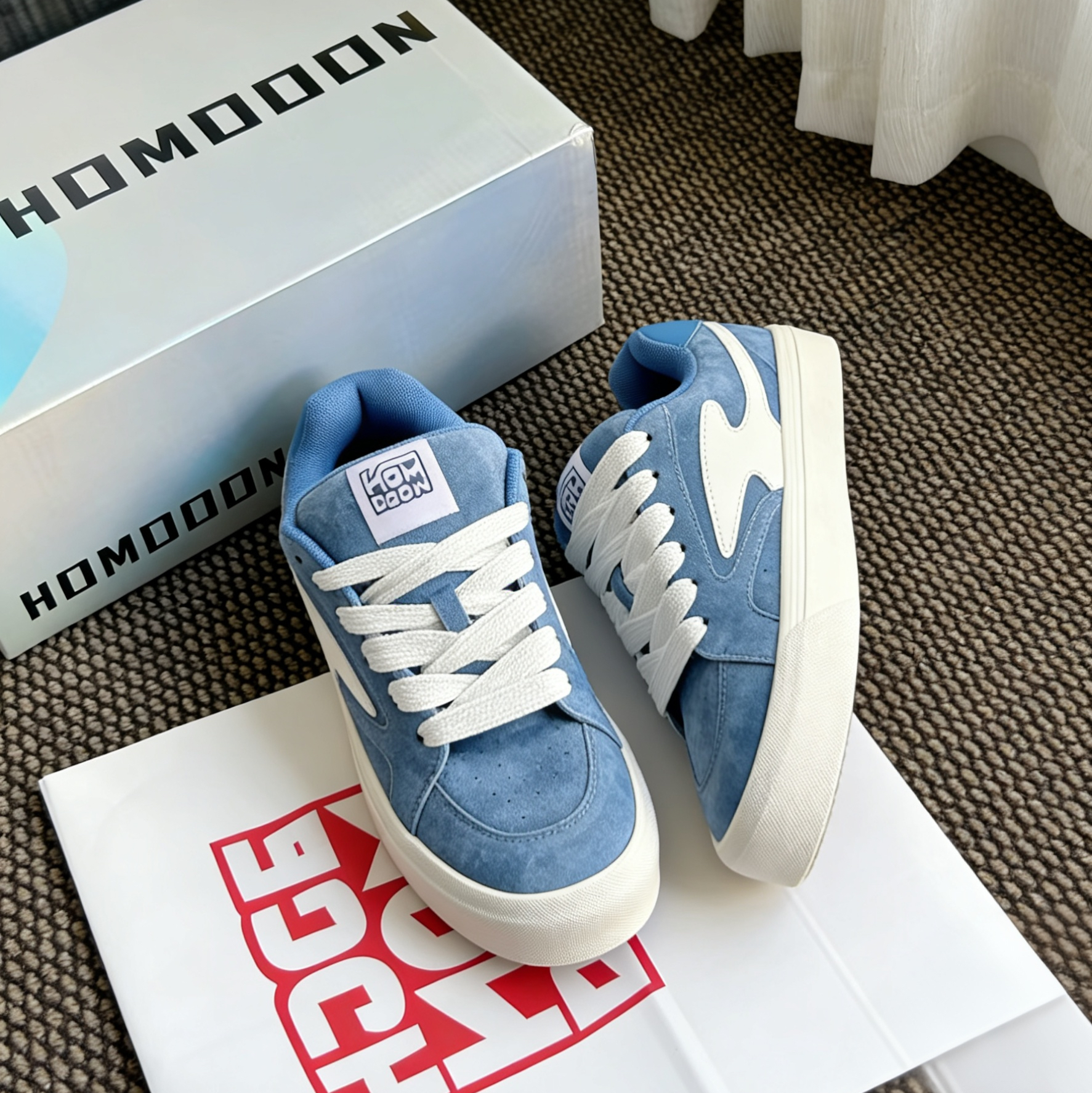 挖到宝了!这款HOMOODON蓝麂皮板鞋真的太合我心意了~雾霾蓝的麂皮质感超赞,上脚软乎乎的一点不磨脚,搭配牛仔裤、运动裤都超百搭。百元价位能买到这种做工和脚感,性价比直接拉满,日常出街穿回头率超高,学生党也能闭眼冲!