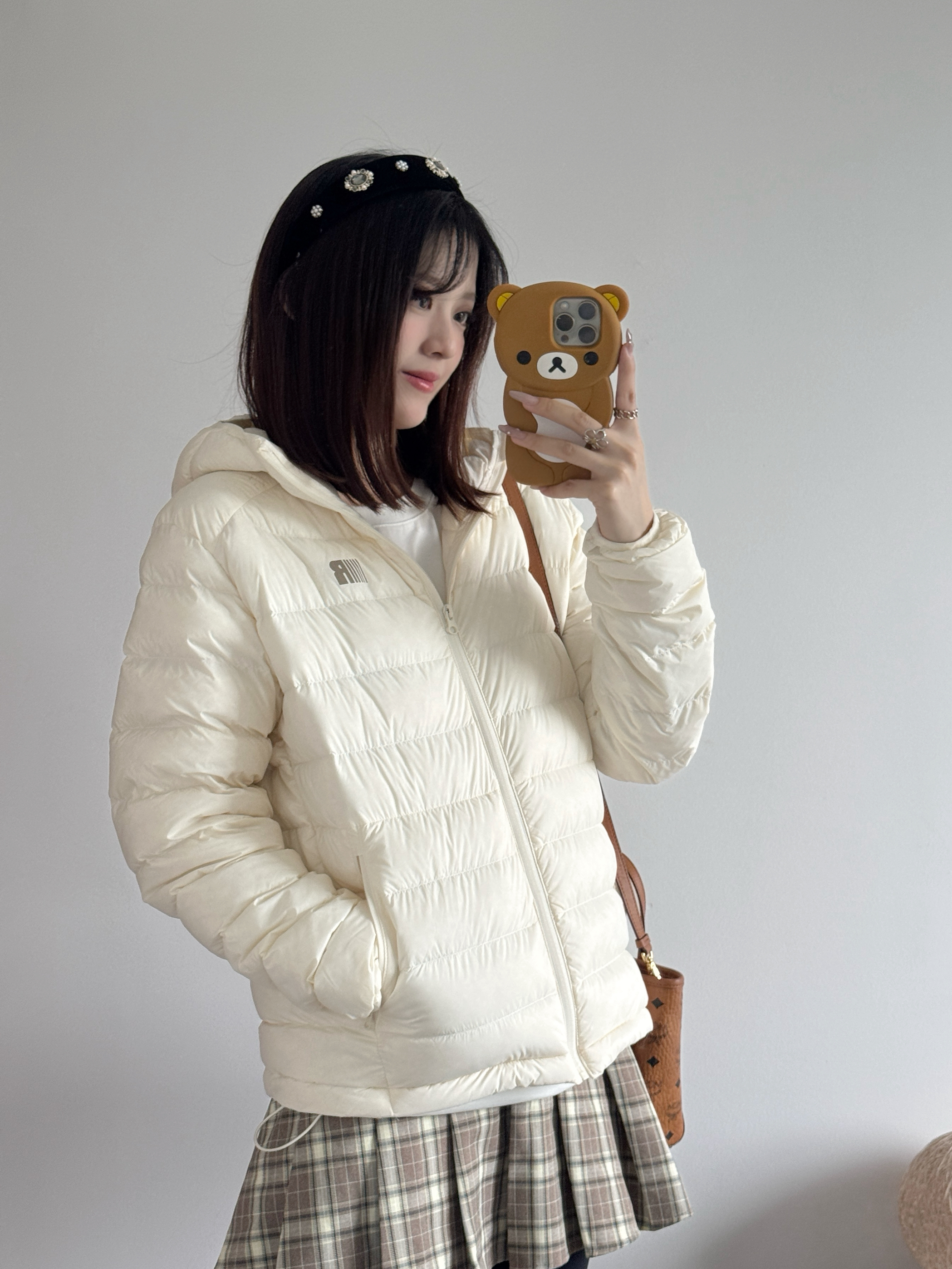 浅粉色真的巨显白!黄皮穿也毫无压力,衣服的菱格绗缝很规整,不会结块跑绒,连帽的松紧度也刚好,出门不想戴帽子的时候还能塞进去,细节做得很到位,太满意了!