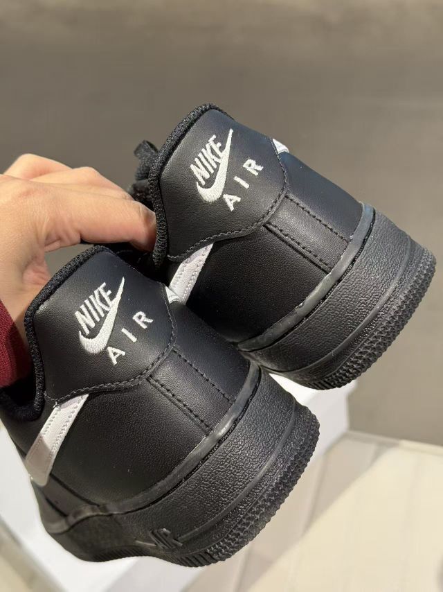 全黑鞋身搭配亮眼的白色Swoosh,让经典的Air Force 1瞬间多了几分酷帅的街头腔调。哑光皮革的质感高级又低调,白勾的点缀打破了纯黑的沉闷,让鞋型的轮廓感更突出。不管是搭配工装裤还是休闲束脚裤都可以。