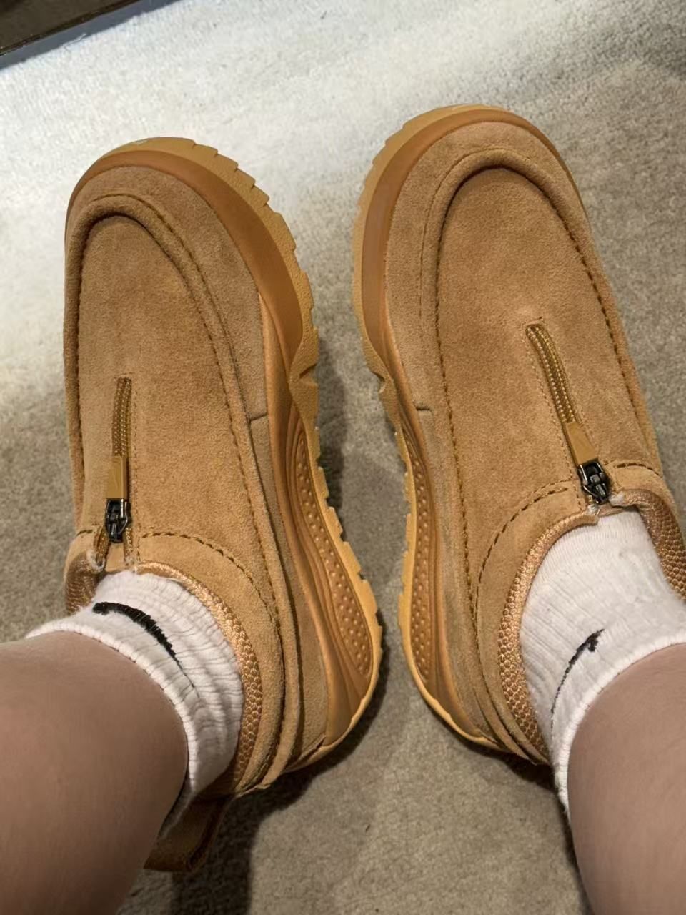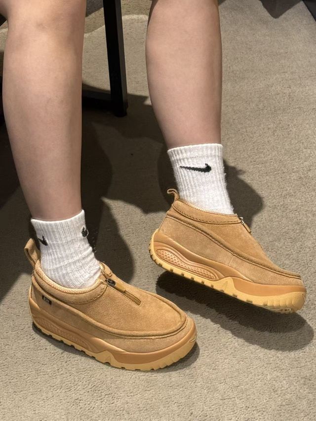 秋冬氛围感被这双Nike小麦色一脚蹬拉满了!麂皮材质质感超赞,暖调的小麦色自带复古氛围,鞋面的拉链设计穿脱方便。