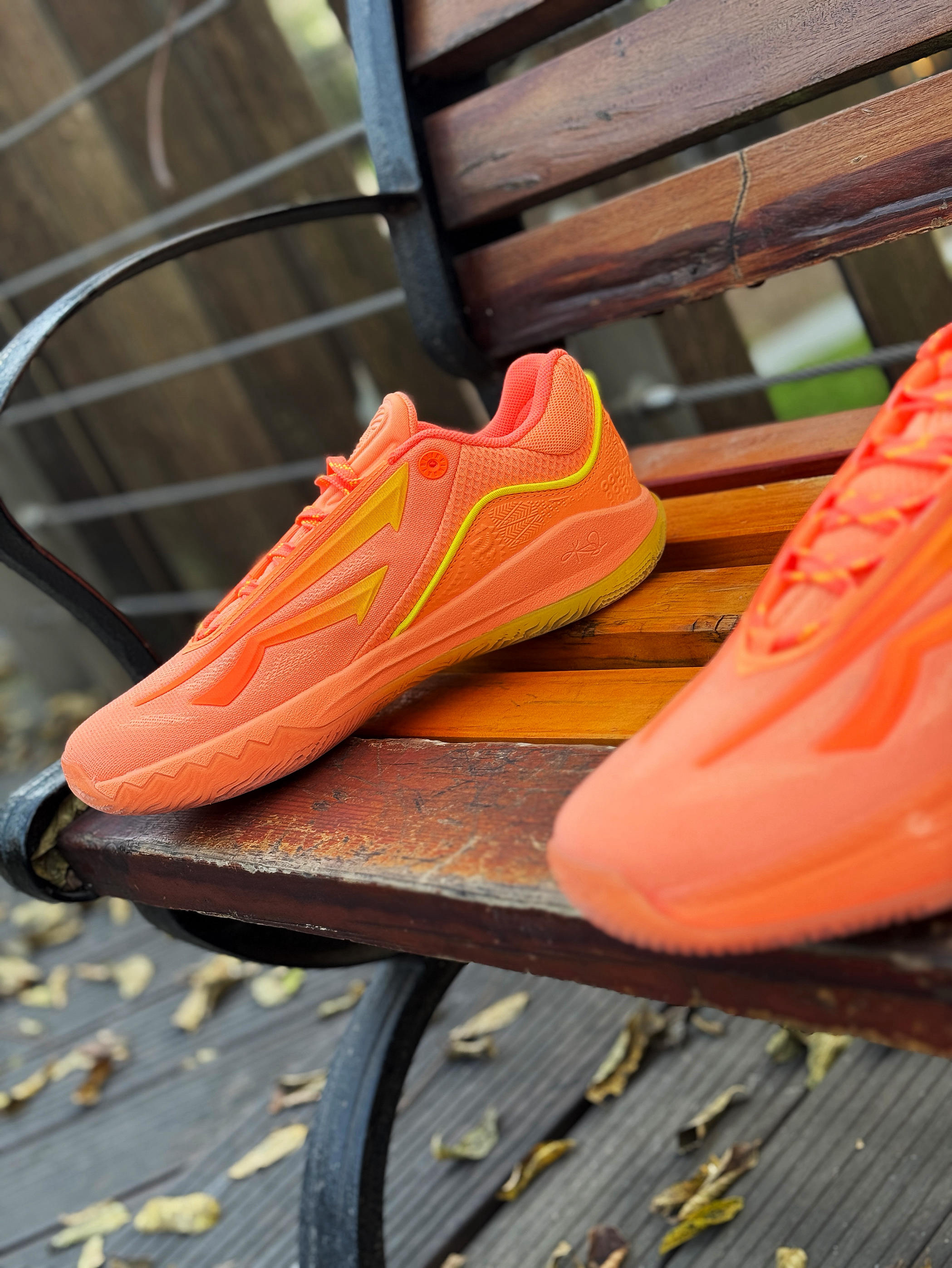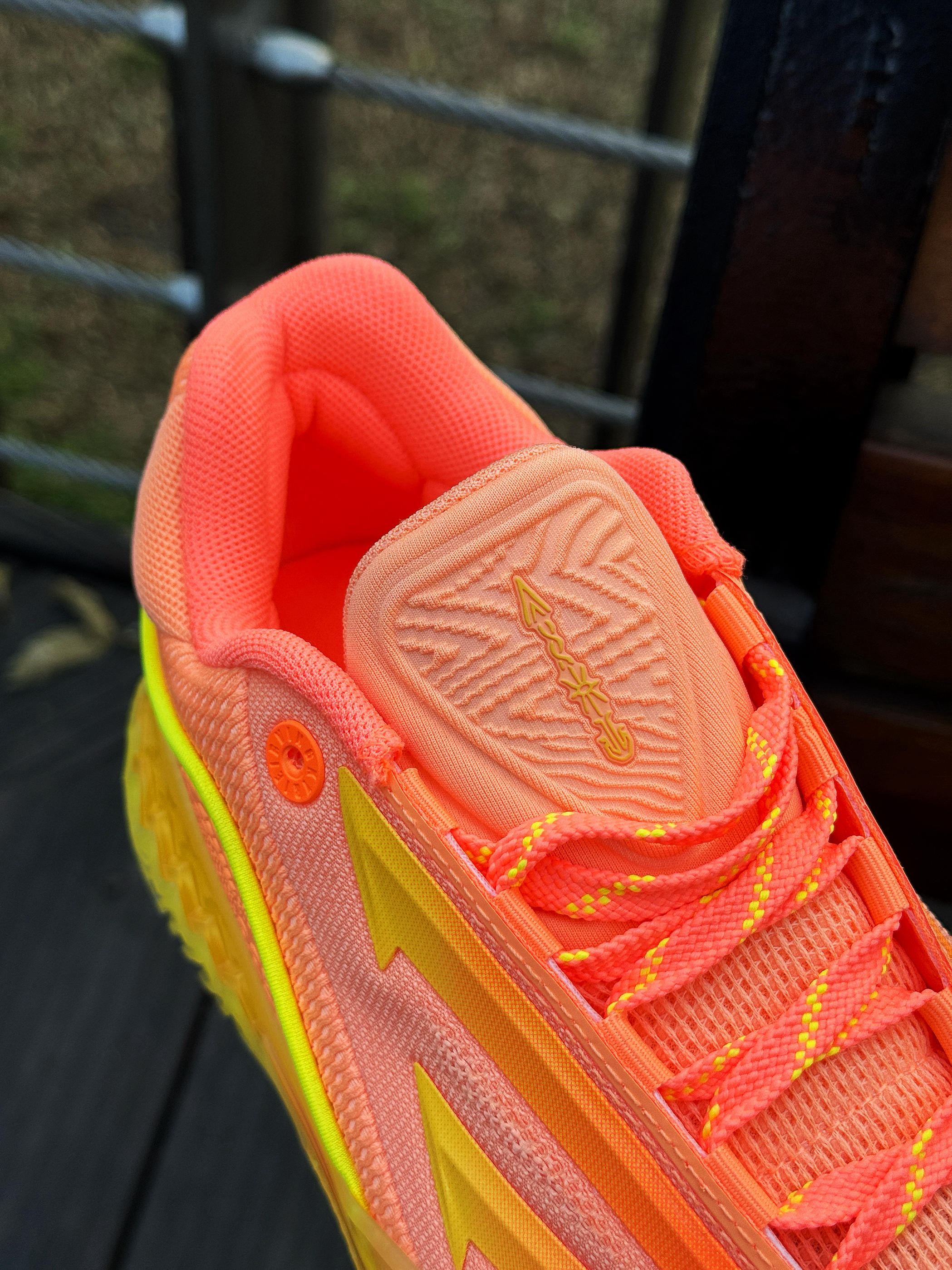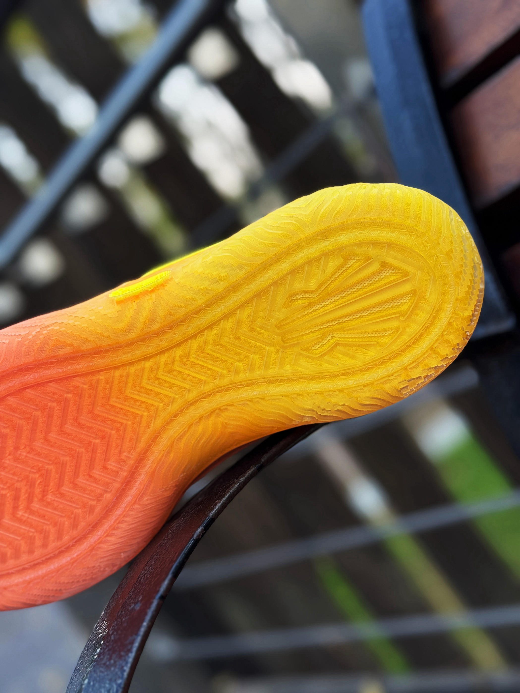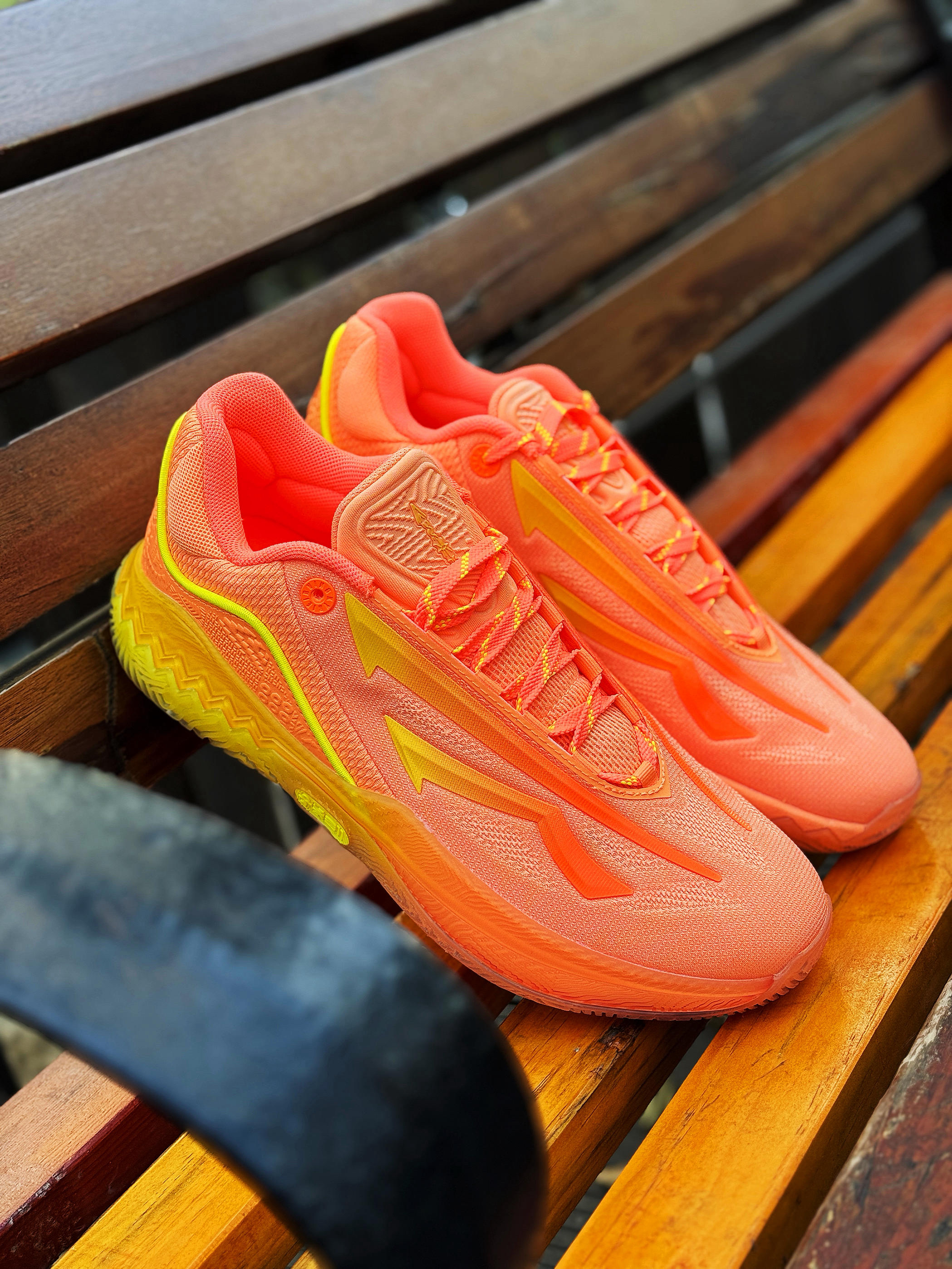 先驱二代从性能颜值来说 都是不输正代的鞋款!最近发售的这双曜日配色也非常经典 之前在狂潮5 Pro和欧文一代都有出现过! 橙色与黄色搭配异常醒目 欧文之盾也尽显辨识度!配置上中底采用A-Shock Pro科技 脚感轻质舒适 重心不高!这次的水晶外底很漂亮 建议室内穿着 鞋子适合喜欢突破的后卫穿着!尺码方面正常选择!