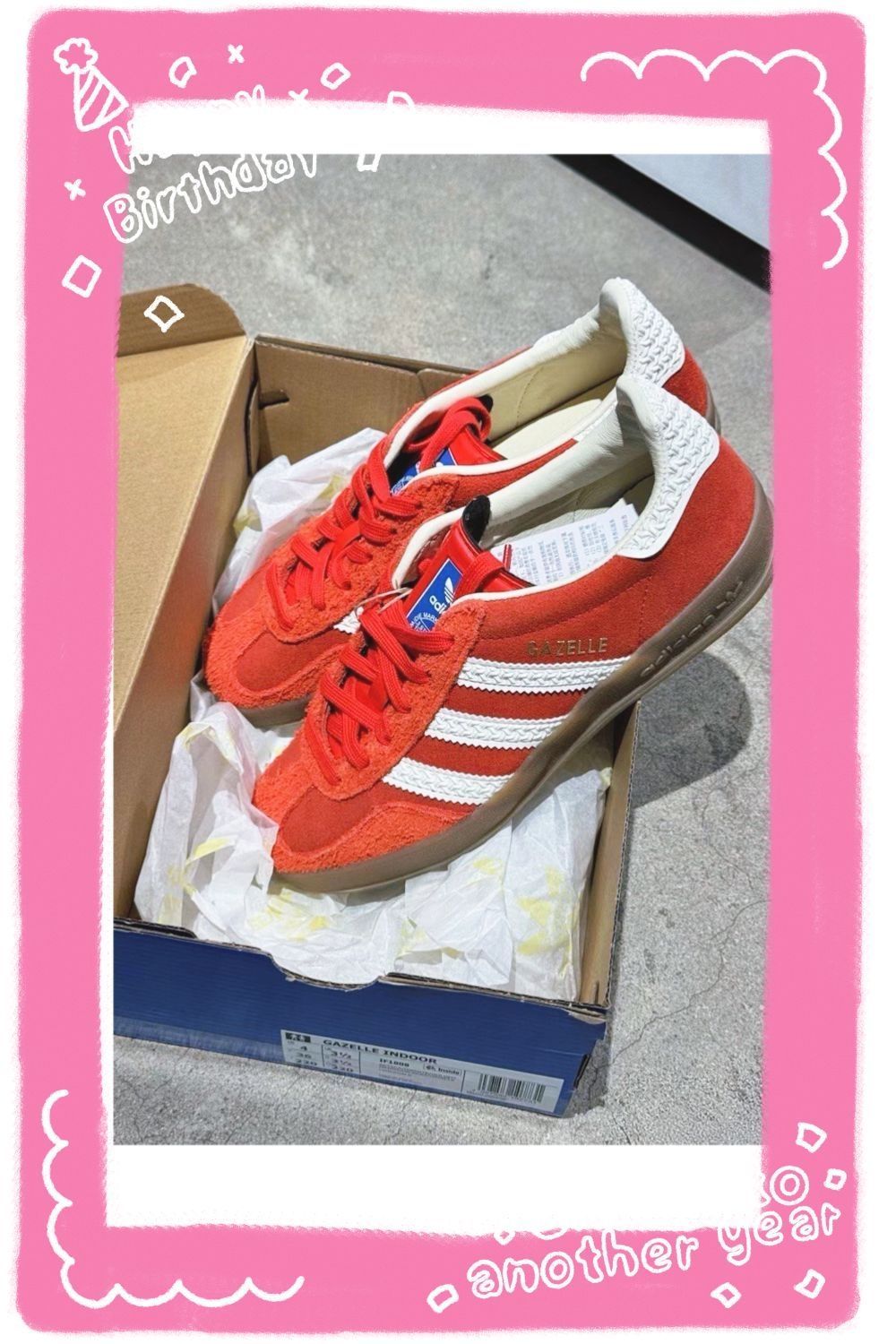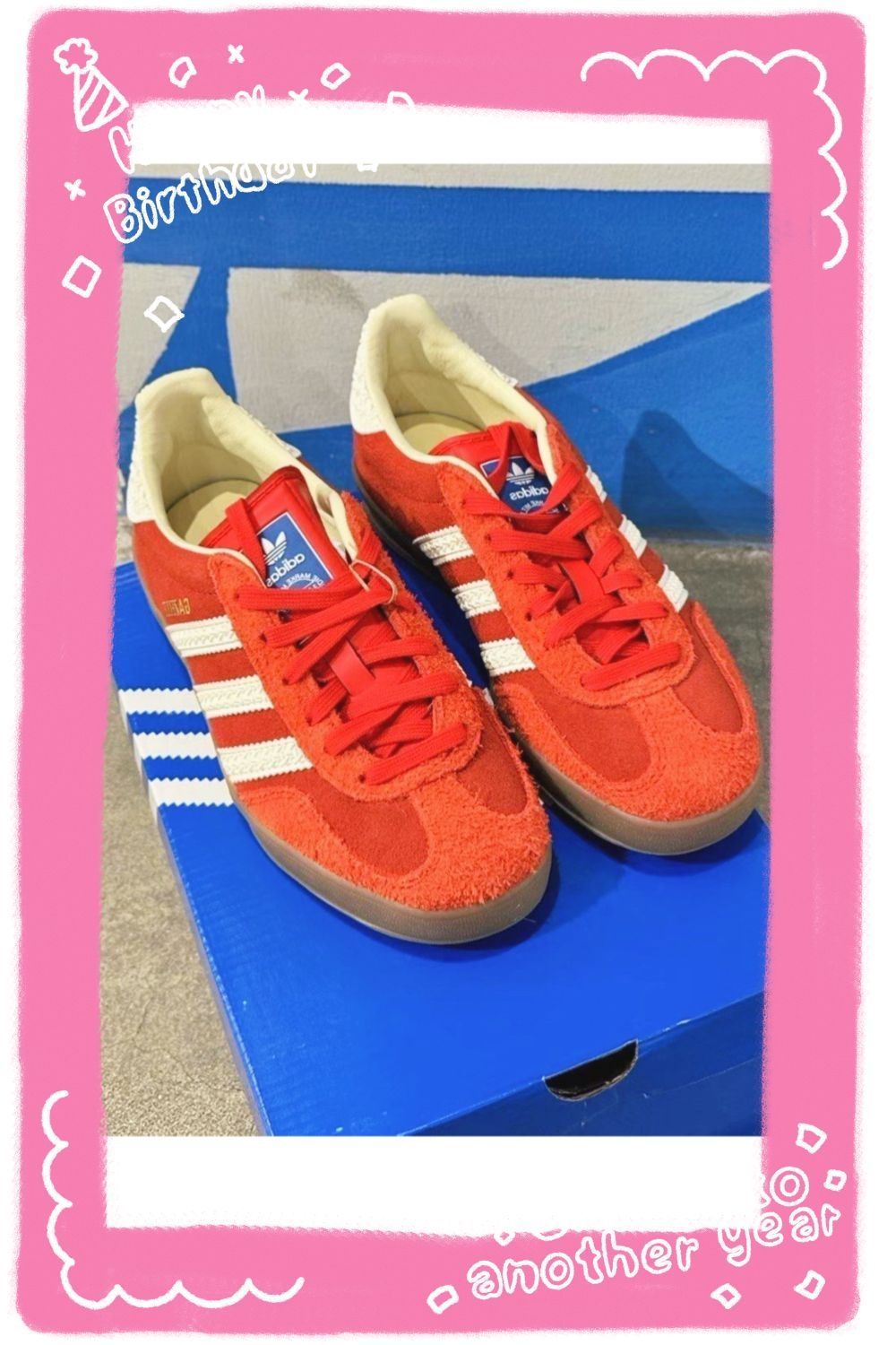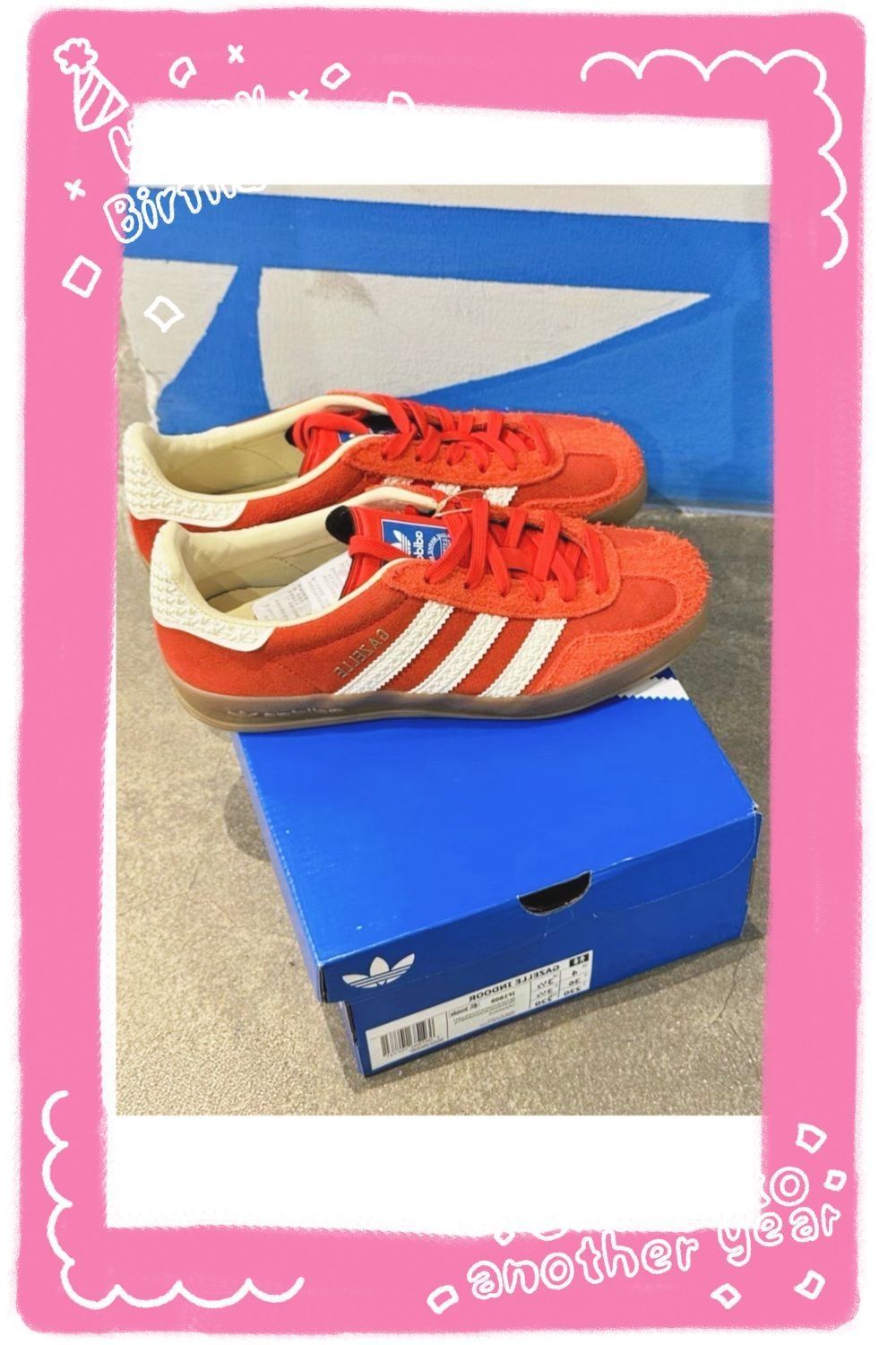 2025新年终于挖到心仪的红色复古鞋了!刚在识货入的adidas originals GAZELLE INDOOR红白款,开箱第一眼就被红麂皮的质感惊艳到🔴 鞋身的编织纹三道杠和米白色鞋领撞色超有复古味儿,生胶鞋底的纹路也很扎实,耐磨度目测在线。 上脚试穿了几天,低帮设计对矮个子超友好,显脚小还不压脚踝,日常走路鞋垫有轻微回弹,通勤逛街半天都不累脚👣 搭配性更是没话说,配牛仔裤、工装裤是美式复...