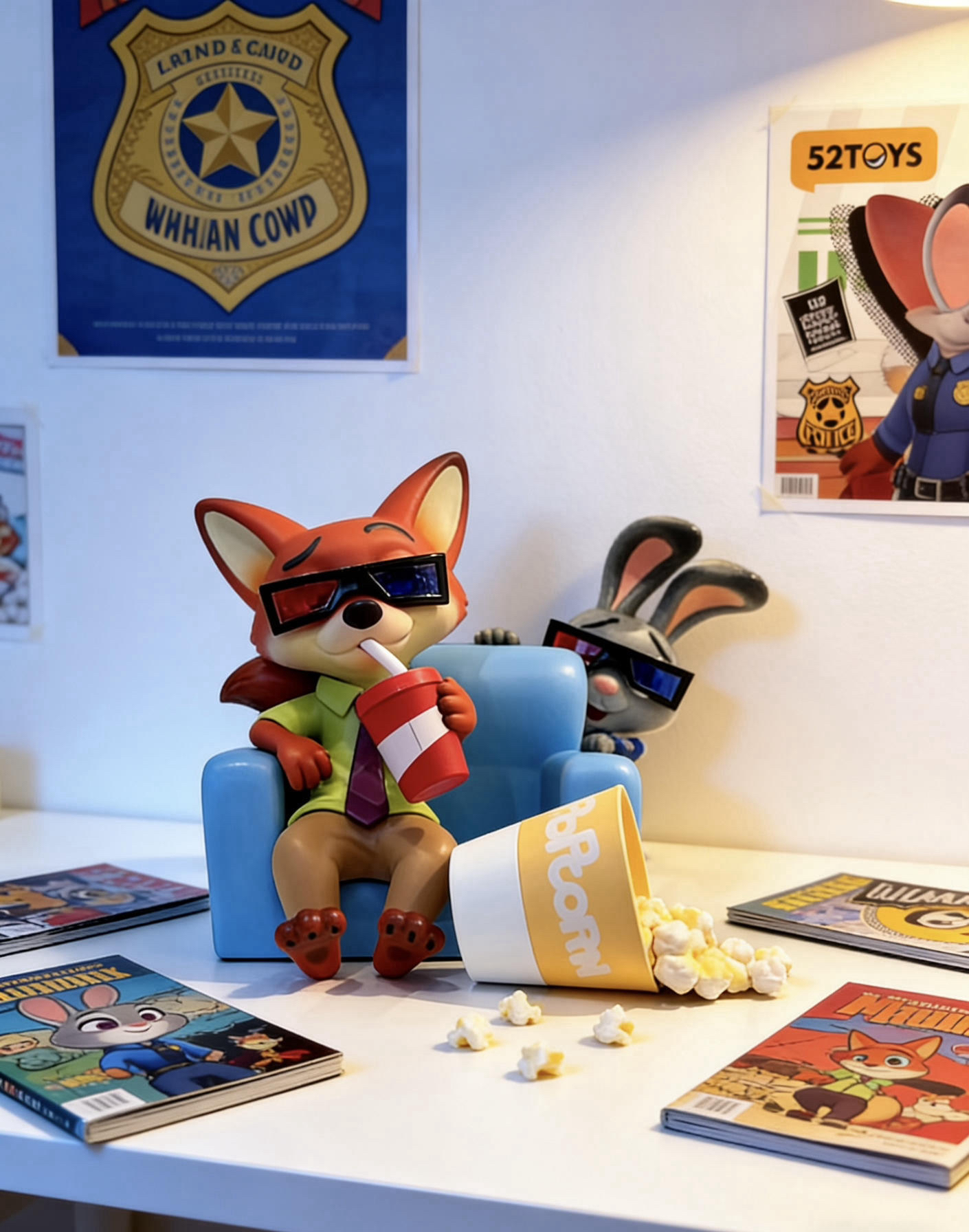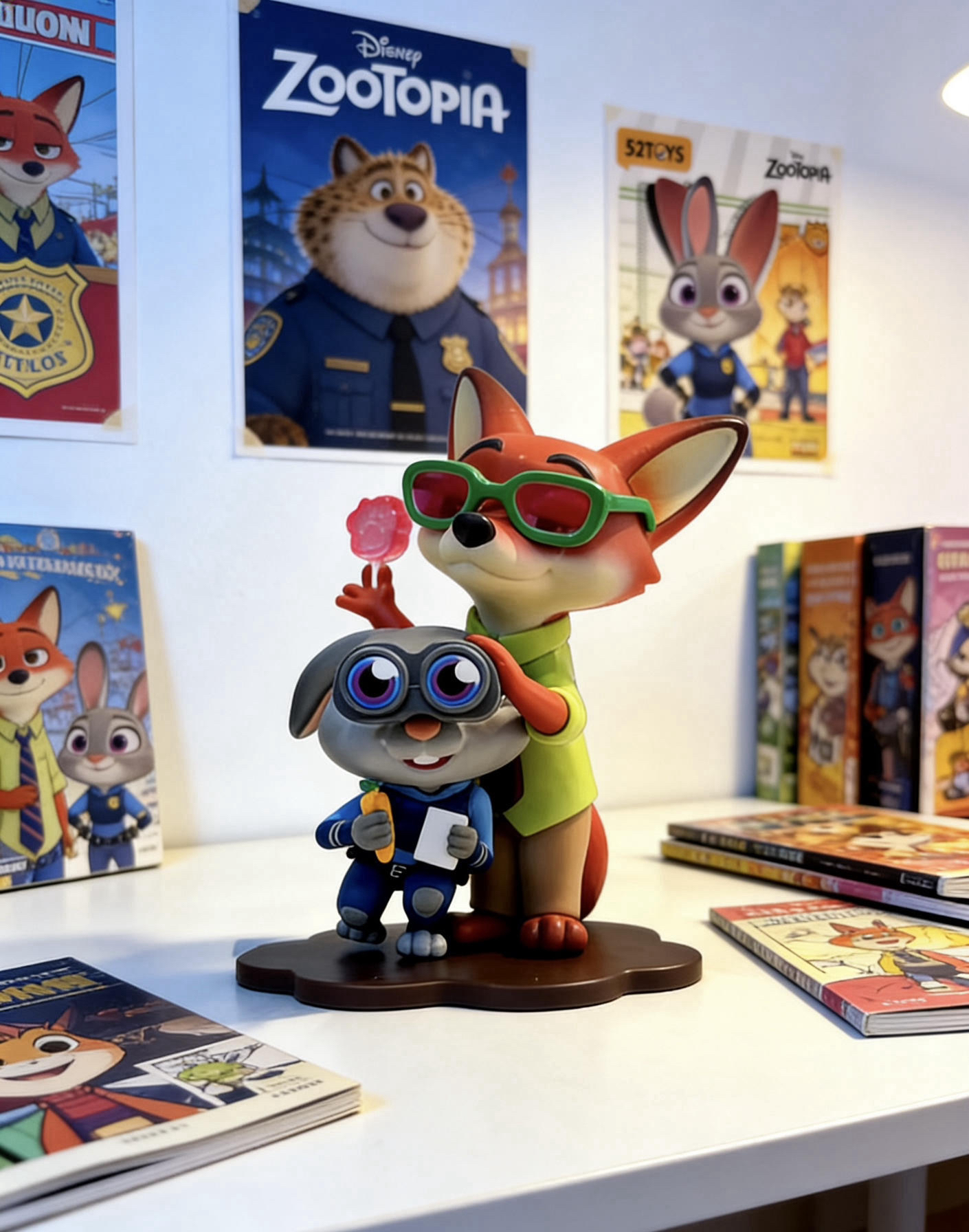 我的宅家快乐星球🌍 被疯狂动物城承包了! 白色桌面+卡通海报+漫画书+氛围光, 这组合简直是为懒人量身定做的治愈角落~ 不用复杂布置,随手一拍都是大片感, 宅在这里看书、刷剧,一整天都不想出门! #识货萌新创作营