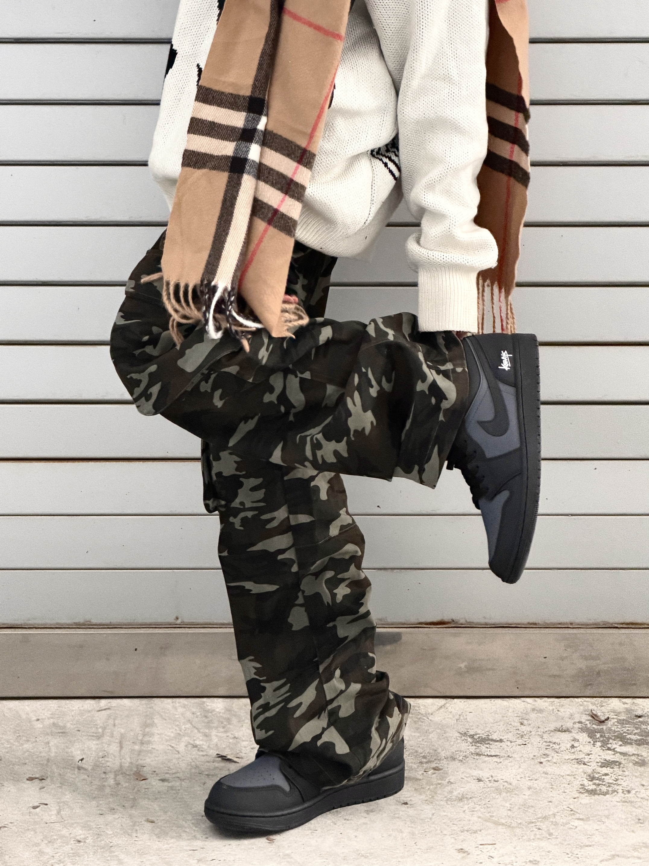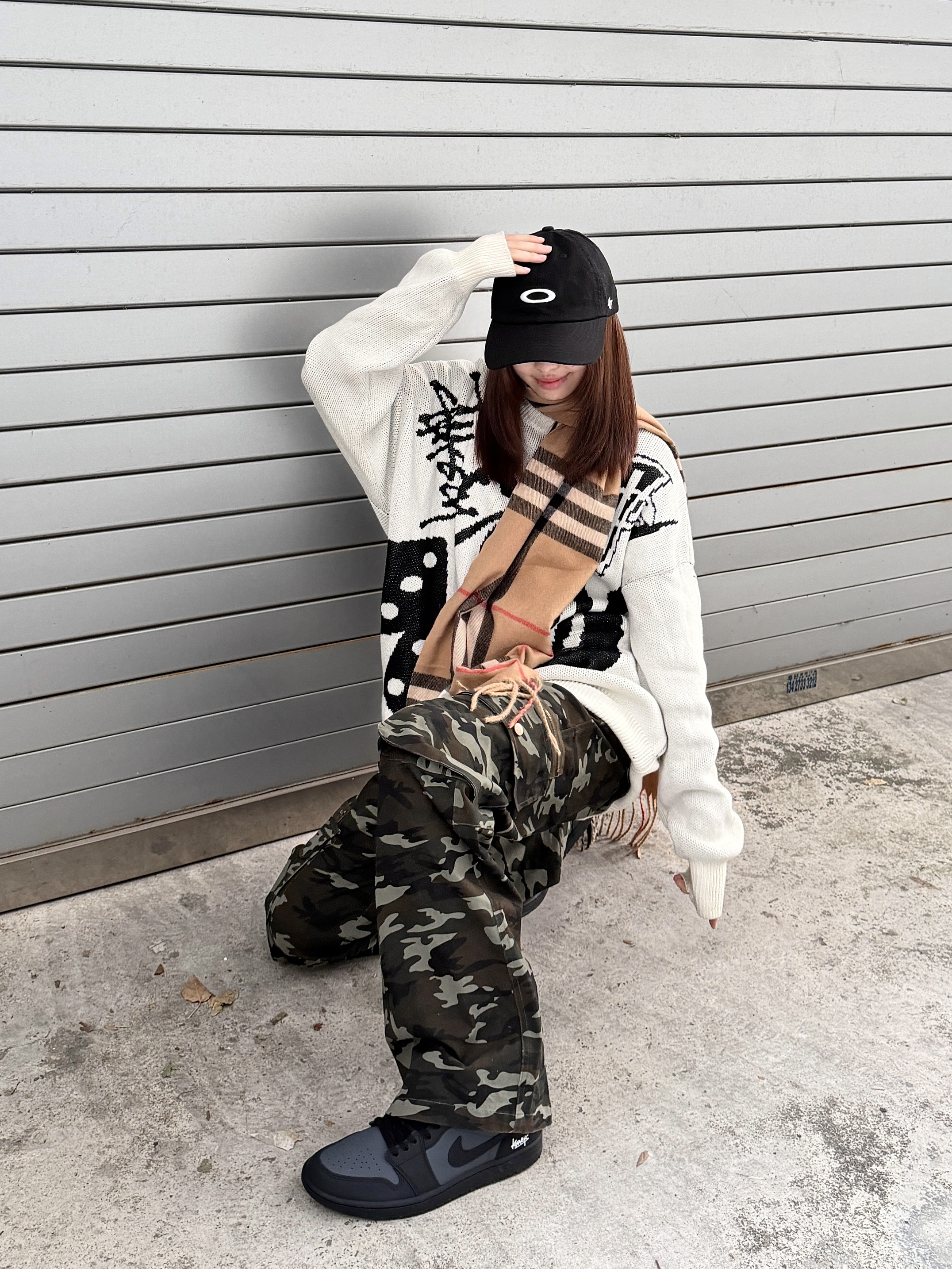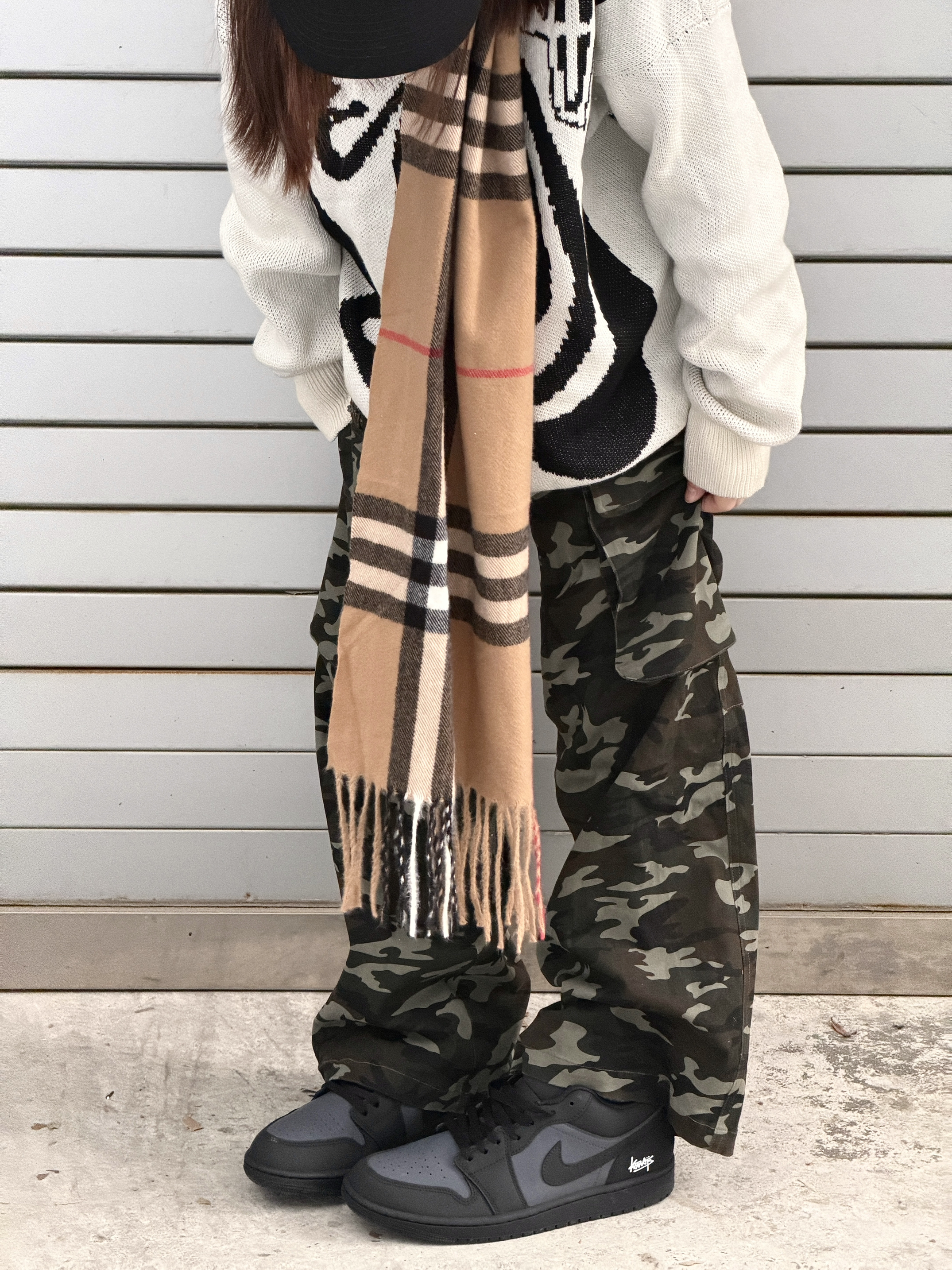 宽松毛衣➕迷彩裤➕休闲板鞋👟 不会出错的黑白搭配 简约随性中带着潮流感🐈⬛ 黑灰板鞋与街头酷感的双向奔赴~
