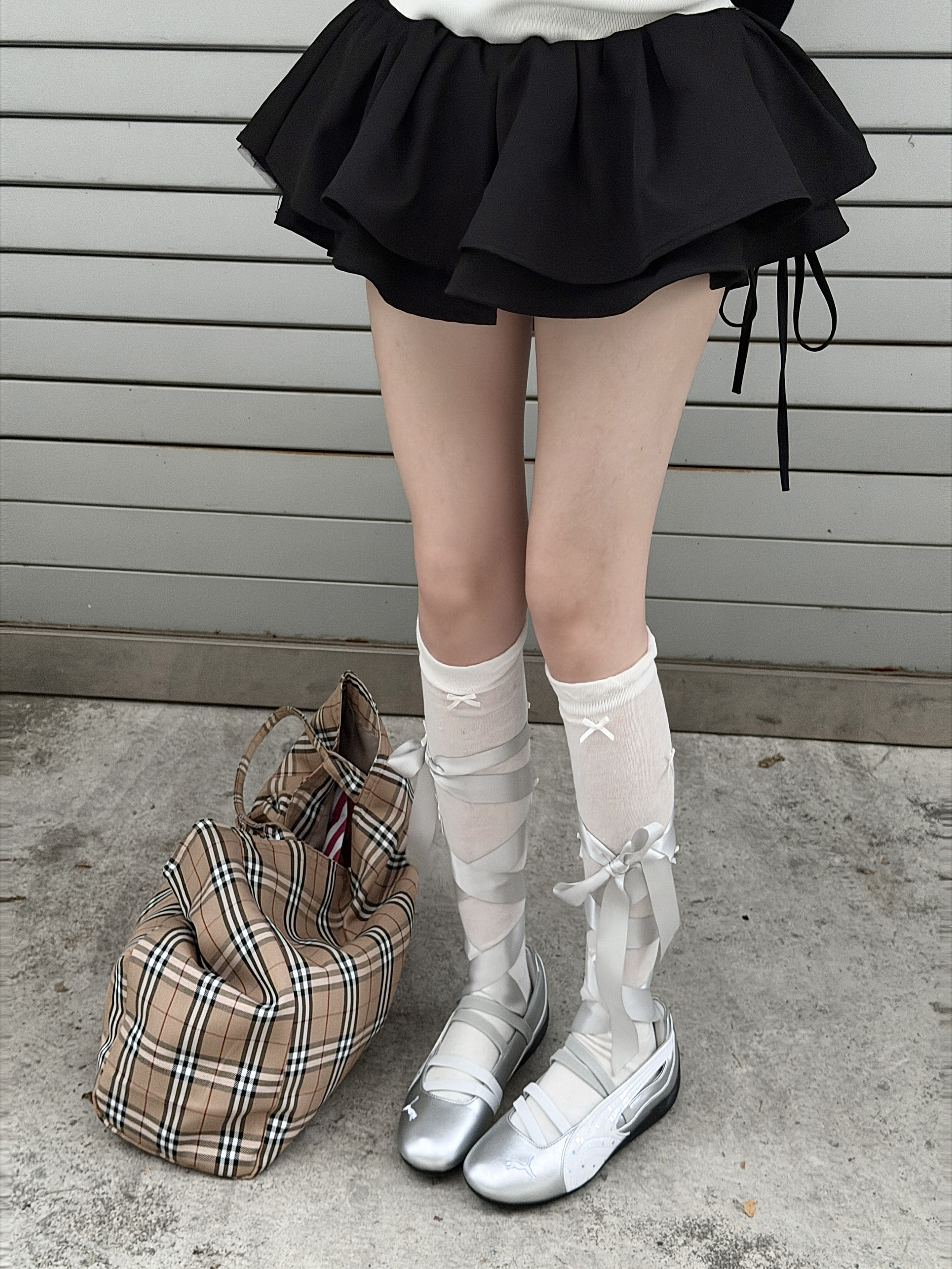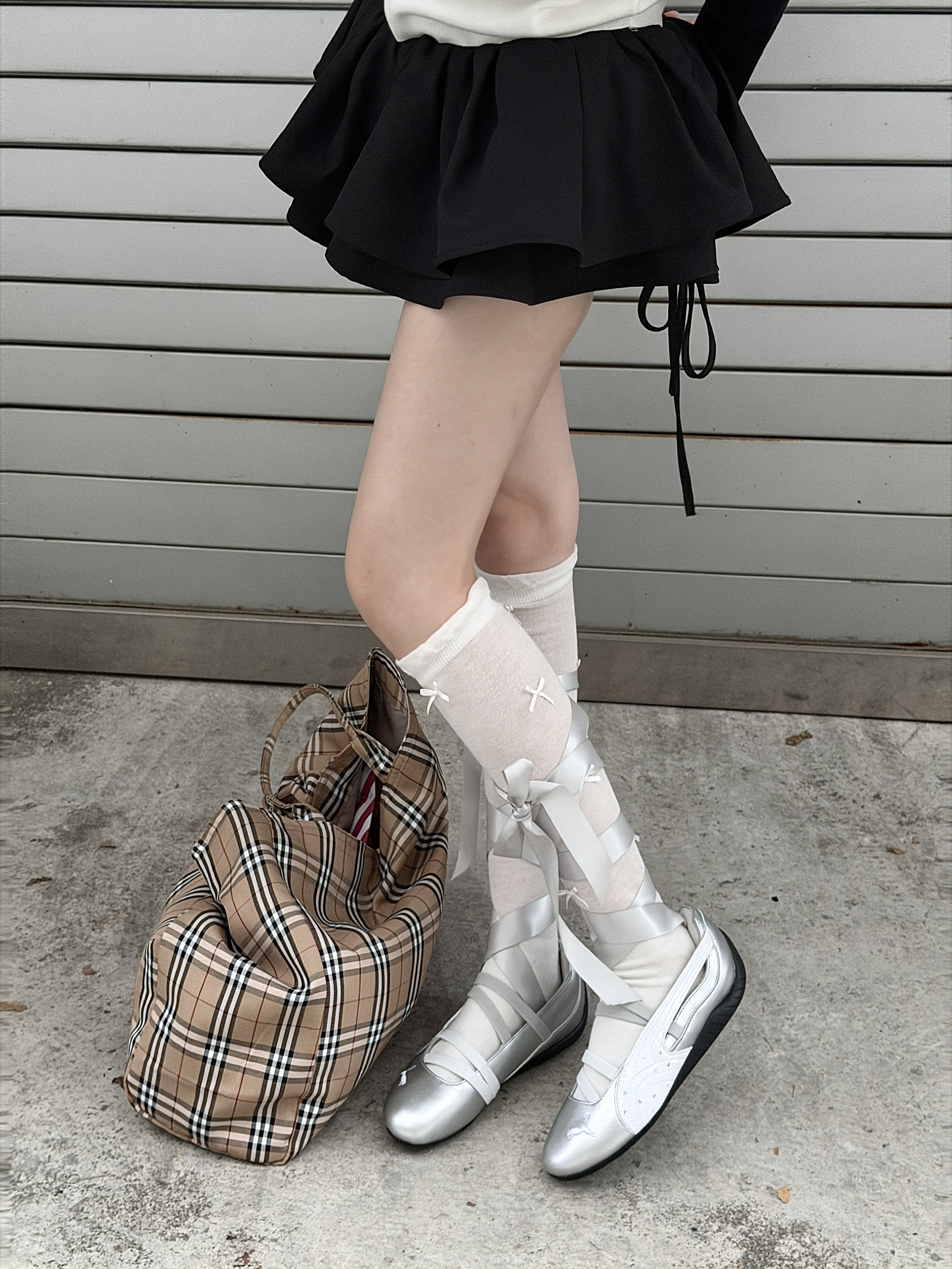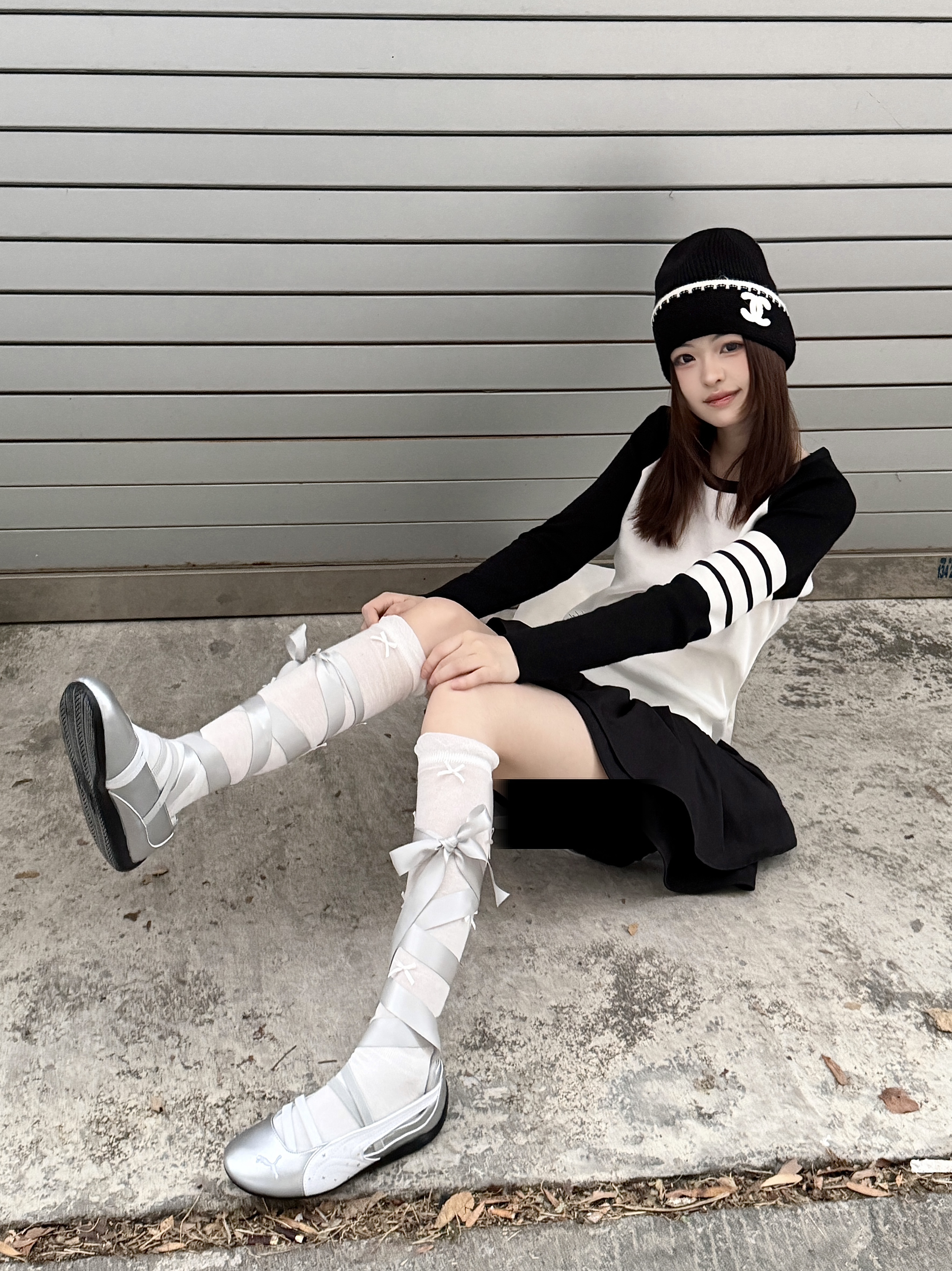 秋冬穿搭灵感题库~ 银白搭配容错率真的很高☁️ 也是穿上puma🩰芭蕾鞋啦~ 银色小羊皮 轻薄有质感 黑白灰穿搭减弱沉闷感更活泼^^ 一整个韩起来咯~