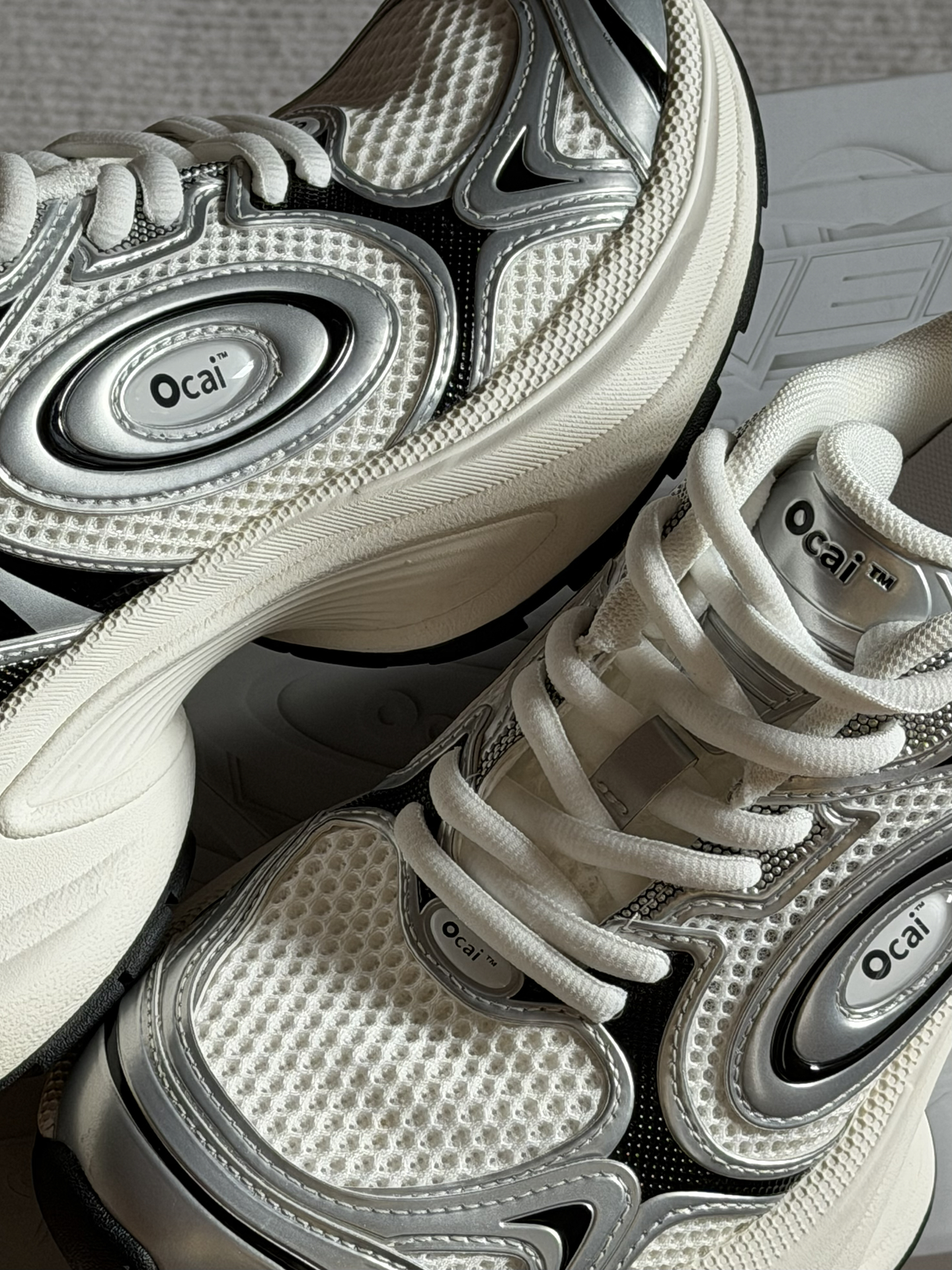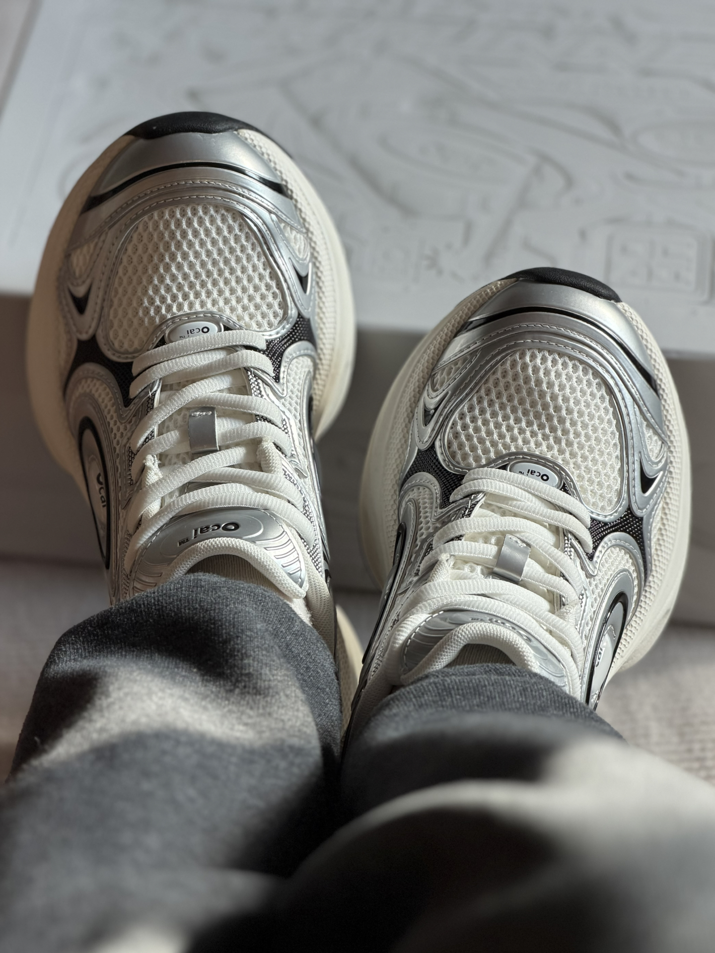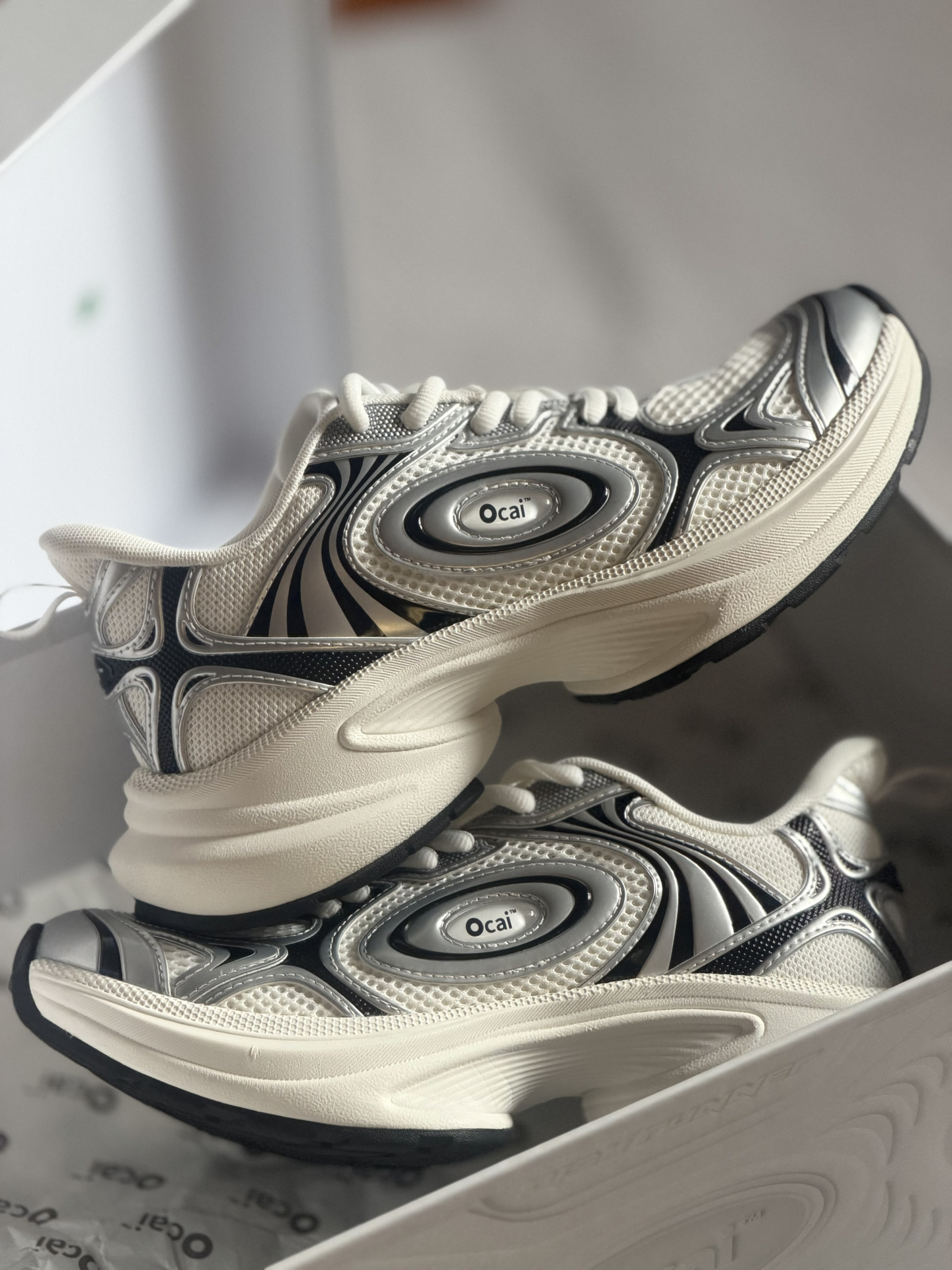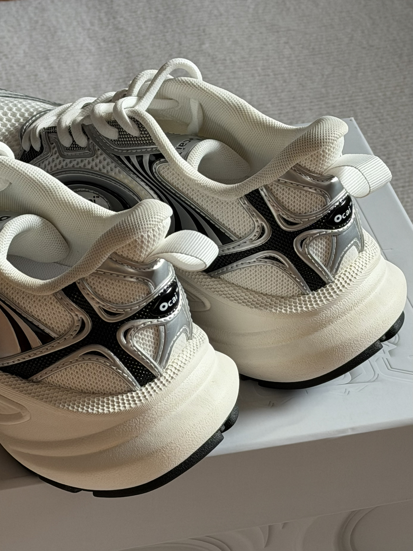 姐妹们 这双Ocai Disk Runtech飞碟老爹鞋 很多明星都在穿着。 它是复古老爹鞋的造型 银白的配色看上去很高级 皮革和织物的鞋面很有层次感 上脚轻便又舒适 还有不错的增高效果 日常搭配阔腿裤 牛仔裤都好看 #ocai #ocai飞碟 #马上换新鞋 #2025年度最顶跑鞋 #韩系入冬穿这双