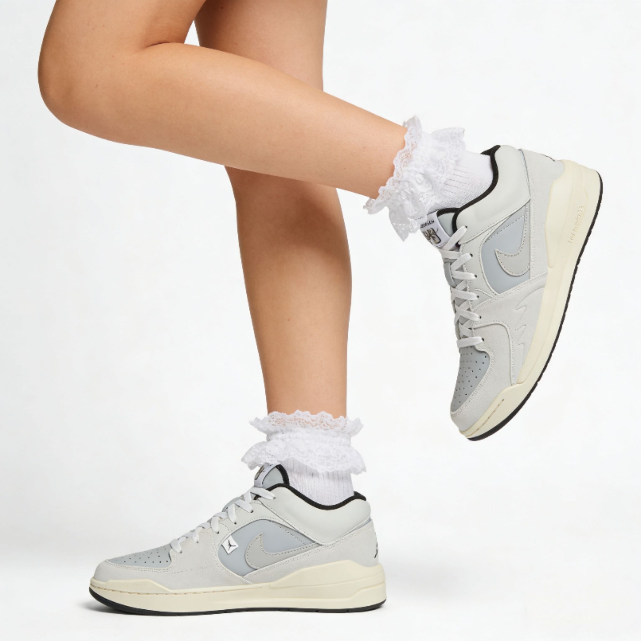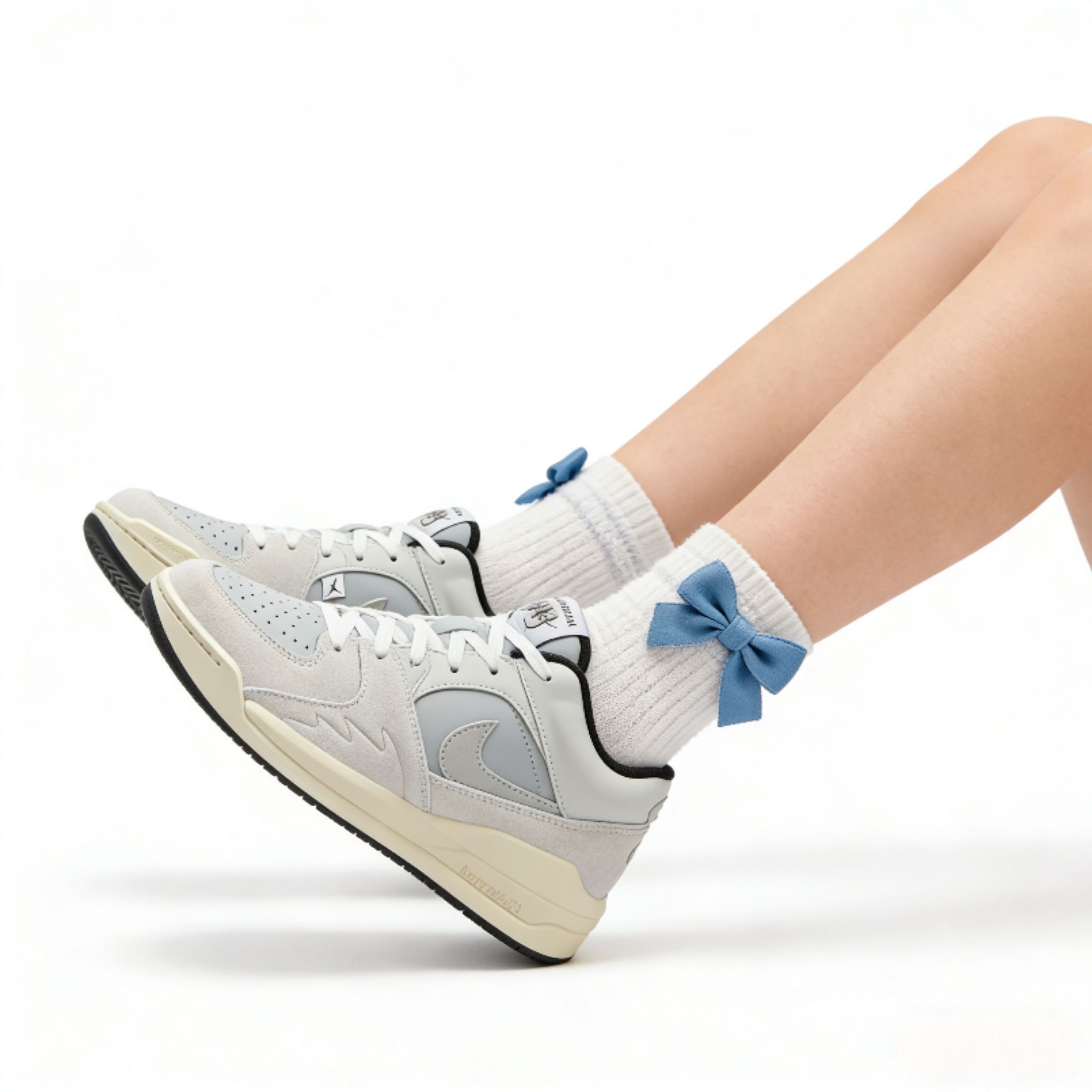 浅灰色Jordan Stadium 90真的戳中少女心!合成革+织物鞋面耐穿又透气,日常通勤暴走都不闷脚,减震中底踩上去软乎乎的,久站也不累~百搭浅灰配色随便搭裙子、牛仔裤都好看,露腿配可爱袜子更是元气值拉满,谁穿谁是韩系甜妹!