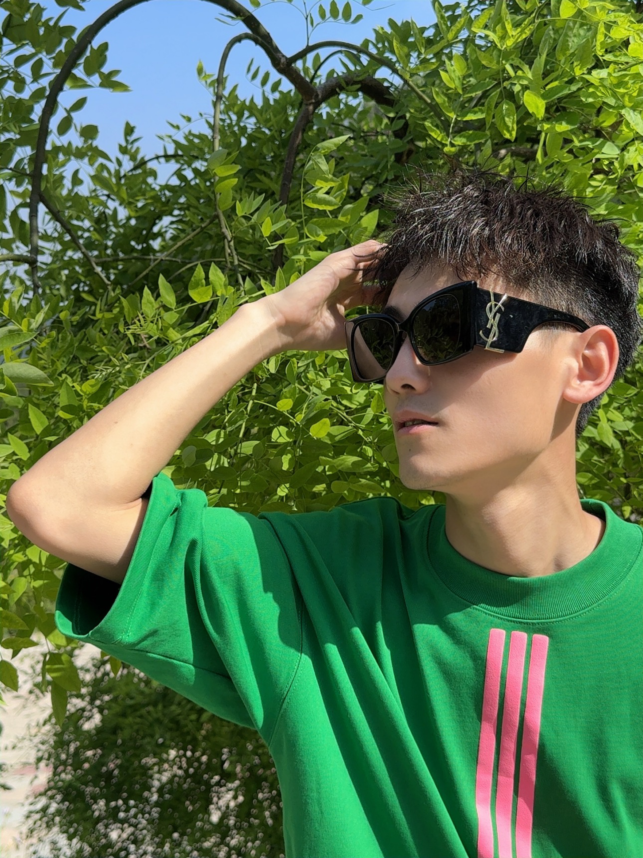 谁懂啊!这副YSL墨镜一戴,直接把“氛围感帅哥”焊在脸上🤌 ✅ 颜值杀疯了 大框黑镜+标志性YSL金属标,自带“生人勿近”的拽感buff——不管是配oversize绿T还是街头风穿搭,随手往脸上一搭,松弛感+酷感直接拉满,出片率100%! ✅ 实用到想焊在脸上 遮阳+遮脸+遮素颜 三合一:大镜片把阳光全挡死,脸大星人直接“一键瘦脸”,早八没化妆?戴上它直接变身“懒人帅哥”,出门不用纠结,帅...