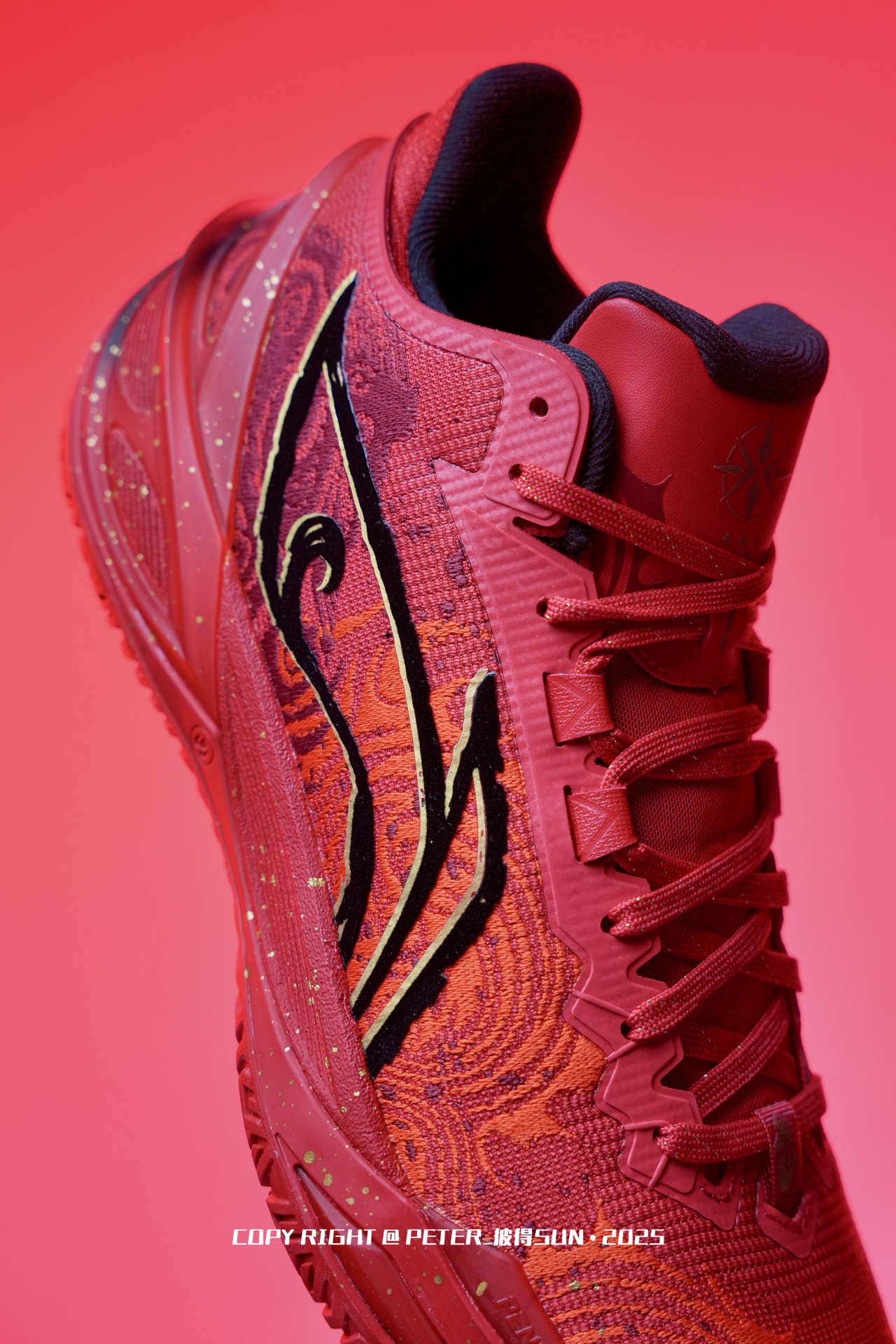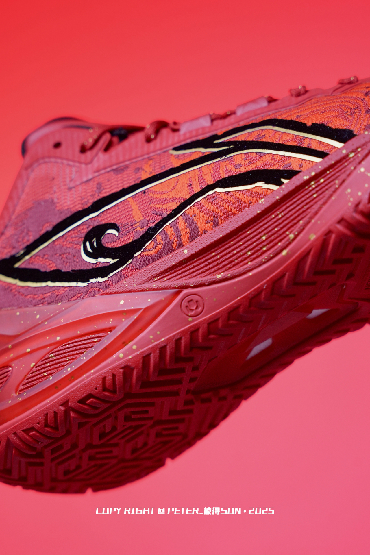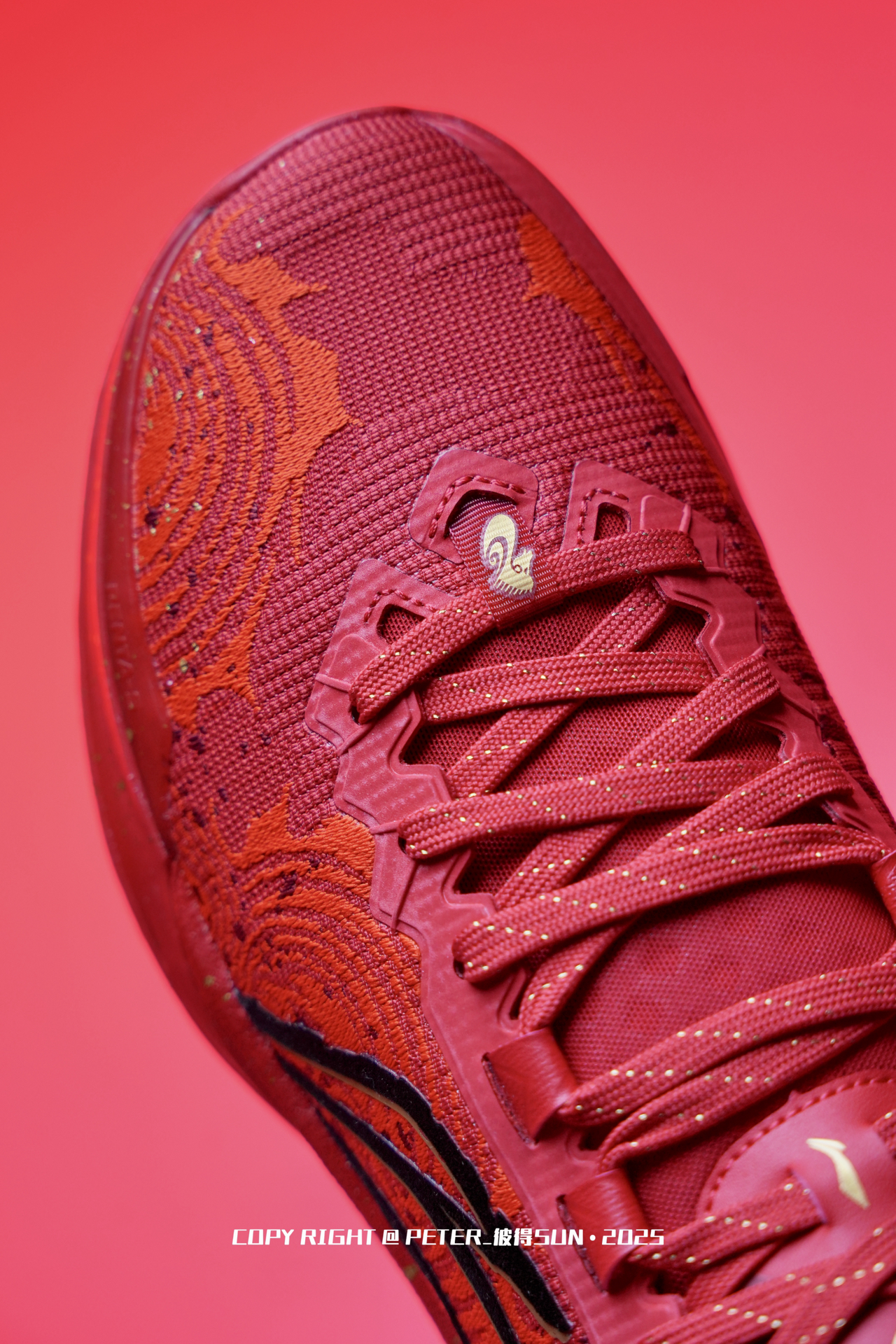 我一直说,利刃系列最大的优点就是既能打而且配色也特别有意思。 今天分享利刃6最新配色[新年],也算是今年最先分享给大家的CNY系列, 鞋身是很正的喜庆红色搭配了马年的元素。鞋带扣这里是龙形的马头图案,寓意龙马精神。后跟有烈日的图案,组合在一起就是[骏马踏日,福运东来]。鞋身还有精美的刺绣,隐约看来应该是太阳和万马奔腾的图腾。有意思的还有侧面的LOGO,这个古代图腾的图案很像太阳鸟的图案,植绒的材质...