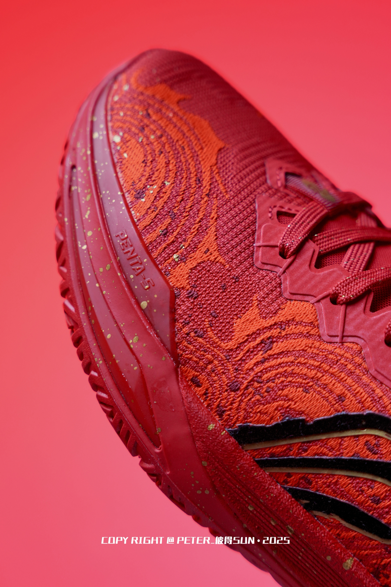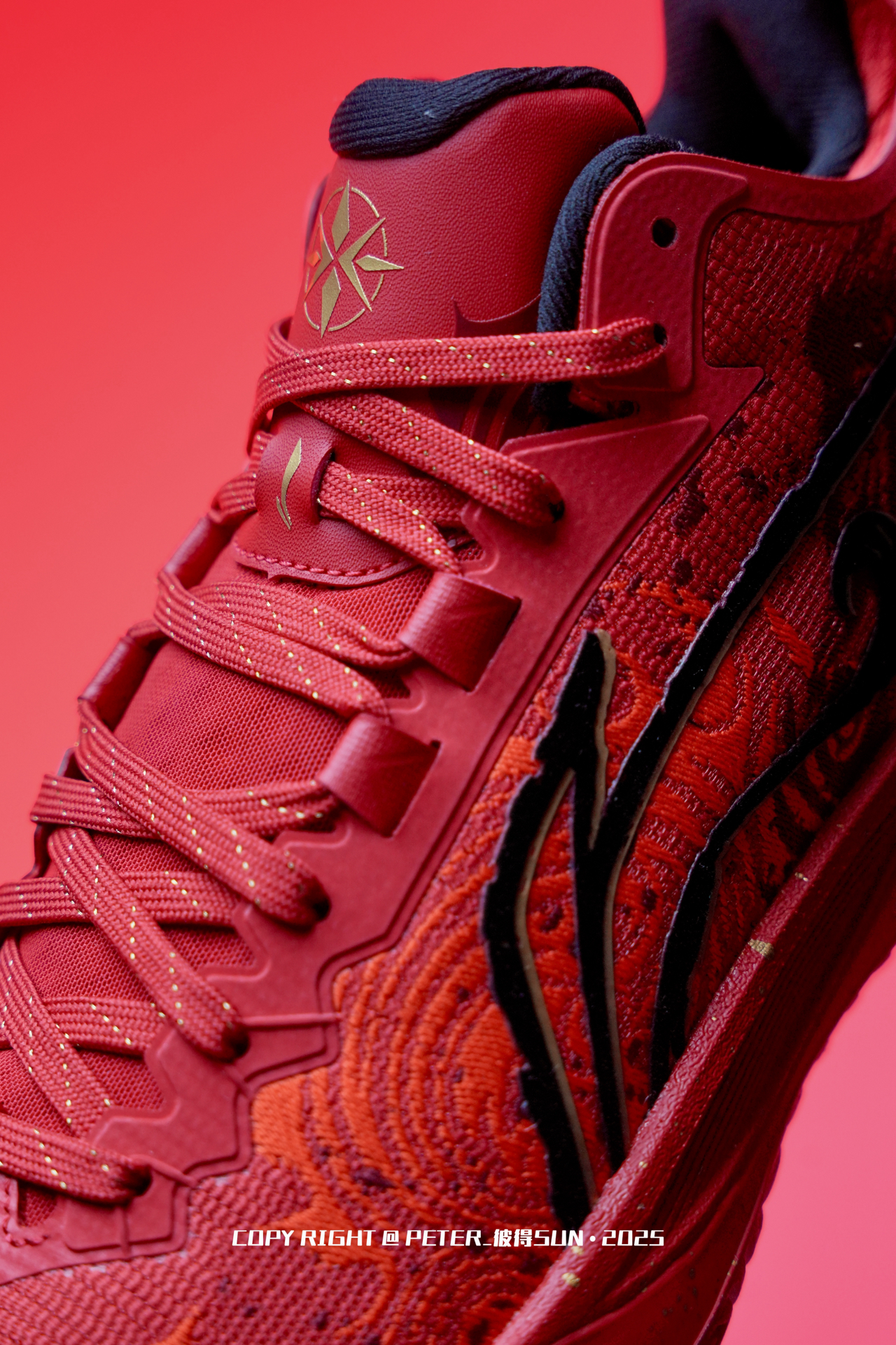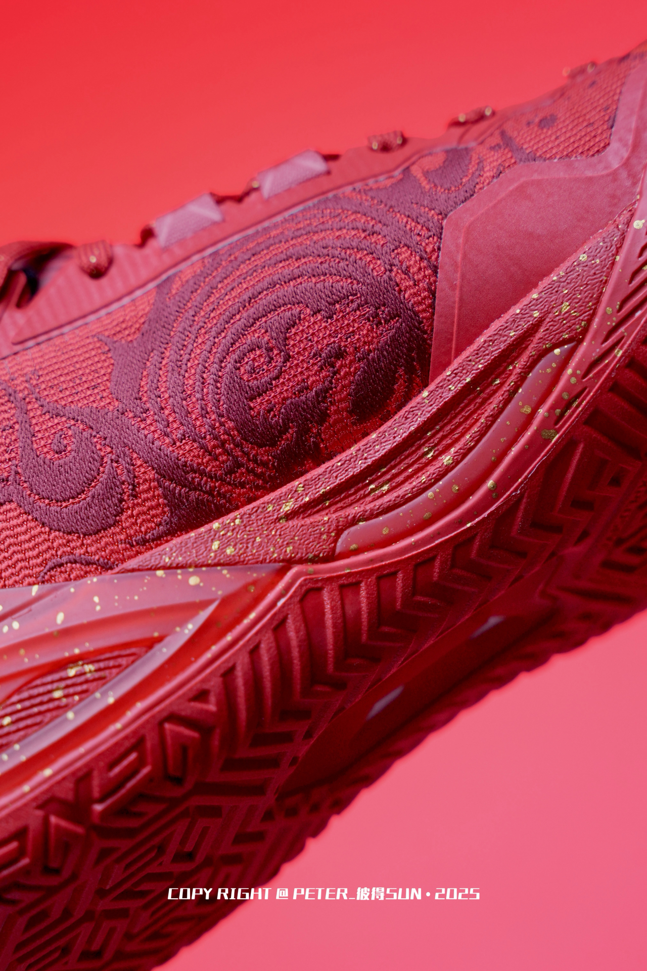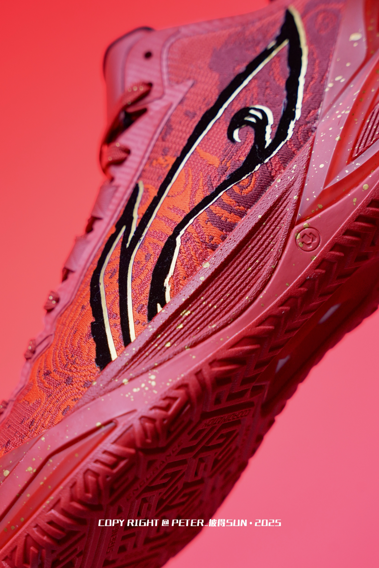 我一直说,利刃系列最大的优点就是既能打而且配色也特别有意思。 今天分享利刃6最新配色[新年],也算是今年最先分享给大家的CNY系列, 鞋身是很正的喜庆红色搭配了马年的元素。鞋带扣这里是龙形的马头图案,寓意龙马精神。后跟有烈日的图案,组合在一起就是[骏马踏日,福运东来]。鞋身还有精美的刺绣,隐约看来应该是太阳和万马奔腾的图腾。有意思的还有侧面的LOGO,这个古代图腾的图案很像太阳鸟的图案,植绒的材质...