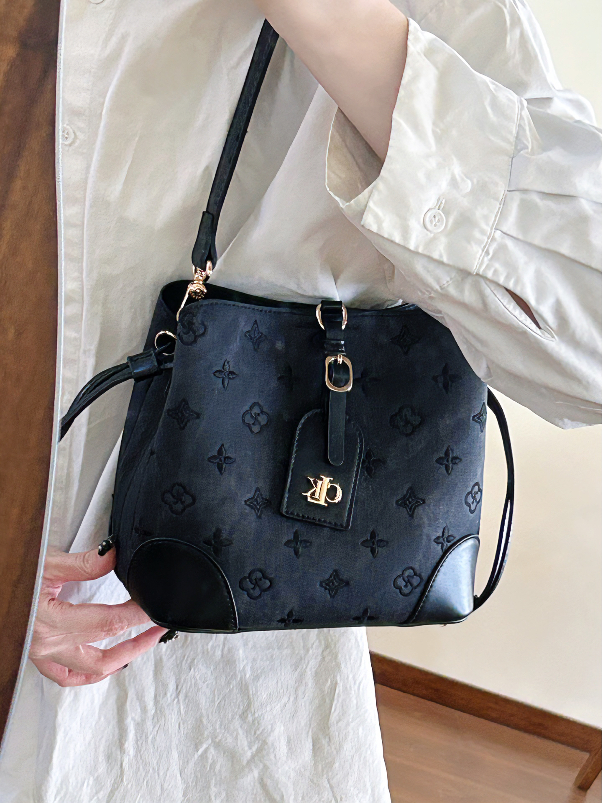被介个all black水桶包给硬控住啦 包身是老花刺绣设计 好高级挨 我觉得黑色比较耐磨耐造 而且一年四季咋背都ok 水桶包的容量也是真的足 妥妥的通勤搭子 上班背有质感又贵气