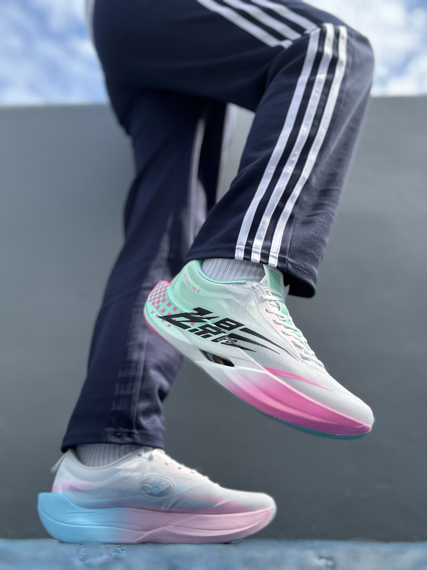 12🈷️更新的王炸顶碳确实有够多的,今分享个中乔飞影PB6.0。 脚感挺特别的,上层中底偏软,落地时冲击感比较柔和,蹬地的瞬间能隐约感到碳板的支撑和推进,像是被轻轻带了一把,步幅更容易打开。不过推进感需要一定的配速才能发挥,大概在5分到4分之间体验会比较明显。 鞋子整体重量不重,上脚没有明显的负担,鞋面透气性不错,长时间跑也不会觉得闷。鞋楦对宽脚比较友好,瘦脚只要把鞋带调整好也能贴合。初穿时可能会...