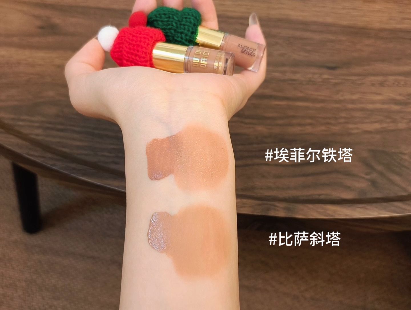 ooo太会挑颜色了,这俩液体眼影真的是分分钟会断货的程度!!! ①埃菲尔铁塔 是一颗低饱和的玫瑰细闪,很贴近肉色还蛮消肿的,日常通勤都蛮合适 ②比萨斜塔 它就是一个哑光质地的裸棕色,自然到拿来当修容也行!
