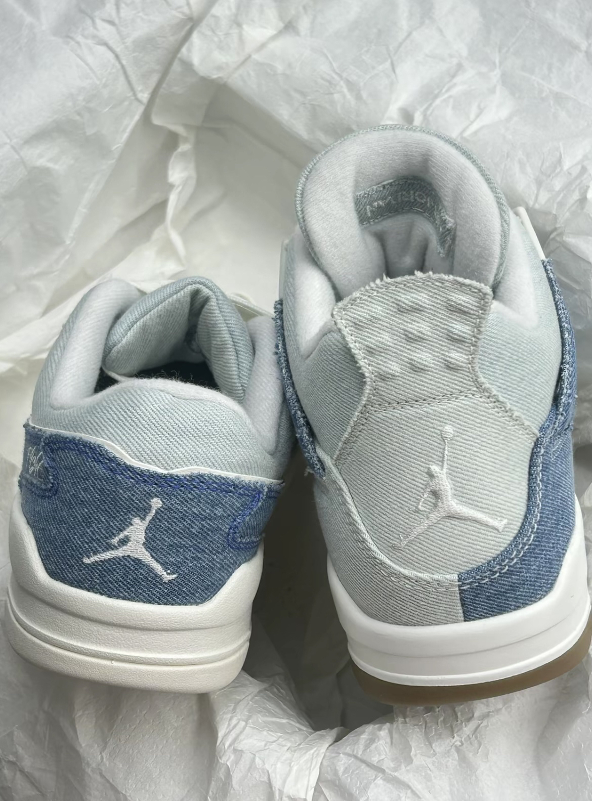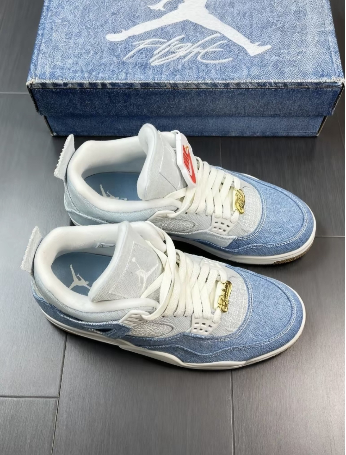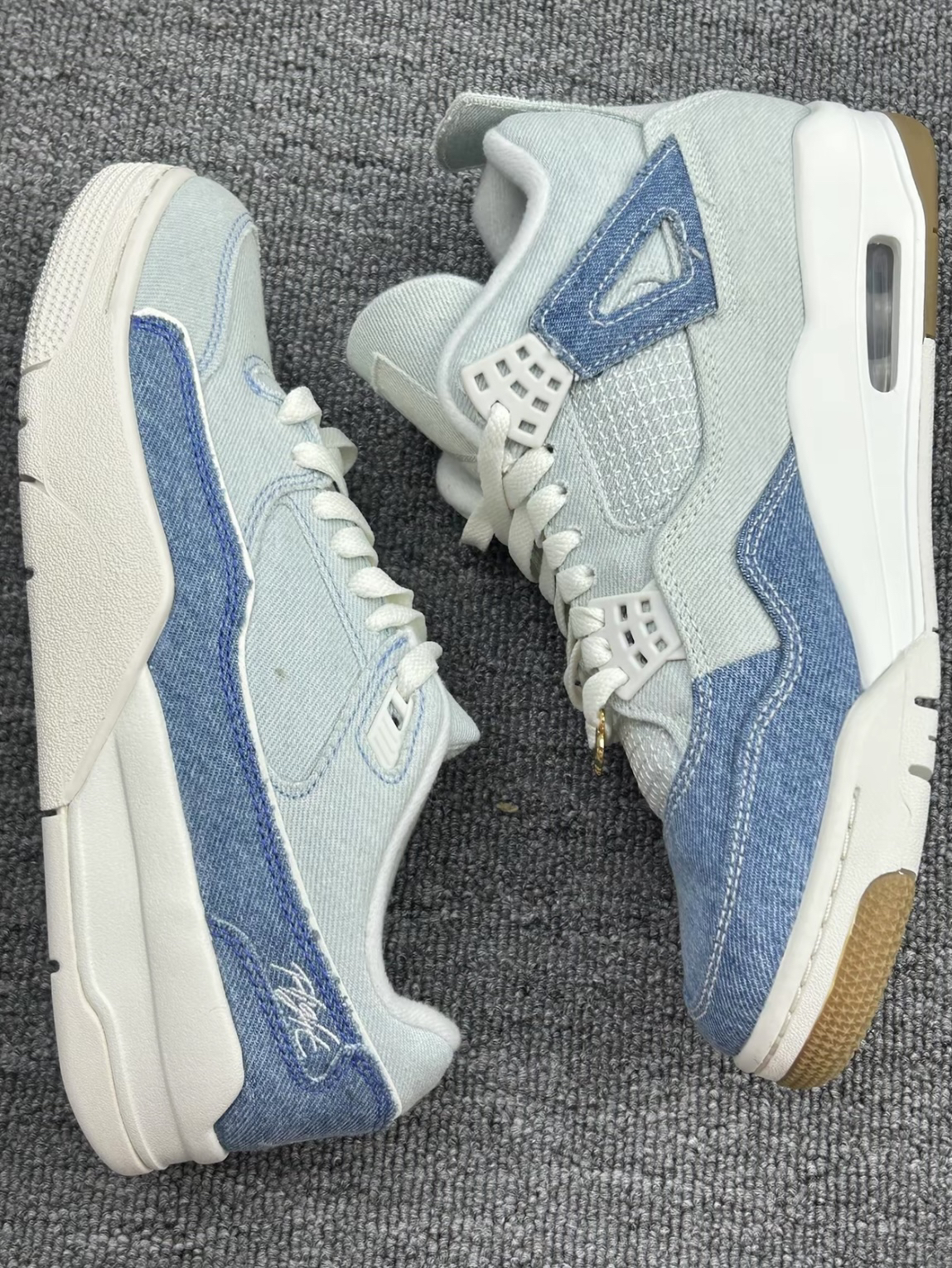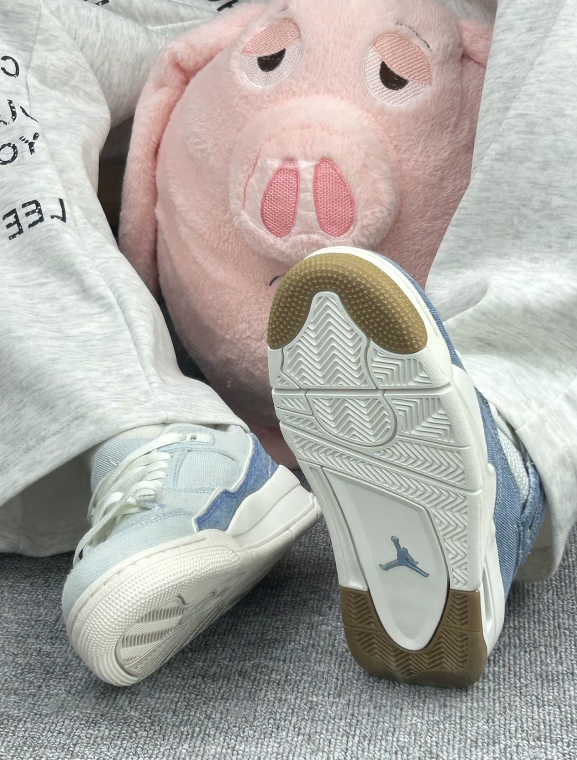 浅蓝牛仔布拼接,复古又清新,金色吊牌小细节挺戳人✨ 日常搭浅蓝牛仔裤,同色系呼应很和谐,配简约白T就很清爽;或搭黑色束脚裤,撞色也不违和。 不过说缺点,牛仔面料打理得小心,沾了污渍不太好清洁,你们有什么好的清洁方法吗?而且鞋型偏窄,脚宽的朋友穿久了会有点挤。 上脚脚感还算舒适,但别指望有超软弹体验,就是常规AJ4水平。整体是有风格但挑场景的鞋,喜欢牛仔风和AJ4的推荐试试。 #牛仔蓝球鞋 #aj...