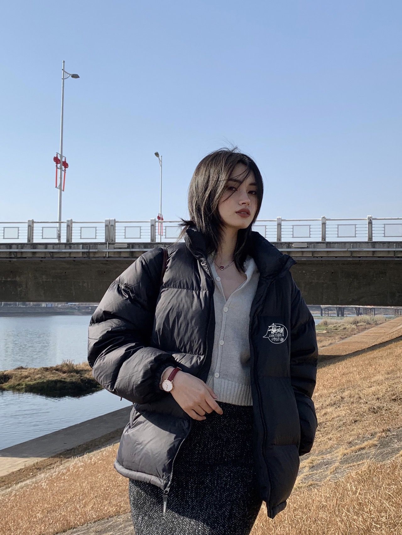 冬日氛围感,被这件黑羽绒承包了 冬日穿搭的终极诉求,无非是温暖与好看兼得,而这件Stussy黑羽绒,恰好把两者揉得恰到好处。 哑光黑的面料自带高级质感,不会像亮面款那样显得浮夸,oversize的廓形藏肉又随性,往身上一套,就能把冬日的臃肿感统统藏起。左胸的白色刺绣标是点睛之笔,简约的线条在纯黑底色上勾勒出街头腔调,低调却不单调。 内搭浅灰色针织开衫,柔化了羽绒的硬朗,再配一条肌理感的...