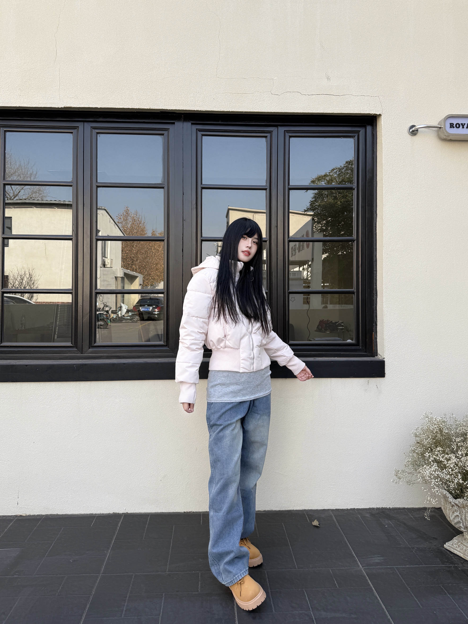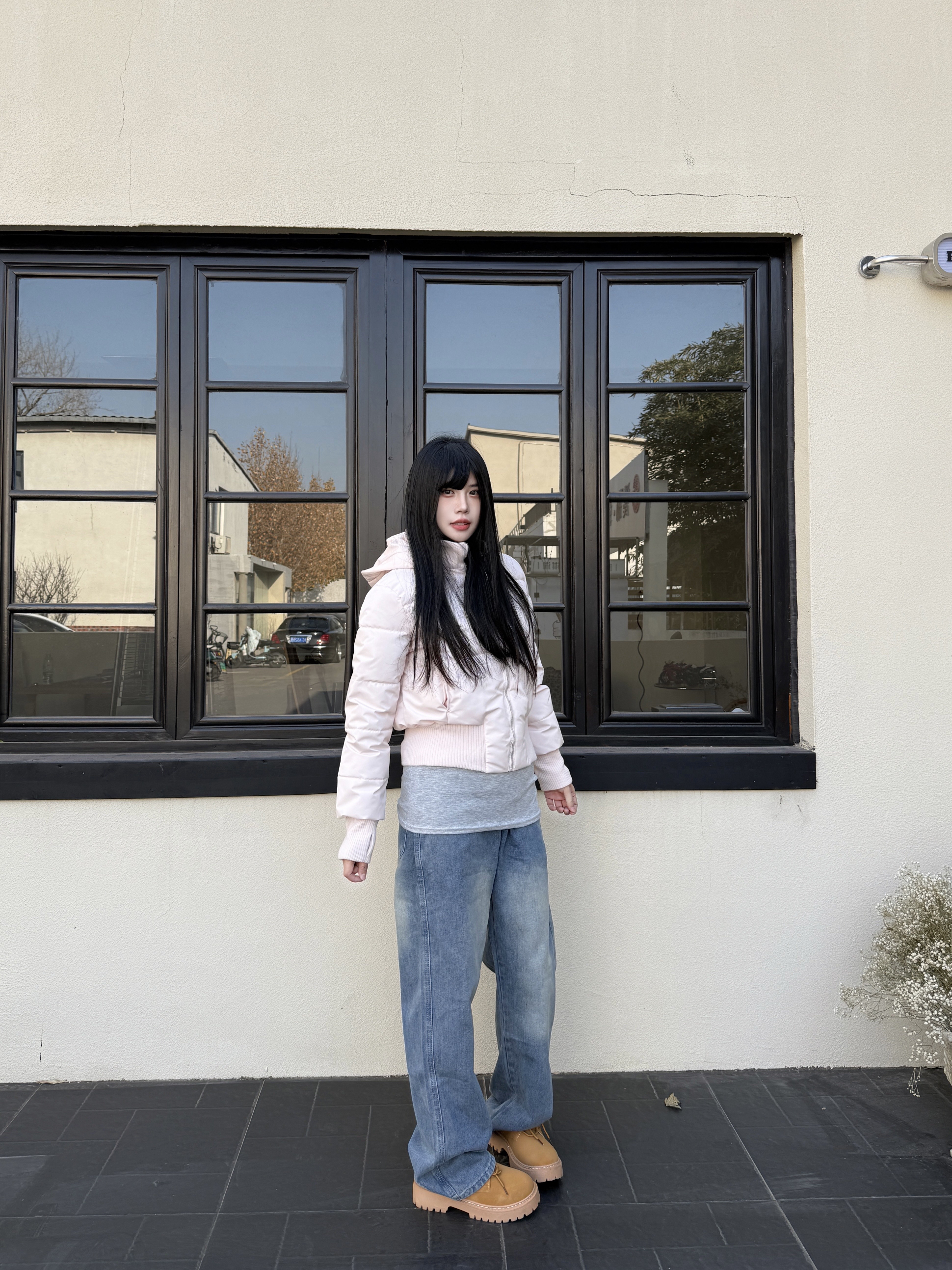 没有牛仔裤的衣橱不算完美 👔今日份ootd就很休闲 上衣穿了一件淡淡的粉色羽绒服 👖搭配一条美式做旧牛仔裤 这条裤子的面料就很舒服 而且它的版型高级感满满 秋冬季有它就够啦