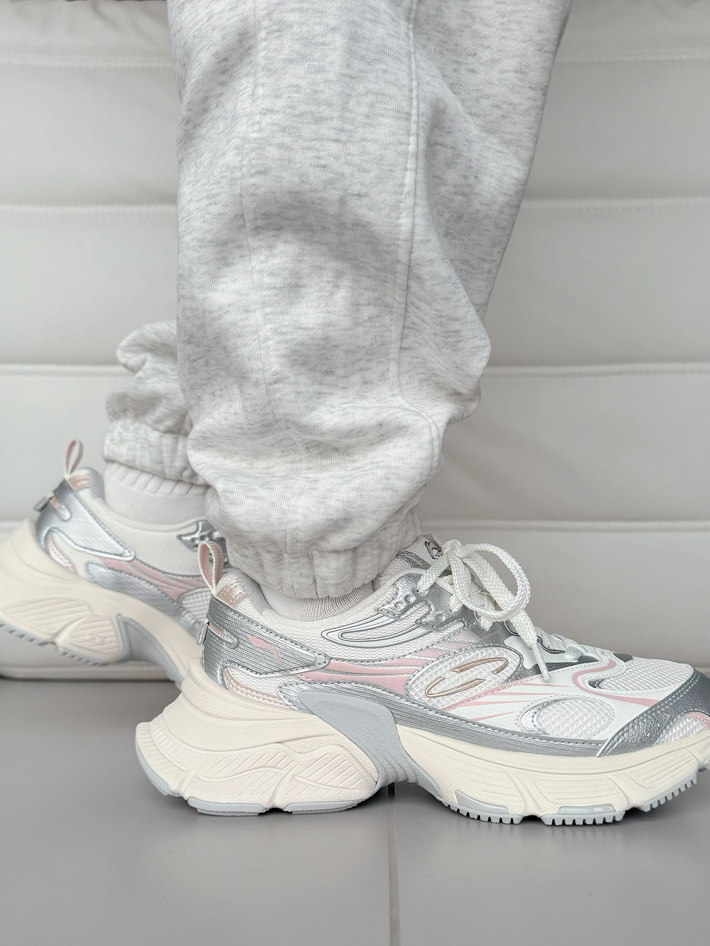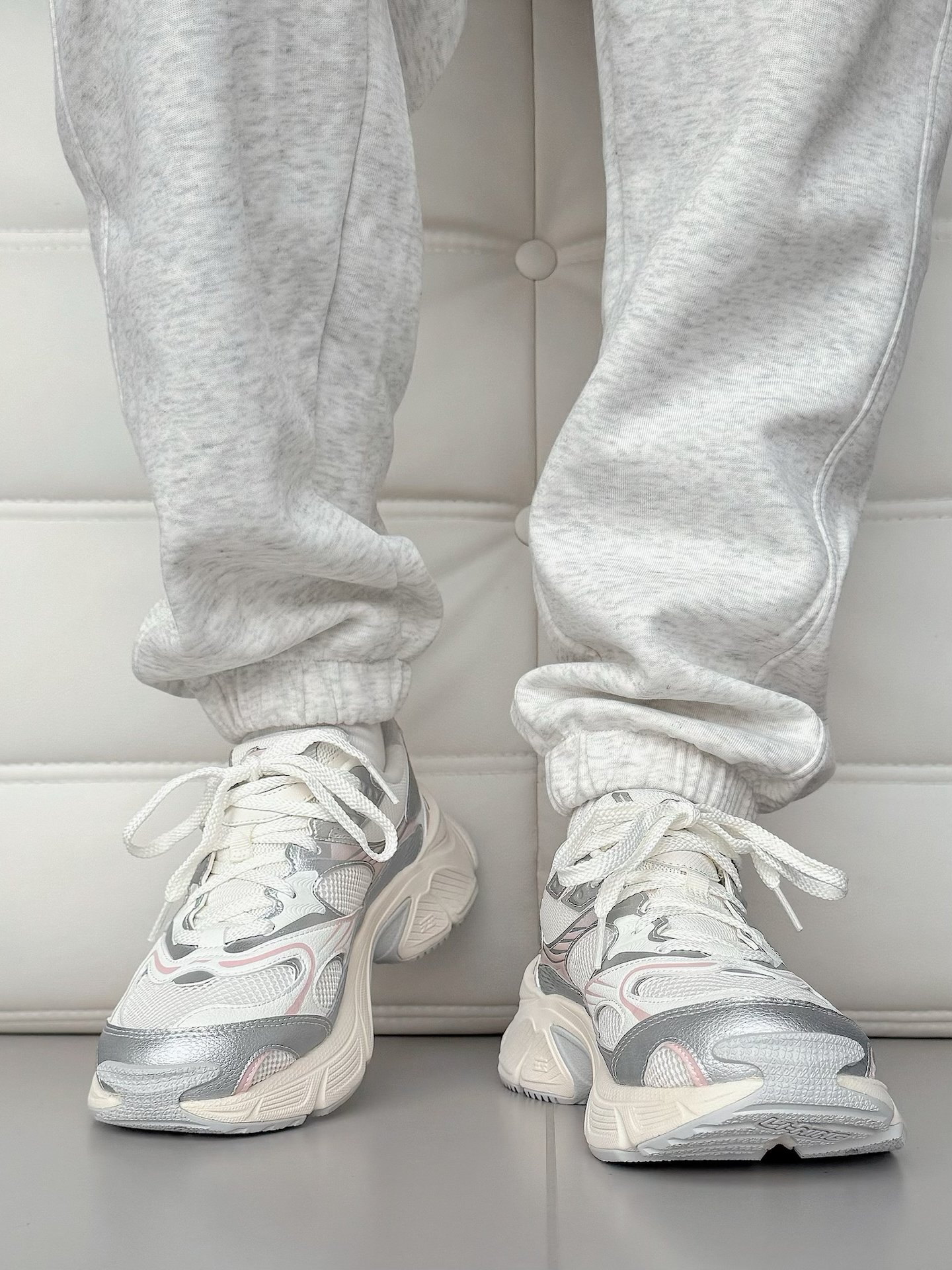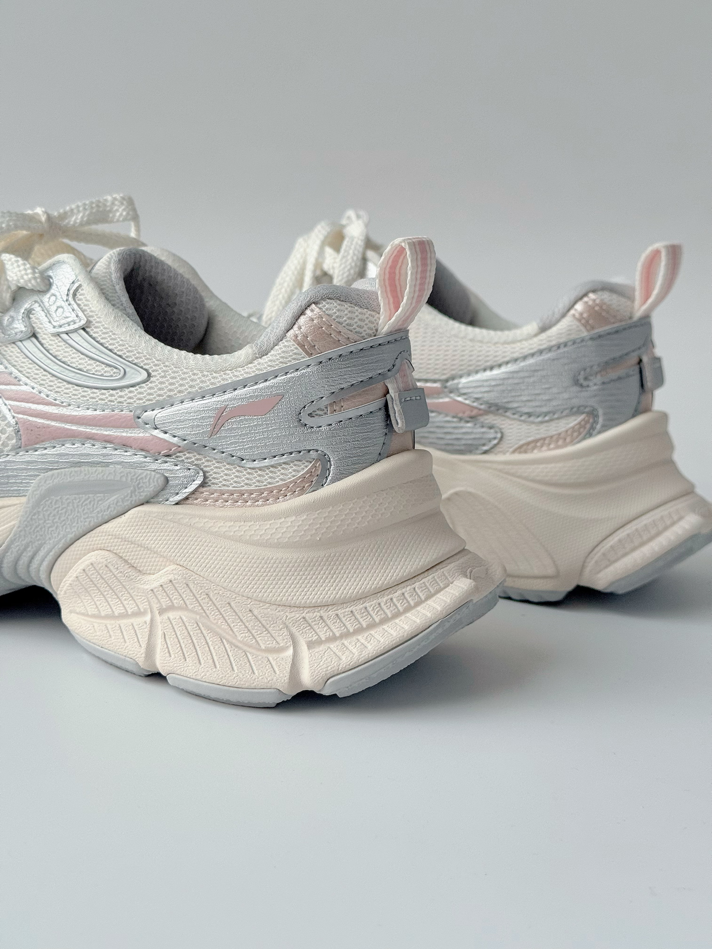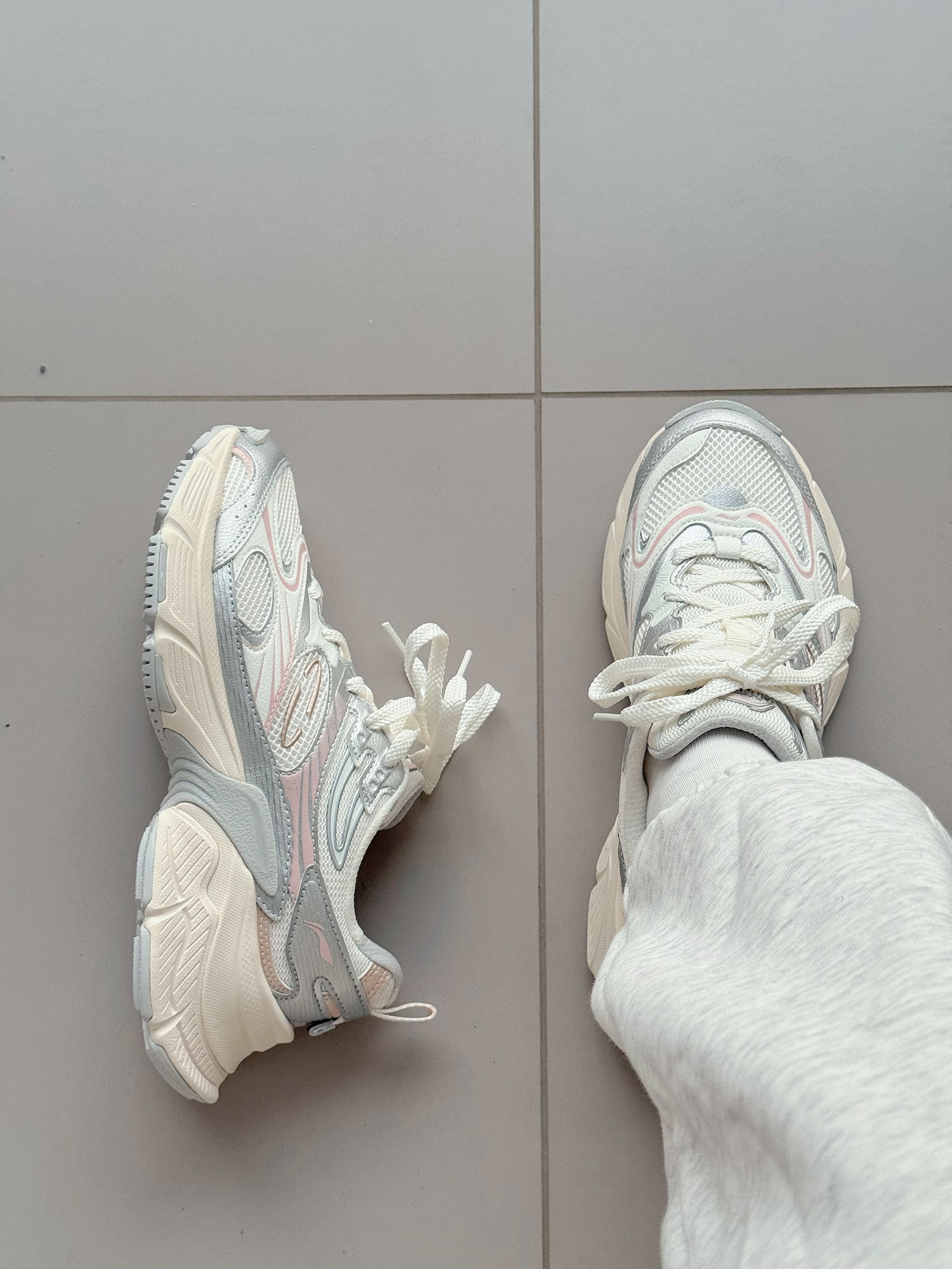 李宁这款老爹鞋外观复古时尚,白银粉的配色非常百搭,上脚之后很显白,厚底设计能够很好的修饰腿型,显腿长!而且目测至少有4厘米左右的增高,对我这样的矮子来说,可以说很友好了!而且中底不算很硬,长时间通勤走路都舒服。浅色网布不会很耐脏,平时要注意打理。尺码标准,可以按日常运动鞋尺码选择。 #双旦礼物节 #我的穿搭名场面 #2025年度鞋王 #跑鞋新品速报 #人人都是球鞋博主