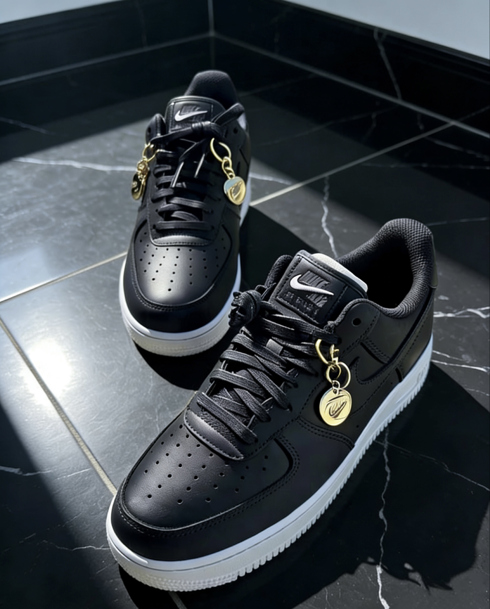 穿搭推荐 这双鞋的黑面白底配色属于经典百搭款,适配多种风格,核心搭配思路是利用黑白对比突出鞋款质感,同时借助金色挂饰的细节做点缀: 1. 街头休闲风:黑色工装束脚裤+白色基础款卫衣+黑色棒球帽,裤脚卷边露出鞋帮,金色挂饰与银色项链形成配饰呼应,打造随性的街头感。 2. 简约通勤风:浅灰色直筒西裤+黑色修身针织衫,鞋款中和西裤的正式感,黑白色调与穿搭色彩适配,适合日常通勤或轻商务场景。 3....
