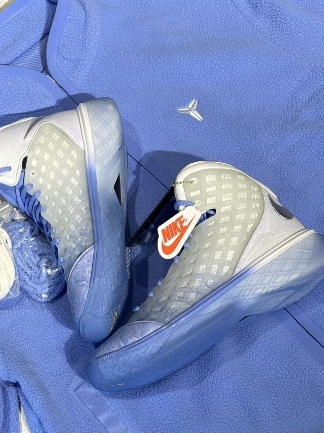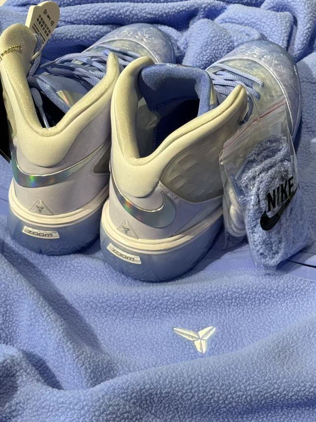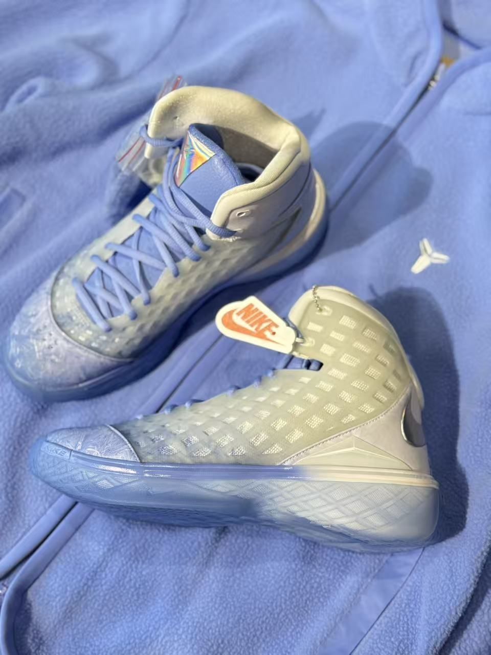 科比3代冰蓝配色真的是把曼巴美学玩到了极致!鞋身的冰蓝渐变纹理搭配透明水晶底,视觉上宛如冰封的曼巴精神,鞋舌处的科比logo、鞋带旁的细节吊牌,再配上黑金蜂窝纹鞋盒,每一处都透着典藏级的精致。作为科比系列的经典鞋型,科3的实战性能本就出众,这抹冰蓝更是让它成为收藏与上脚两相宜的宝藏款,曼巴球迷真的很难不心动~
