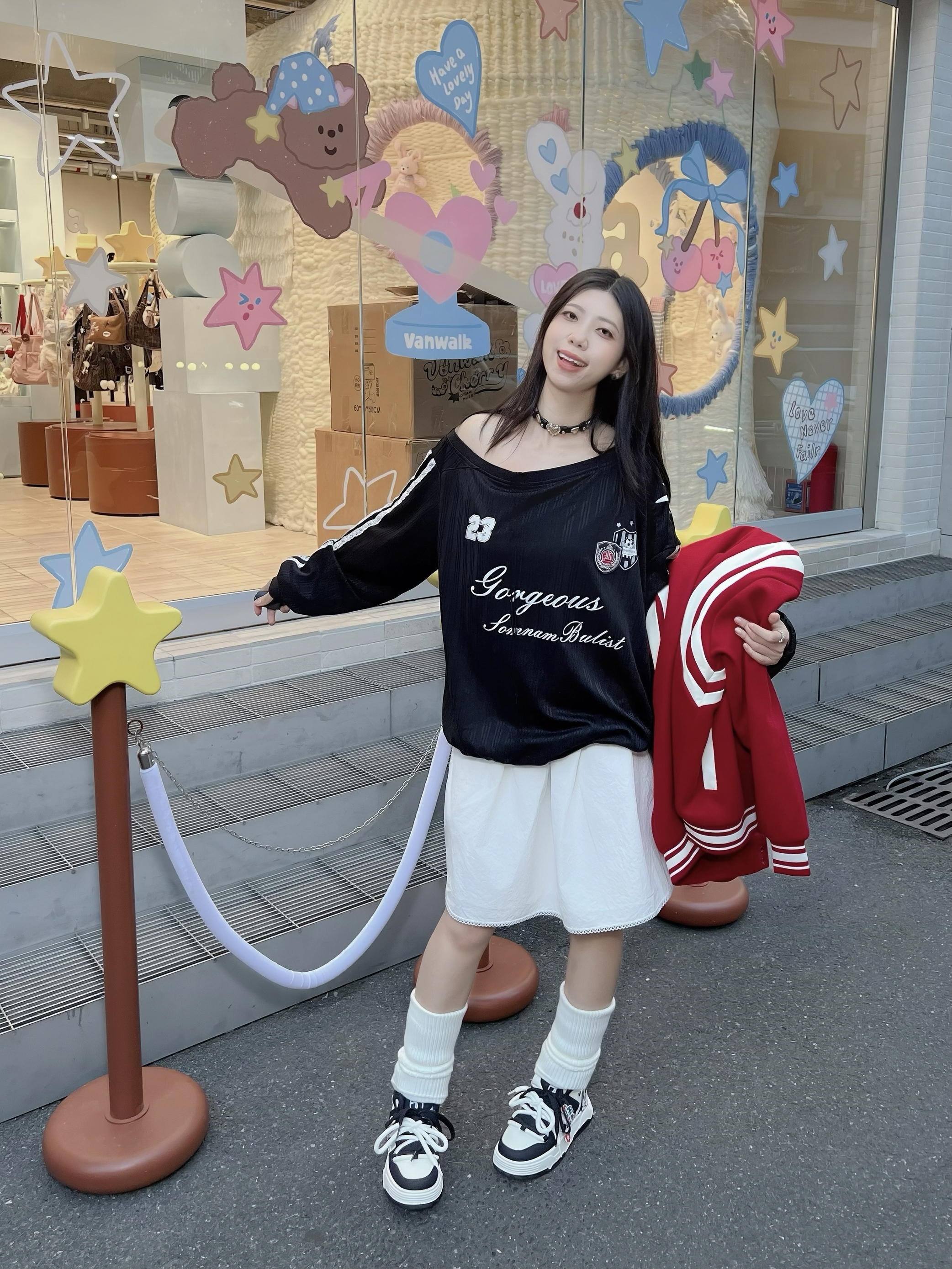 时髦蜈蚣精的👟分享来了! 圣诞款的鞋子谁能顶得住😍鞋身有小猫咪和圣诞袜子,真嘟可可爱爱💗 🖤日常搭个棒球服,甜酷感十足