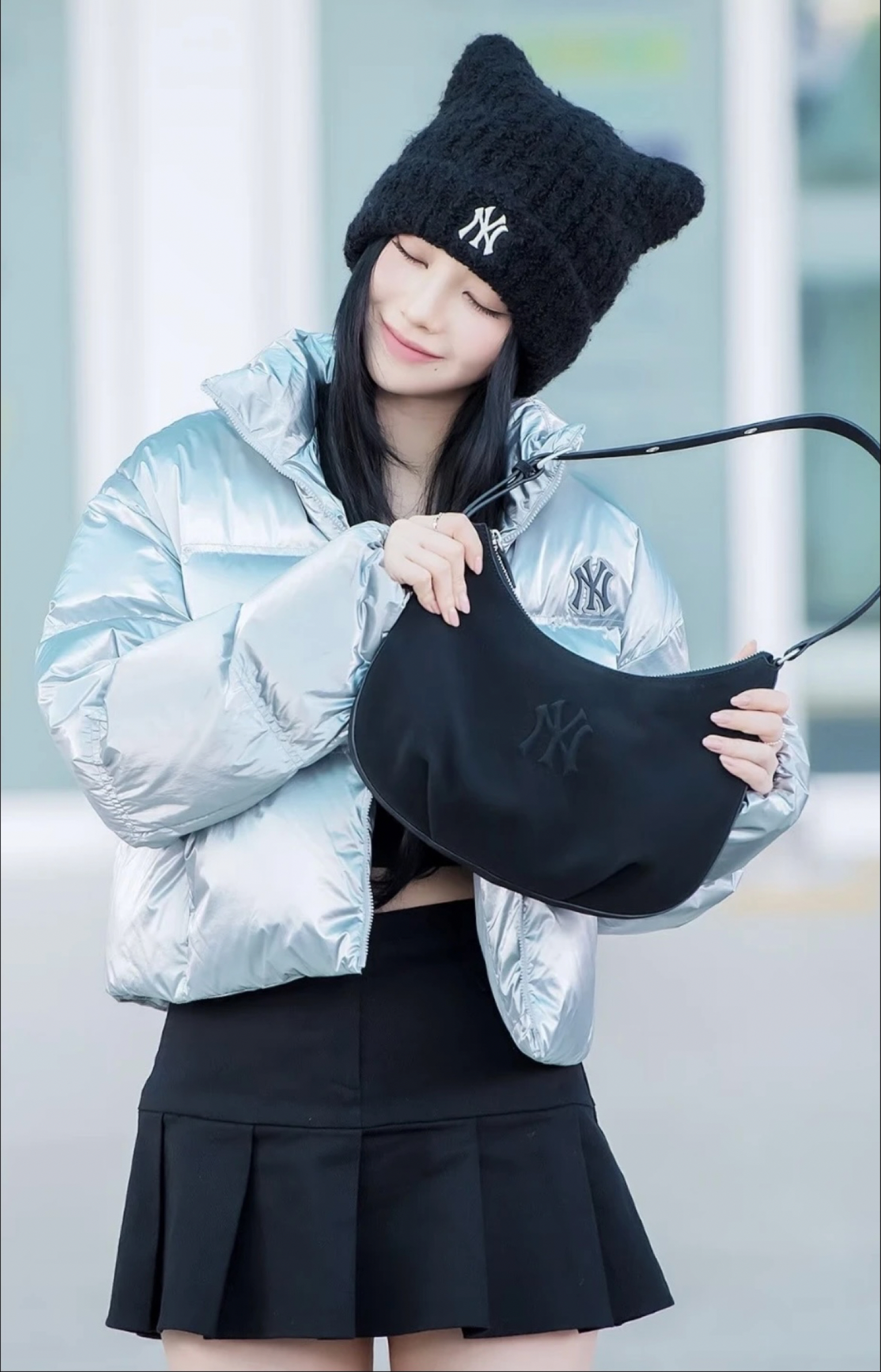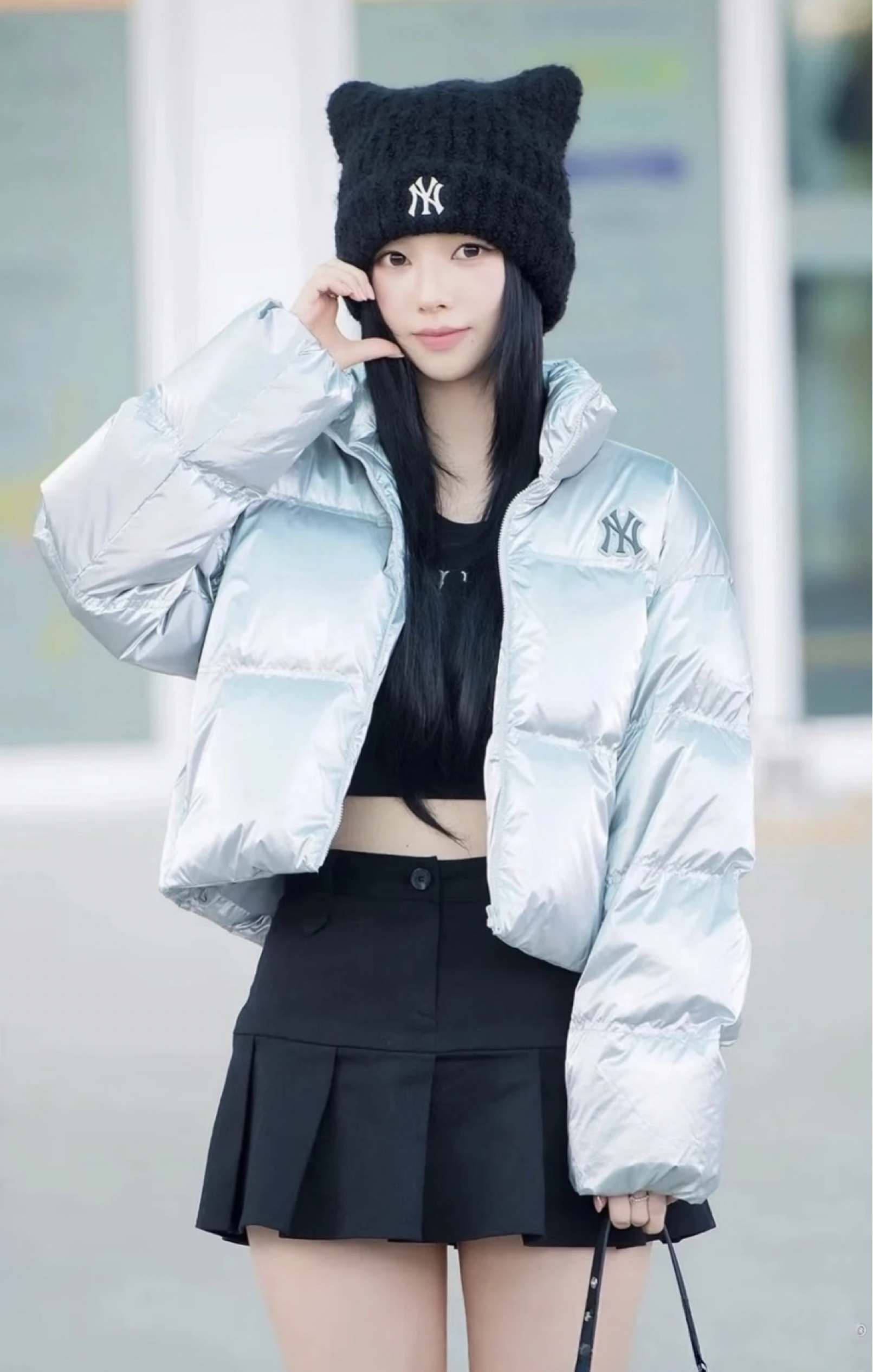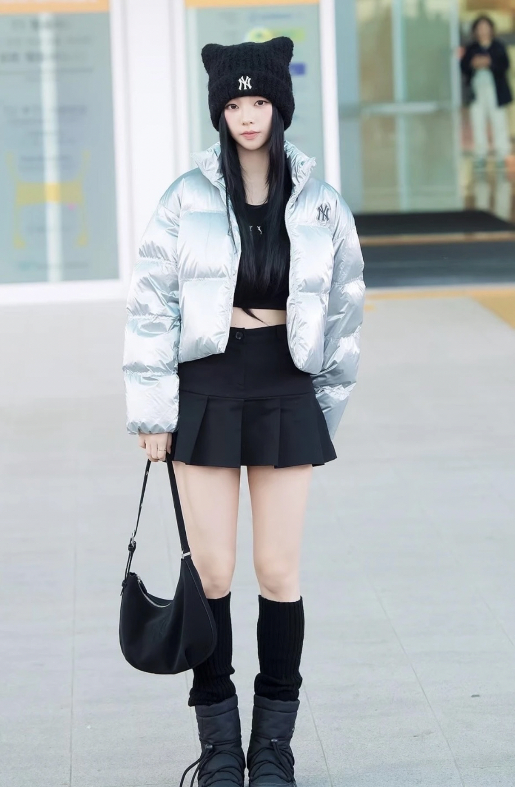 猫耳帽甜酷吸睛,高光羽绒服自带冷白皮滤镜,搭配短款长袖T+腋下包,再叠穿Anyonemore百褶裙,甜飒辣妹风一键拿捏~