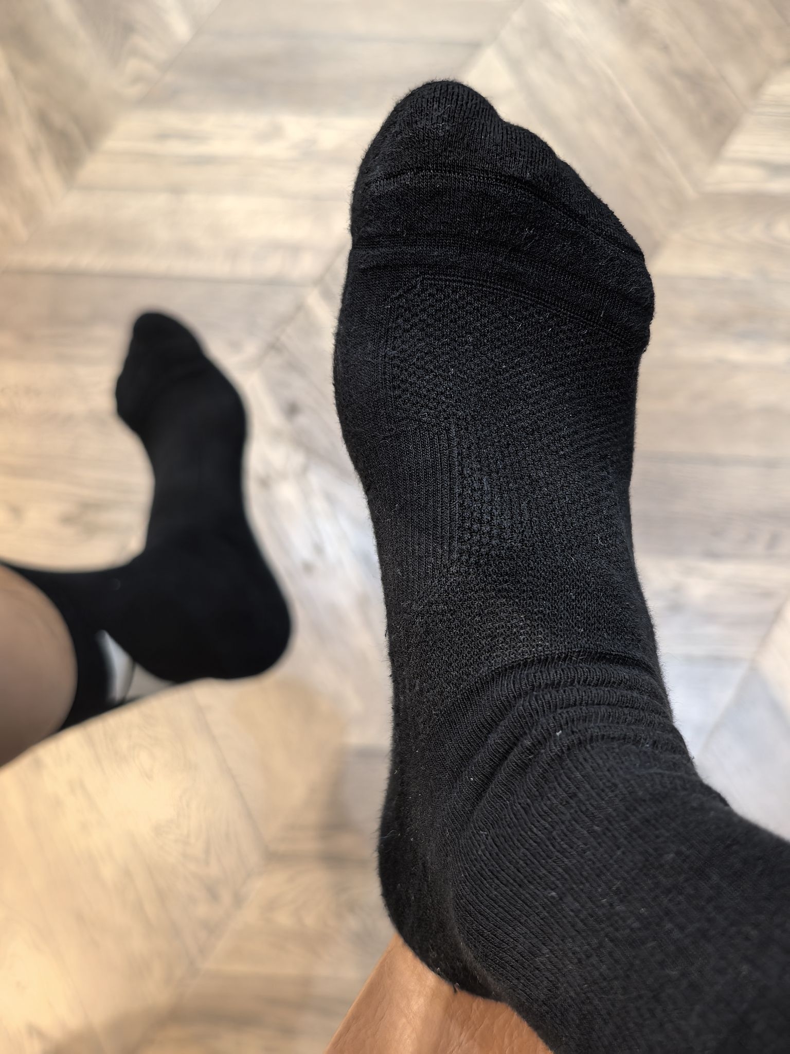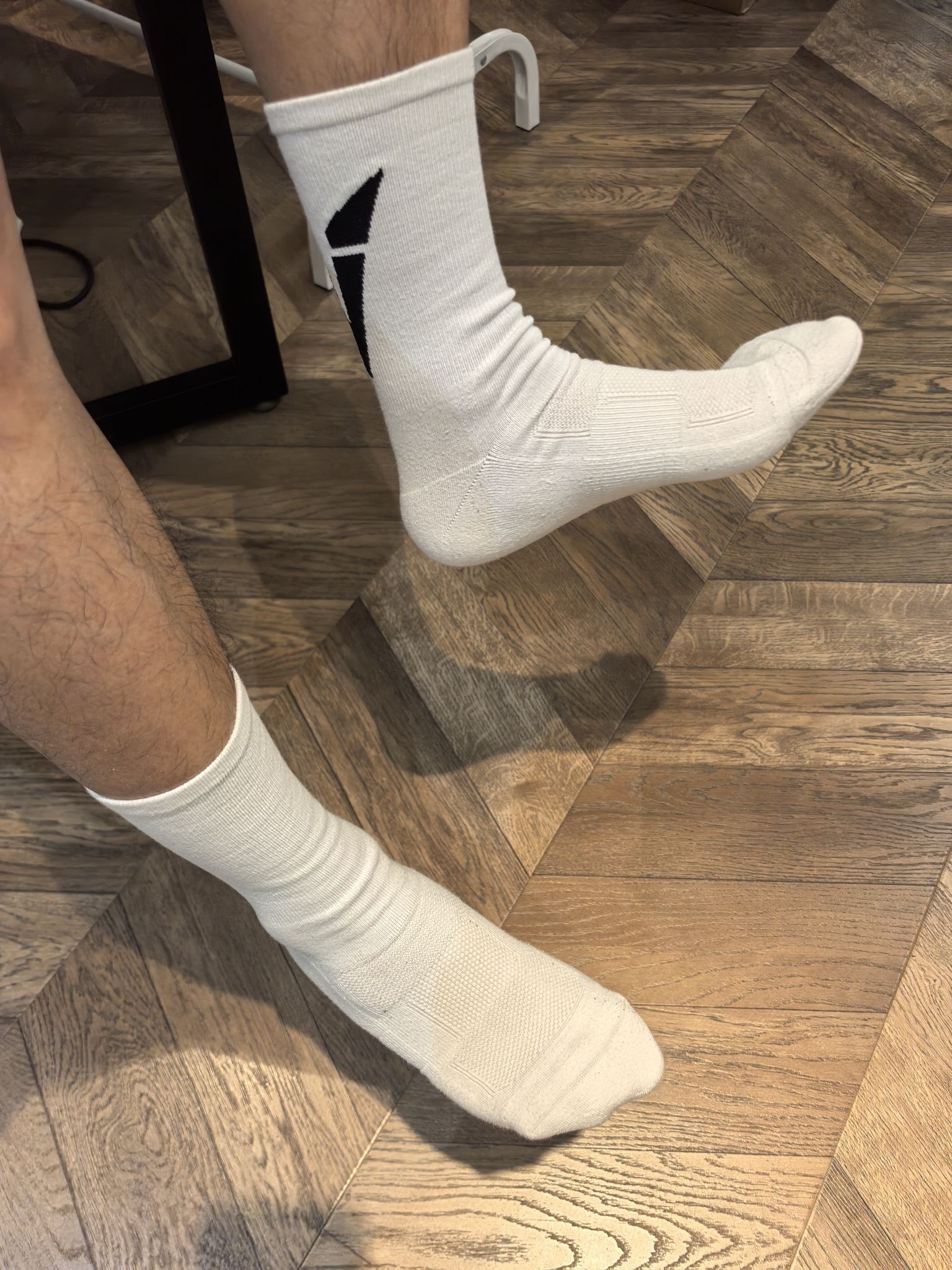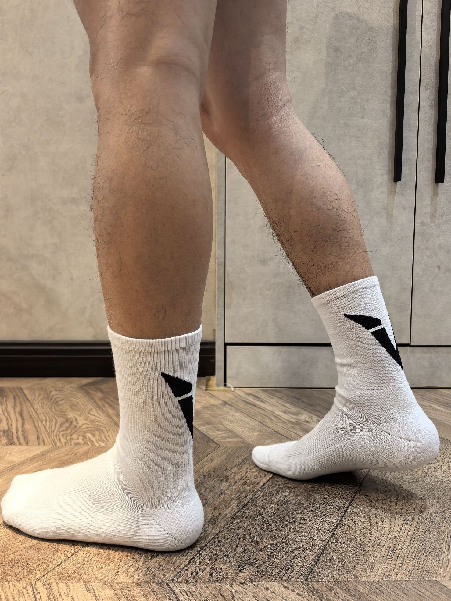 今天穿的维动这款运动袜,采用的是一个黑白撞色的设计,简约的外观在后脚跟增加了一点点小个性!袜子厚度属于中等吧,一年四季都可以穿!毛巾底袜底,脚背处还做了大面积透气,适合日常休闲和一些轻运动穿着。有黑白两个颜色可选!