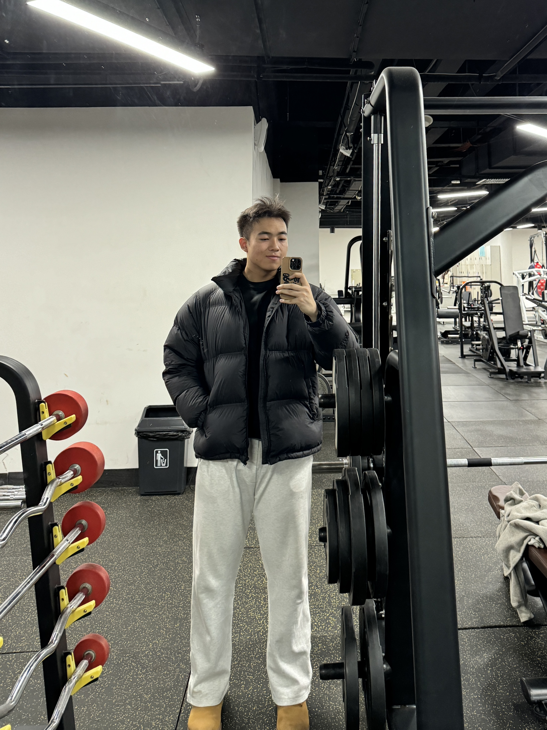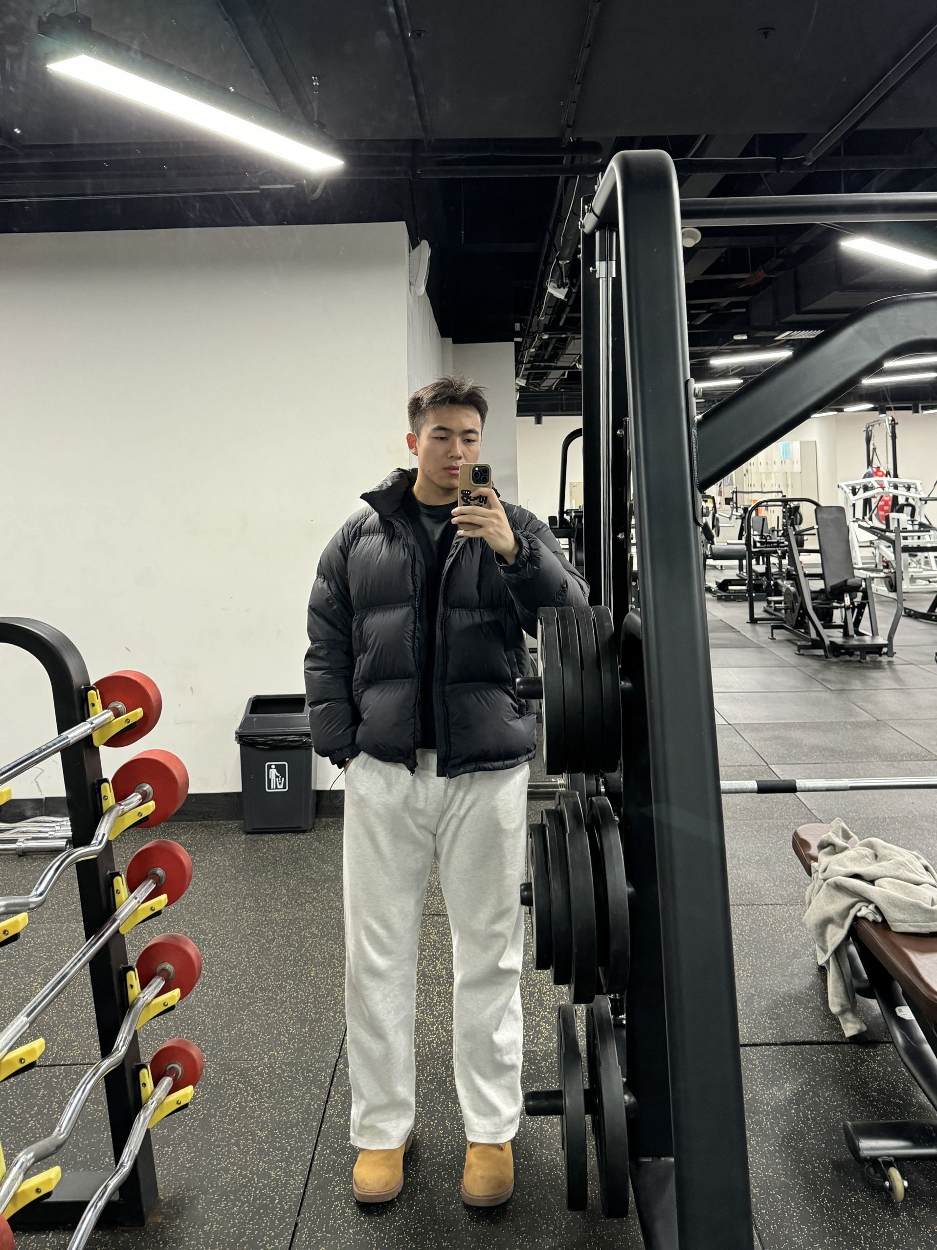 🛒好物名称: 🤔推荐理由:1. 健身人的冬日穿搭,黑羽绒配灰卫裤,保暖又不丢型格💪 2. 健身房ootd|黑面包服+浅灰卫裤,慵懒感和力量感都拉满了 3. 冬日健身穿搭公式:羽绒服+卫裤,舒服又出片,识货人都这么搭👟