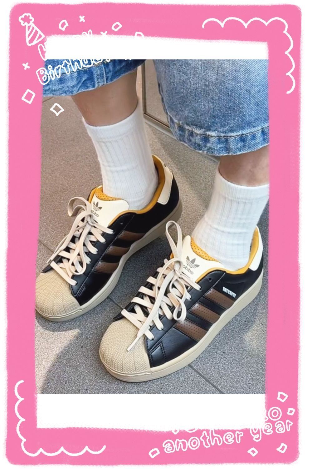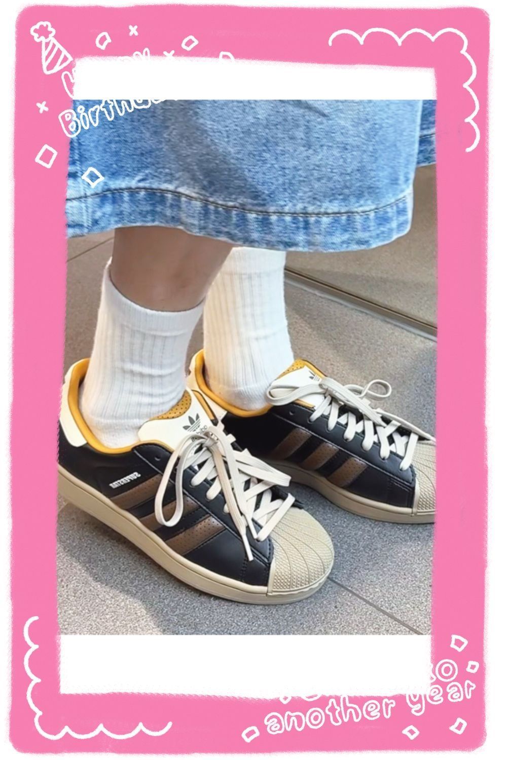 入秋之后一直在找一双兼顾颜值和实穿的板鞋,逛阿迪门店时一眼就被这双Superstar贝壳头戳中了✨!黑棕黄的撞色拼接太有复古味道了,鞋头的米白色做旧设计还自带小众感,完全不怕撞款~ 上脚试穿后发现优点真的不少:鞋身皮质软乎乎的,踩地时鞋垫的回弹感很舒服,日常走个万步也不磨脚;搭配性更是没话说,配牛仔裙、运动裤、阔腿裤都超搭,我试了3套秋冬穿搭都能完美适配。 不过也得说点小缺点:新鞋刚上脚时...
