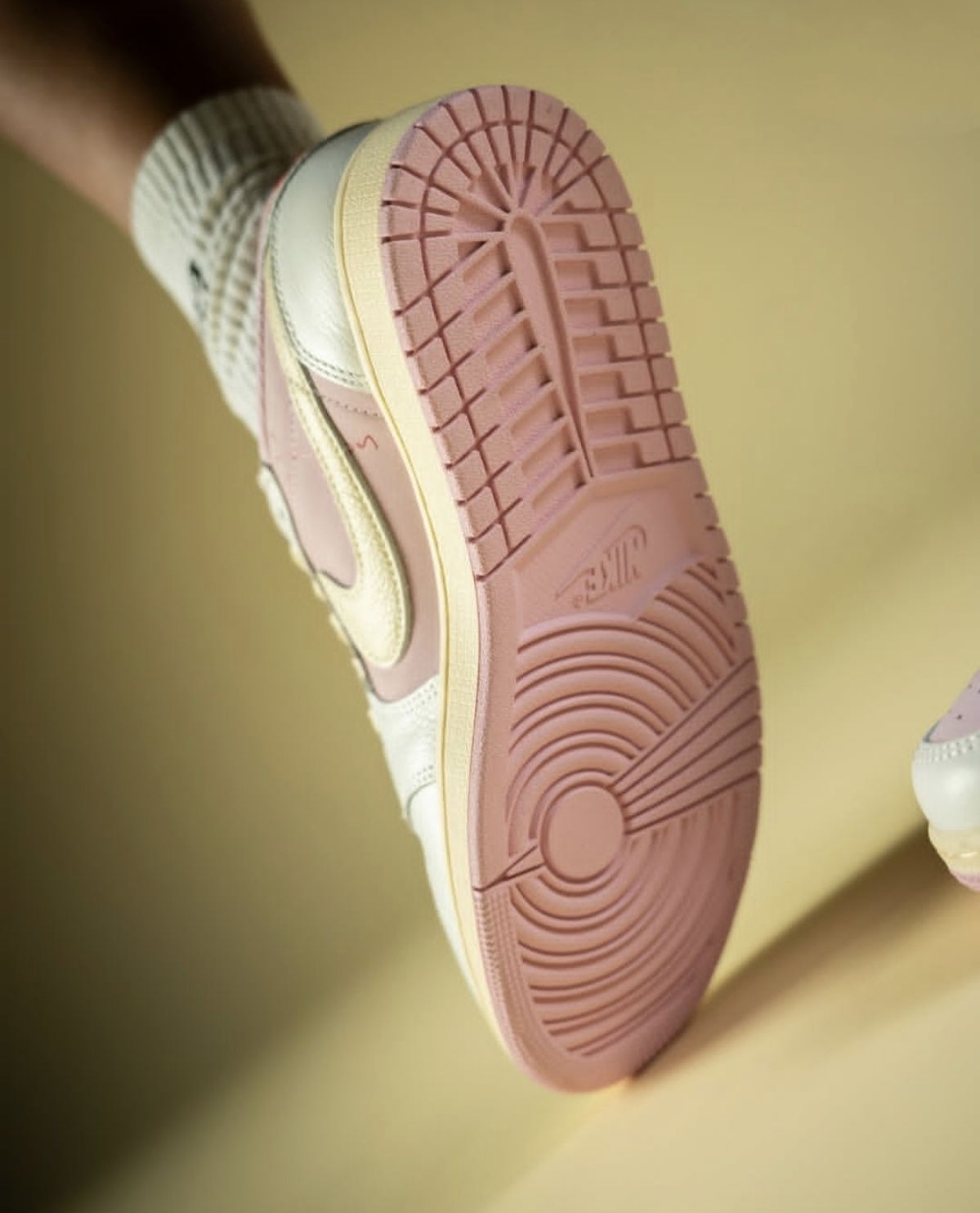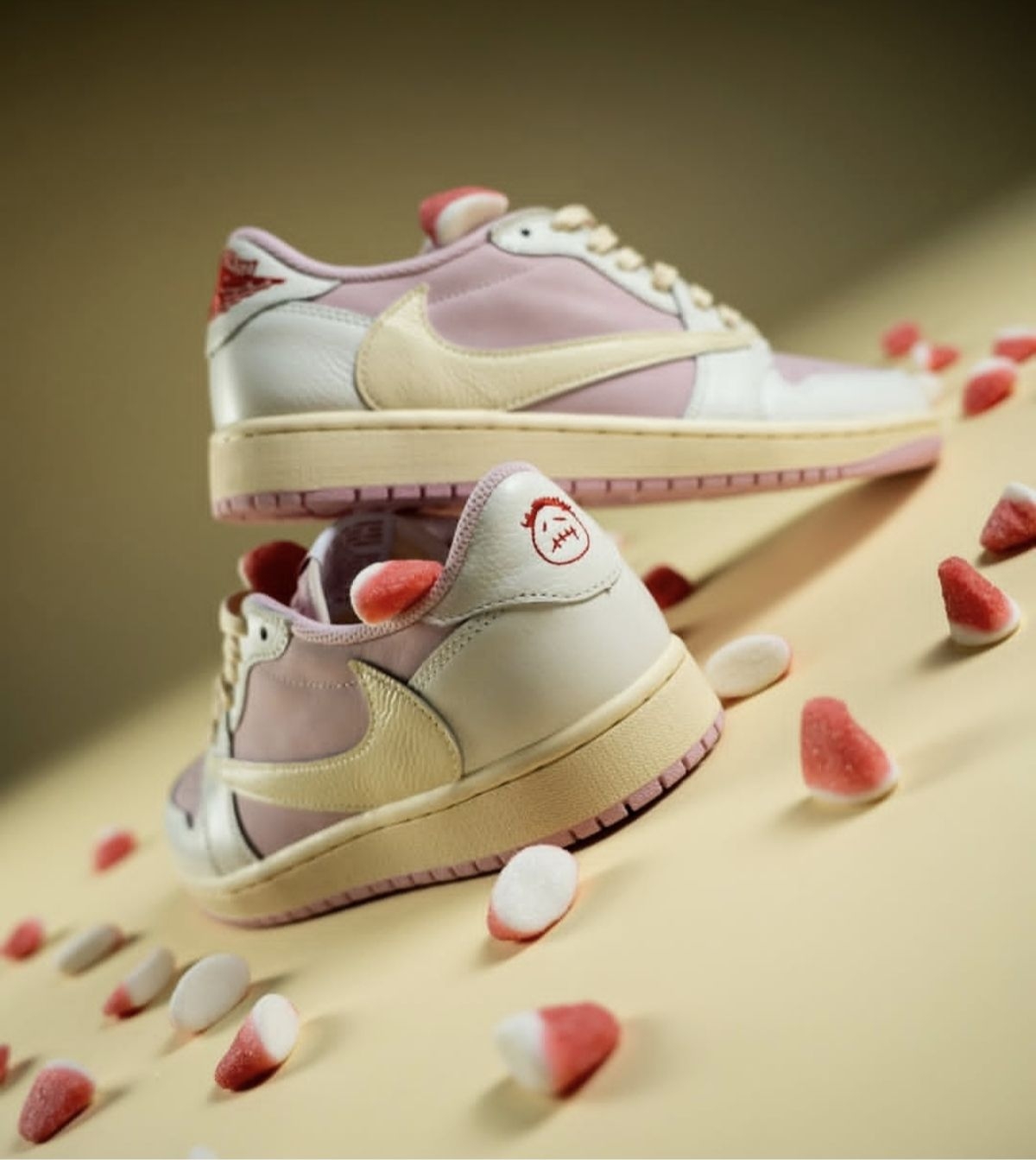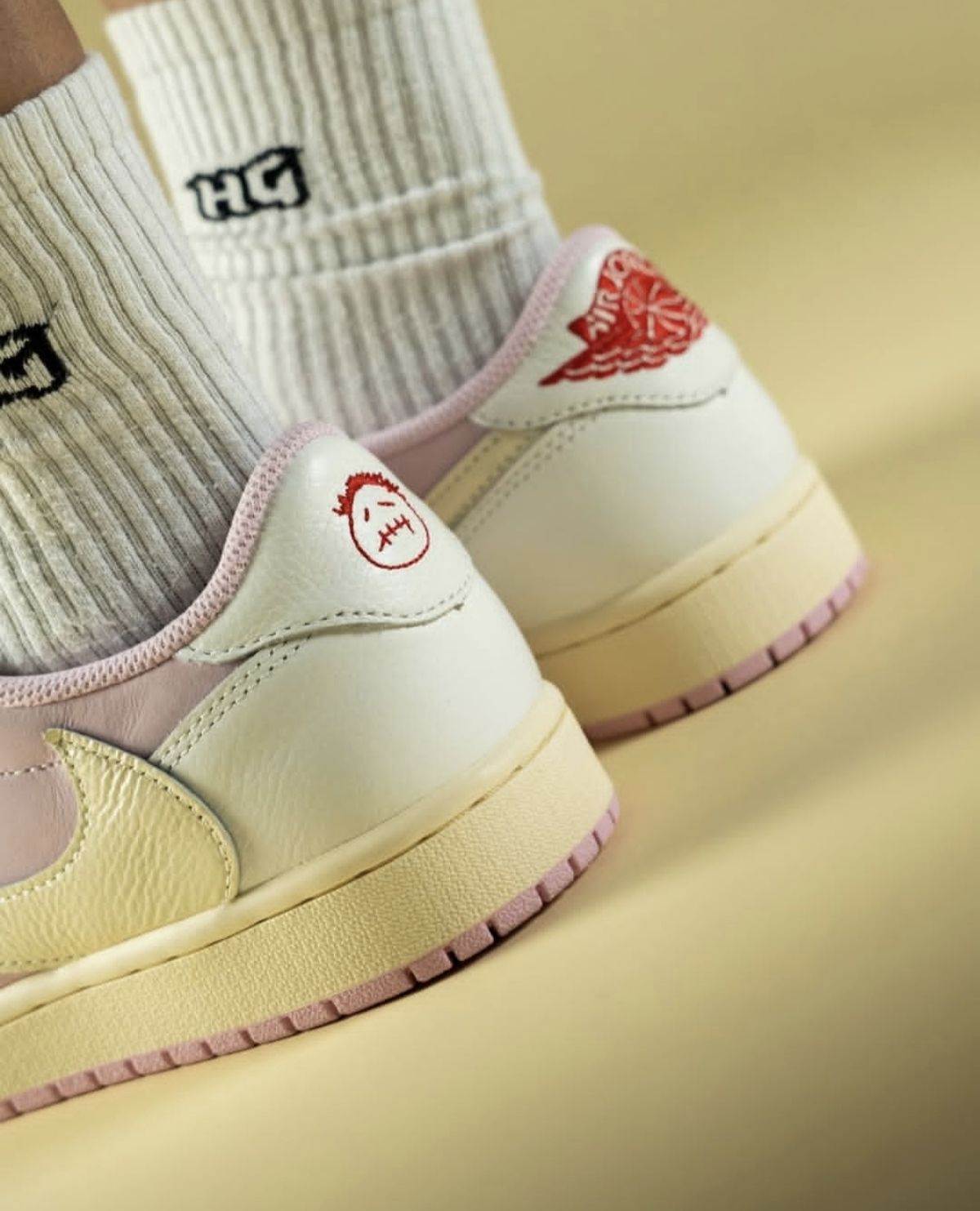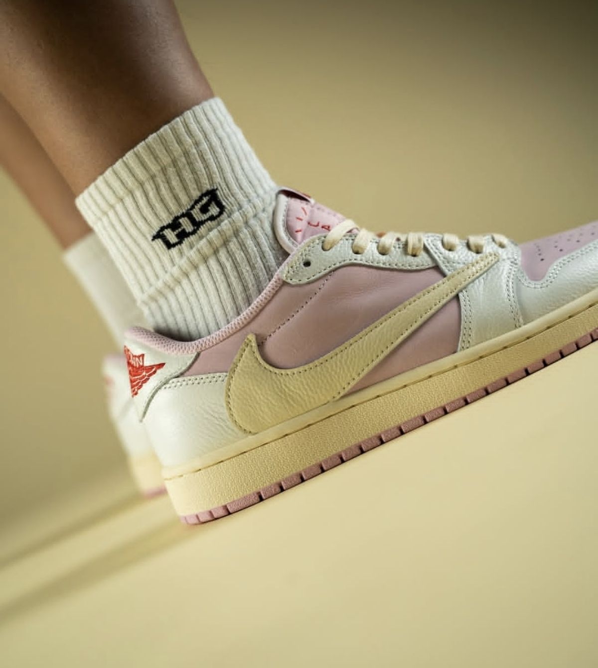 Travis Scott x Air Jordan 1 Low OG「Shy Pink」把甜酷美学玩到极致!裸粉主调碰撞奶黄勾勒的倒钩,细腻的麂皮与荔枝纹皮革拼接出丰富层次,氧化做旧的中底晕开复古氛围感,鞋舌与后跟的红色飞翼标更是点睛之笔。AJ1经典低帮鞋型搭配TS标志性的倒钩设计,既保留了经典球鞋的骨架,又用粉调柔化了街头硬朗感,每一处材质拼接和色彩搭配都戳中潮流审美,是兼具设计感与收藏价值的联...