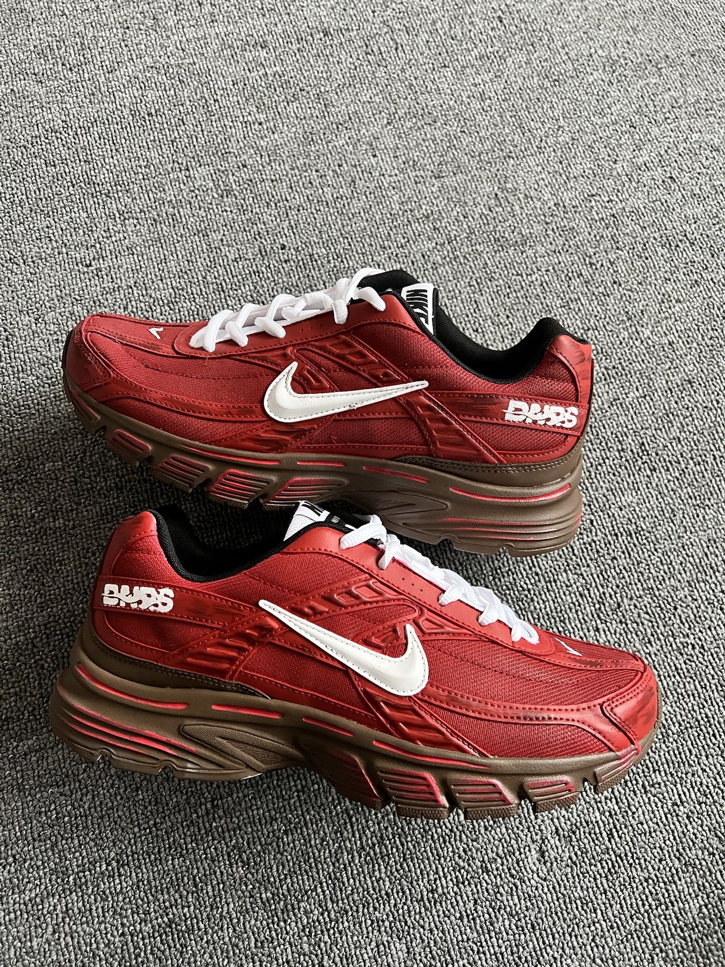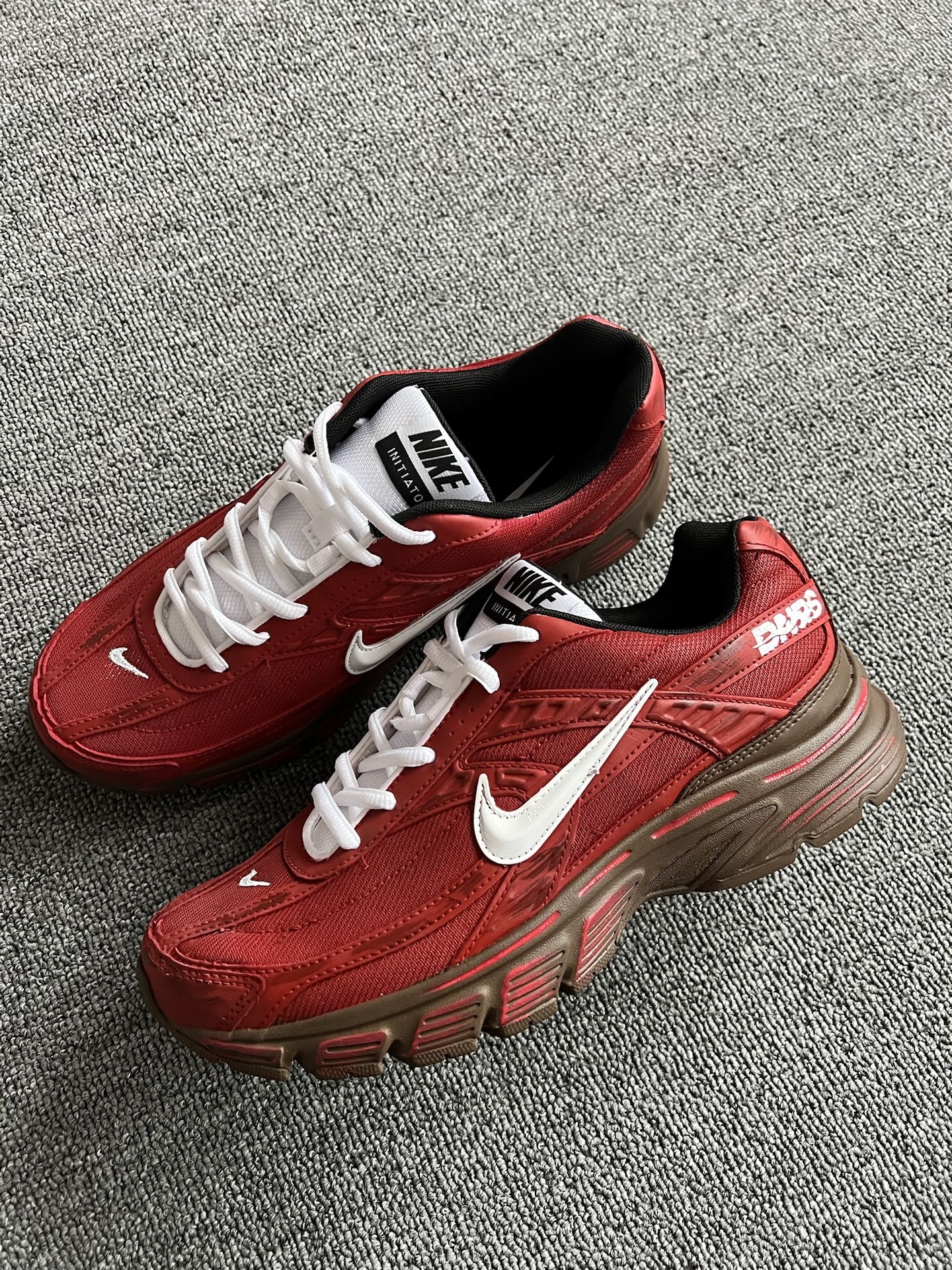 我瞅着这双Nike Initiator白红棕配色还挺对我胃口的,复古感很足,不是那种大街上一抓一大把的款,日常搭牛仔裤、运动裤都不违和。鞋面是网布加拼接的,看着就透气,夏天穿也没觉得闷脚。 上脚试了试,低帮设计不卡脚踝,穿脱挺方便的。中底踩起来是软乎乎的,走久了脚不酸,平时逛超市、压马路都没问题。外底摸着挺厚实,我穿了段时间,鞋底没明显磨损,抓地力也还行,下雨天走瓷砖路没打滑。 整体来说不算惊...
