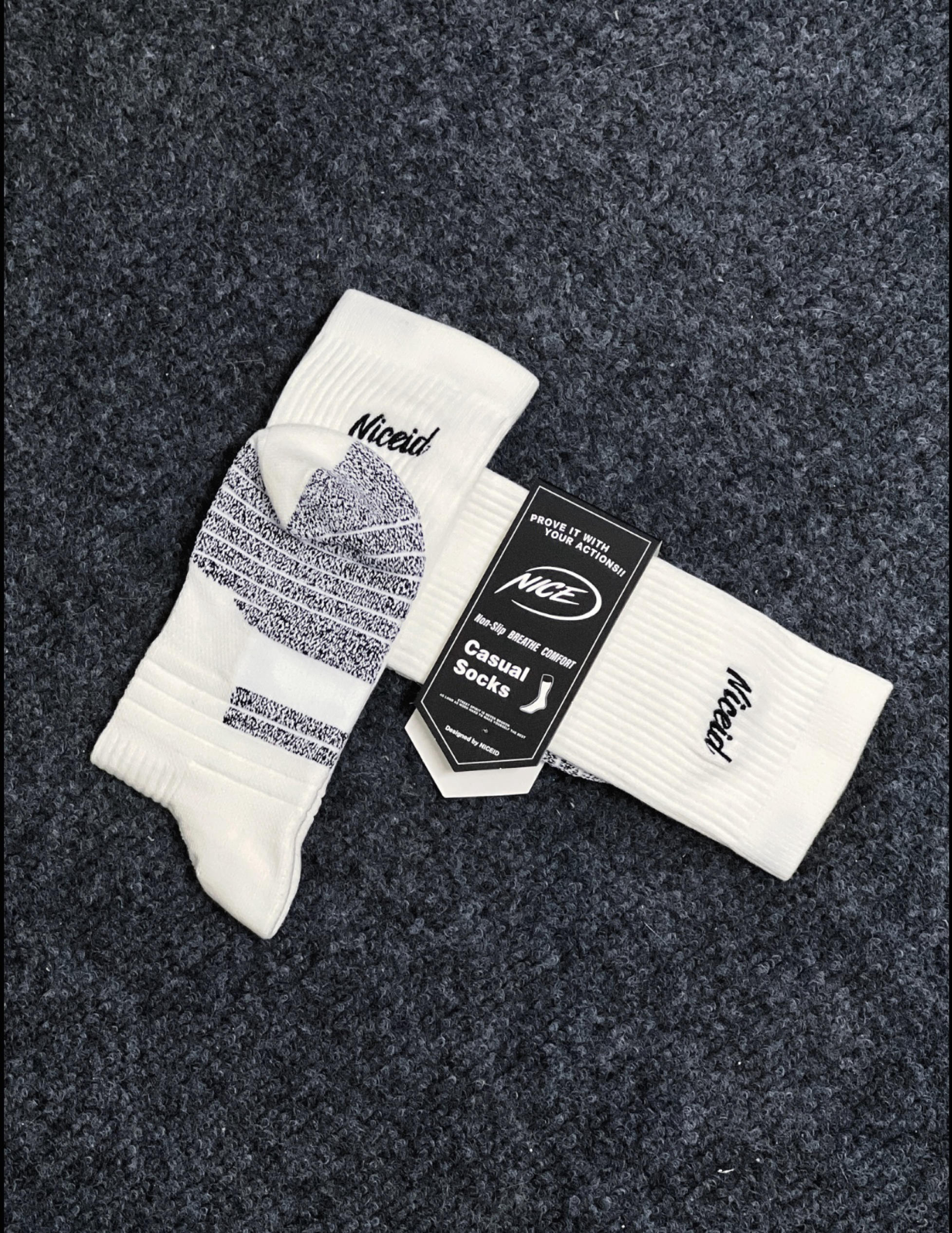 Niceid实战球袜-实穿评测 Ps.头头的🦶是 42-43 码 价格丨🌟🌟🌟🌟 18+米/双,价格中规中矩 颜值丨🌟🌟🌟🌟 黑白两个颜色,不过logo有很多颜色能选,宝宝们可以看自己喜欢什么颜色选择!袜口有logo,后翻有品牌名(可以看第一张图),脚底脚背也有印花,总体还行~ 材质丨🌟🌟🌟🌟 没找到具体参数,穿着挺舒服,厚度适中,冬天刚好! 防滑性丨🌟🌟🌟🌟 袜底有防滑纱毛...