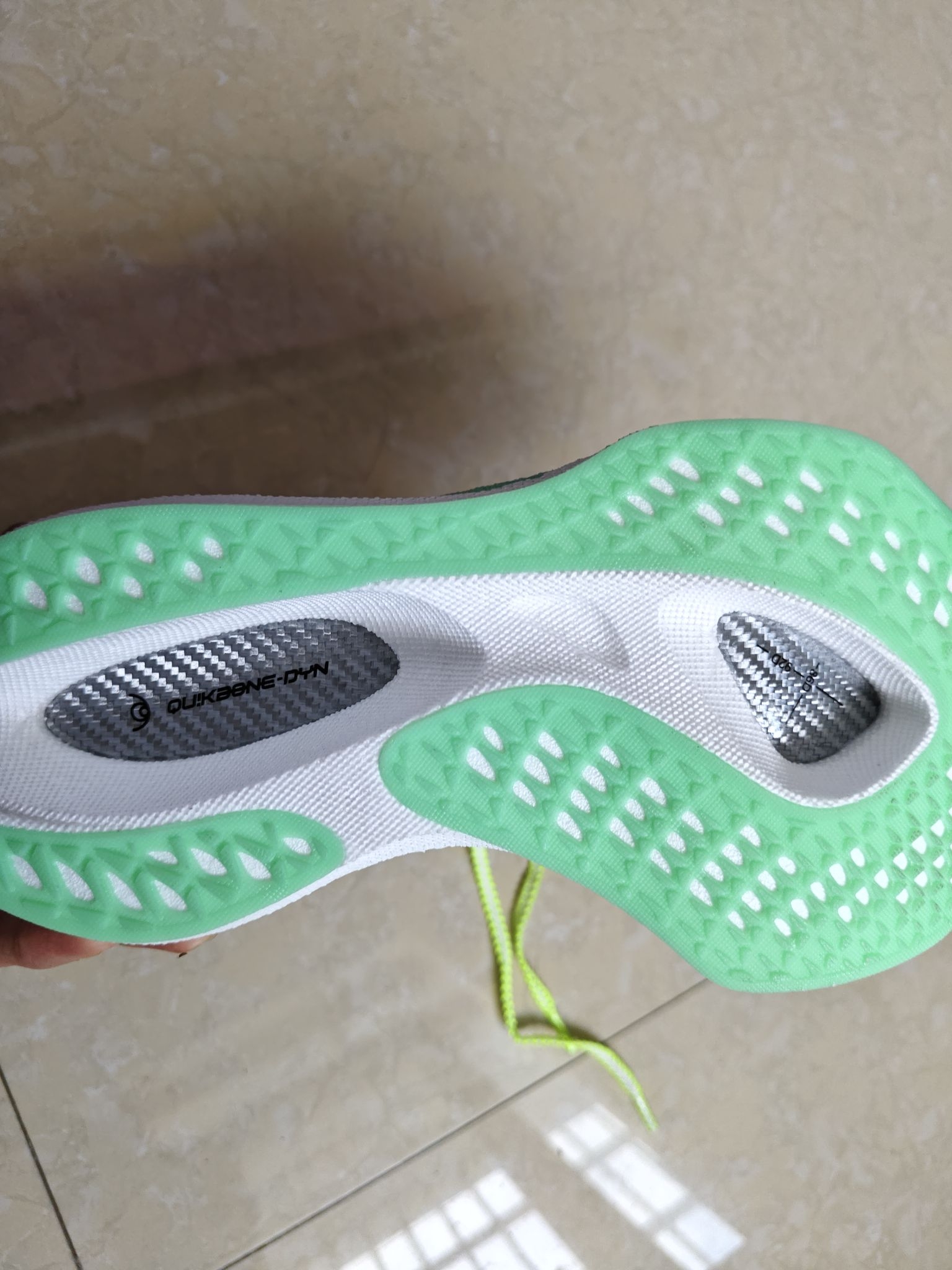 新入的这款竞速跑鞋太惊喜了青柠绿渐变鞋面清新又亮眼,网面材质透气感拉满,中底的回弹脚感超棒,跑起步来蹬地推进力超足,颜值和性能双在线,日常训练或比赛穿都合适