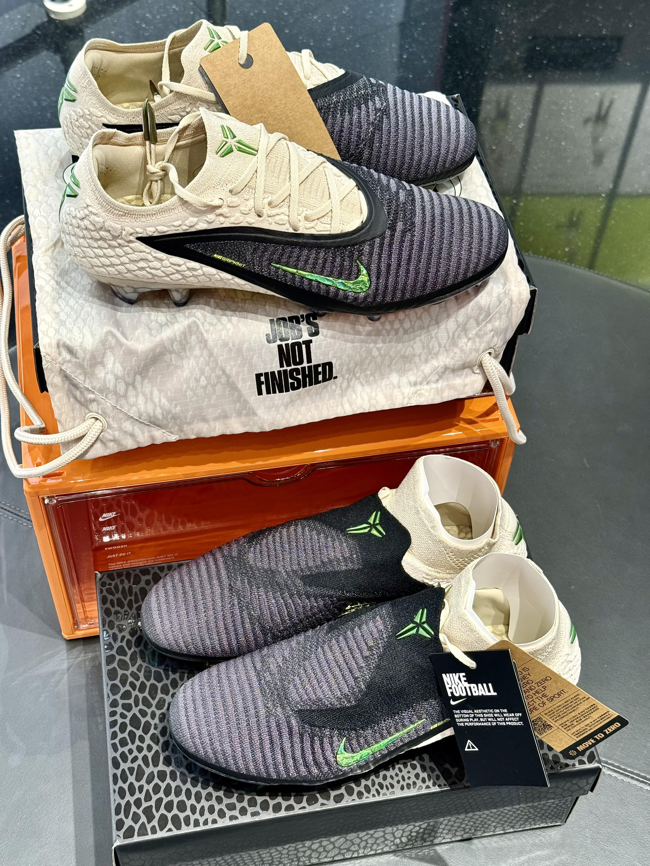 我真的没有想到,Kobe的剑鞘Logo会出现在一双足球鞋上,但Nike 它办到了。梦幻一般的联名就悄无声息的出现了。 缘起于Kobe 从小在意大利的生活经历,加上成名之后,科比曾不止一次的表示自己最爱的俱乐部是巴塞罗那,Kobe本人与足球的联系从未中断过。 这次的梦幻联动,Nike也是拿出了相当大的诚意,两双Phantom 6 暗煞 Elite版本,配置直接拉满。Gripknit 材料舒适度无敌,...