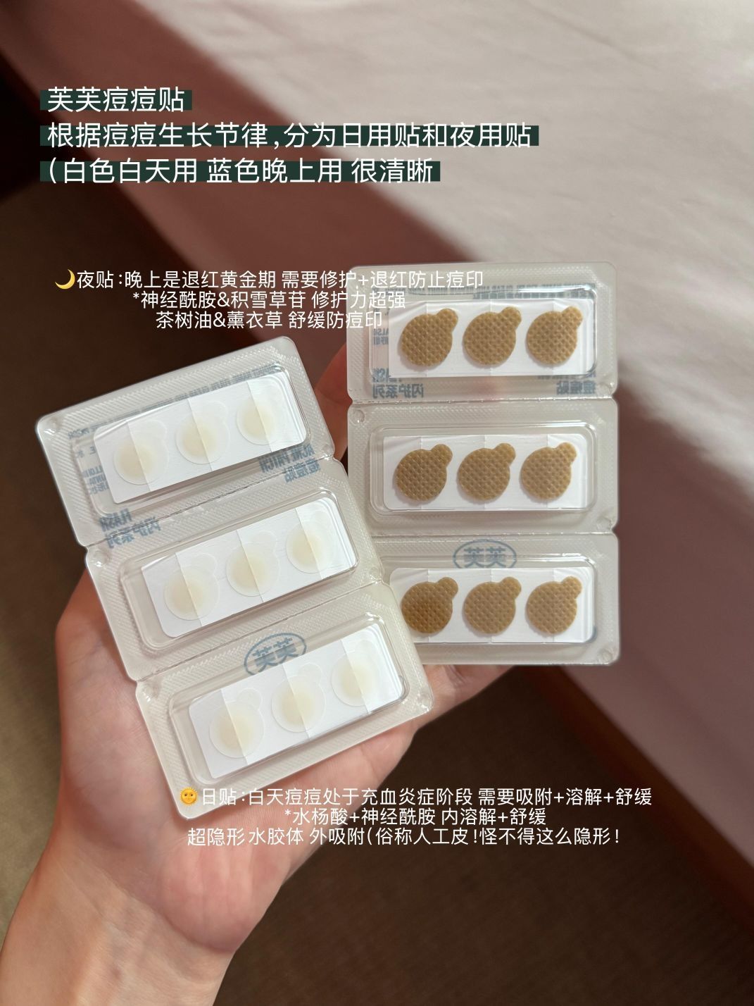 本篇笔记关联了芙芙 闪护系列清颜祛痘修护日夜痘痘贴 吸脓人工皮遮豆 夜间修护、芙芙 闪护系列清颜祛痘修护日夜痘痘贴 吸脓人工皮遮豆 日间舒缓等商品,为用户提供真实的使用体验和购买参考。