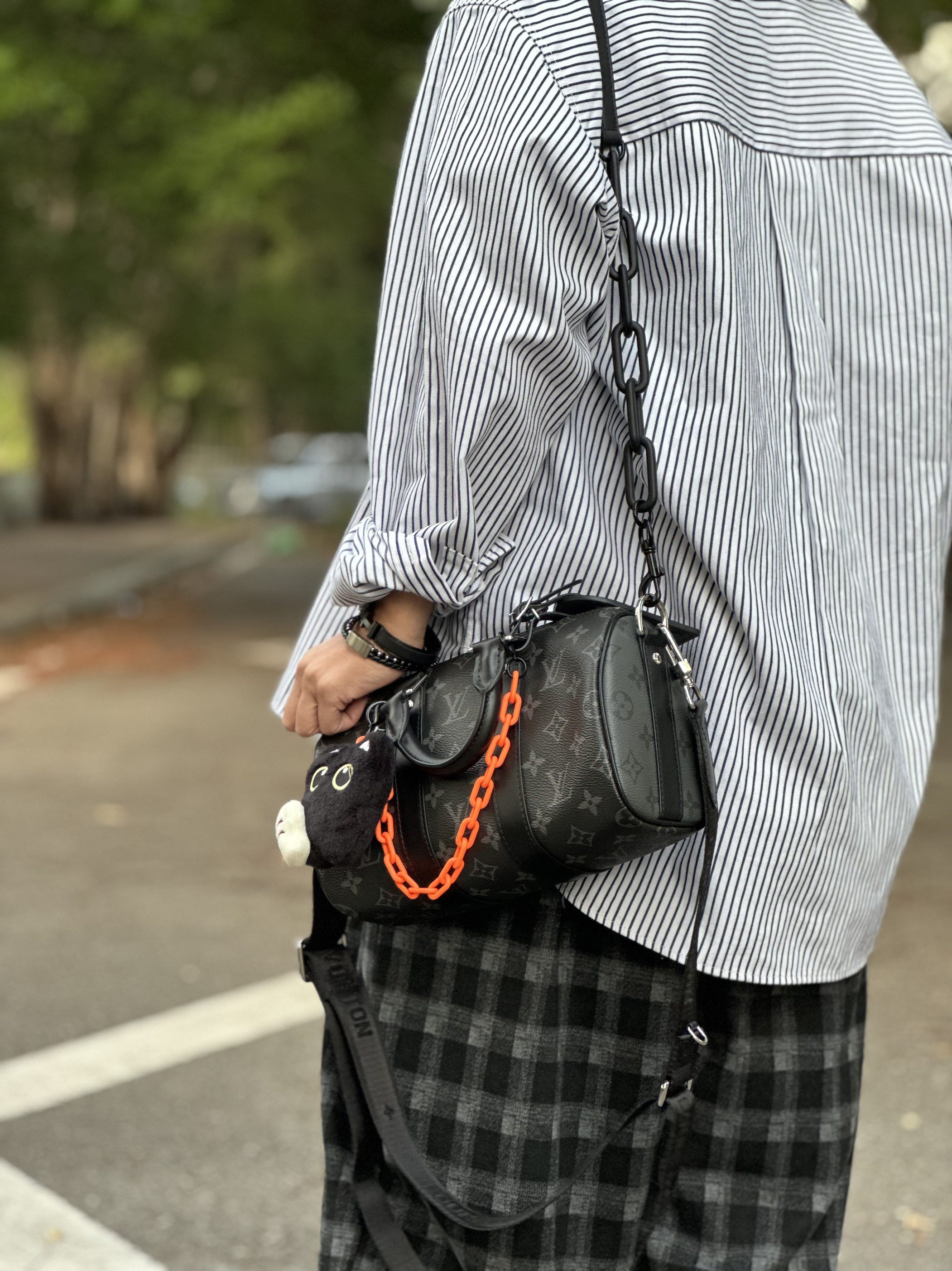 这个黑武士入手很久了!一直觉得有时候搭配衣服有点单调了!突发奇想要改造一下! 在网上选了很久,果然大家推荐的还是没错的! 改造后真的很抓眼球✌️ ▪️有一条链条改造的配件,跟我之前盒子包那个是一样的锁扣式!更时尚! ▪️亮点的地方就是搭配上这款橙色装饰链,这款装饰链质感不错!挂在包上真的很亮眼!背着出去让人一眼就看到你的包包👍 作为包控来说,包跟爱车一样,装饰一下心情都会好很多!给包包加点亮眼...