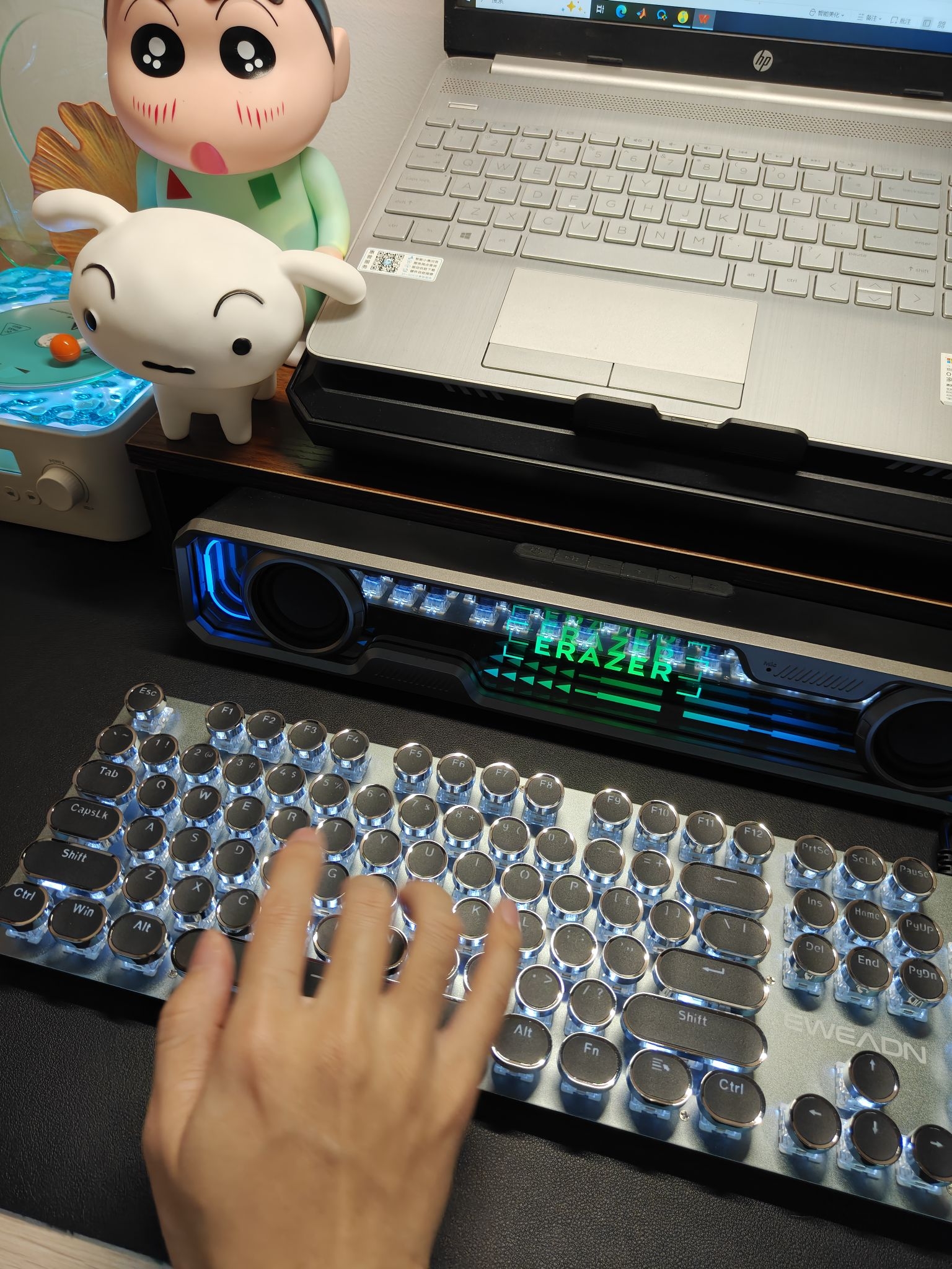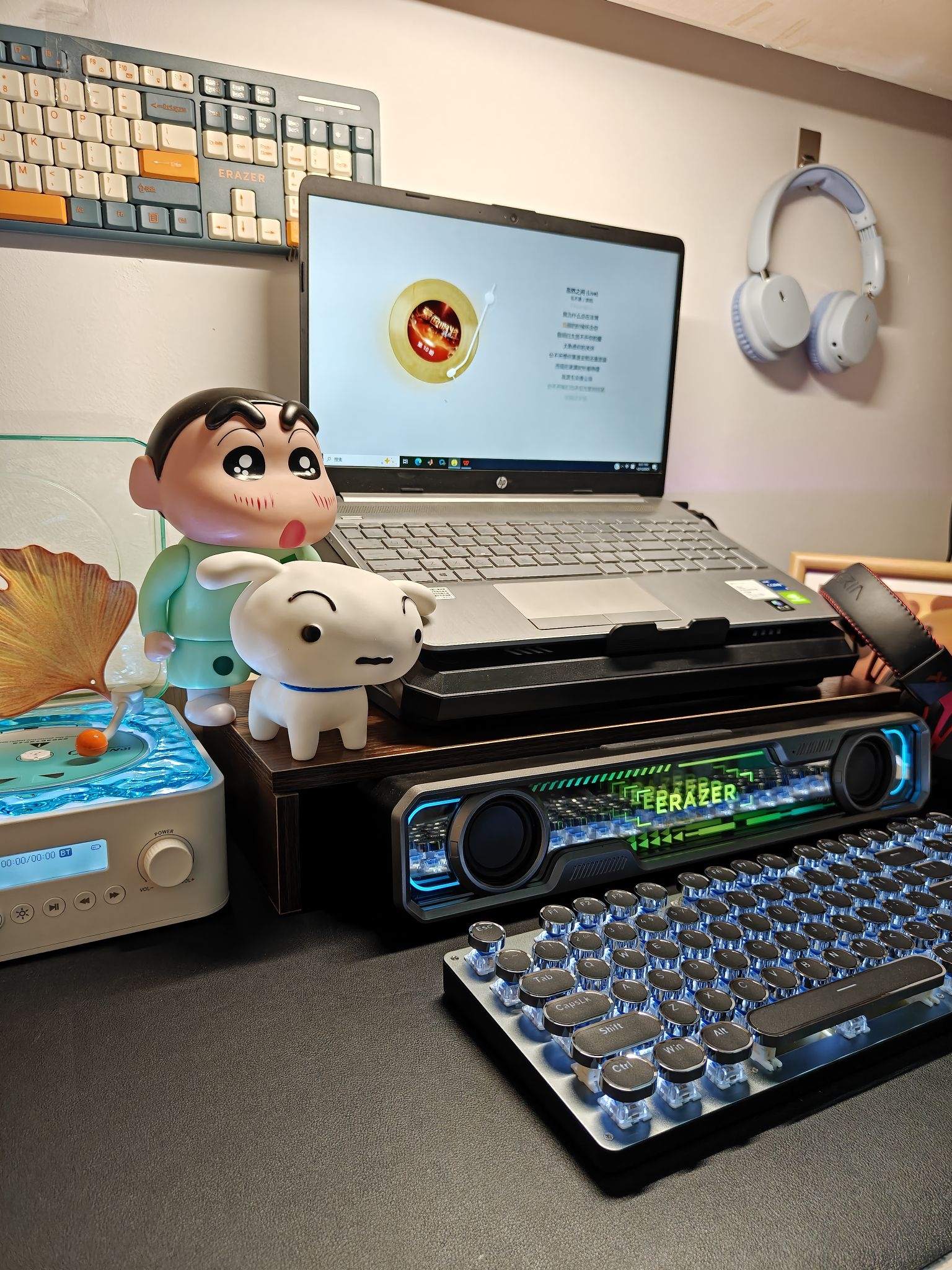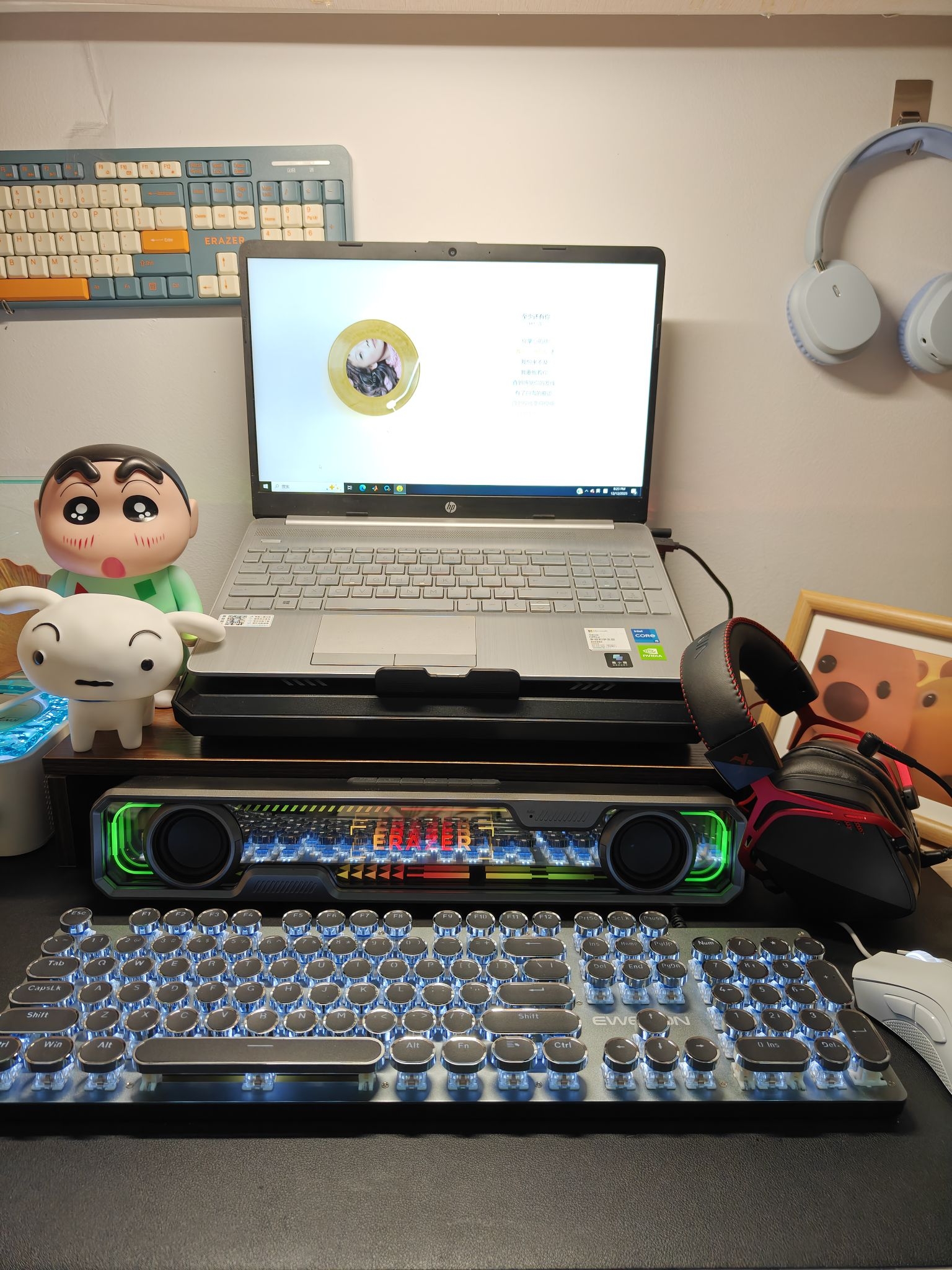 ⭐家人们,及时接近一个月的宿舍桌面改造,终于大功告成了🎉🎉,而且成本很低,喜欢的兄弟可以直接抄作业哦👇🏻👇🏻: 💻电脑:HP惠普 星Book 15 15.6英寸 (●使用了很久了,整体体验感很好,用过大学四年完全没问题😌😌) ⌨️键盘:前行者 TK100 (●敲击感很强烈,白色的灯效很好看💡,布灵布灵的感觉🌊,打字的手感很好) 🔇电竞音箱:联想Lenovo 异能者音箱 W108 (●音质确实...