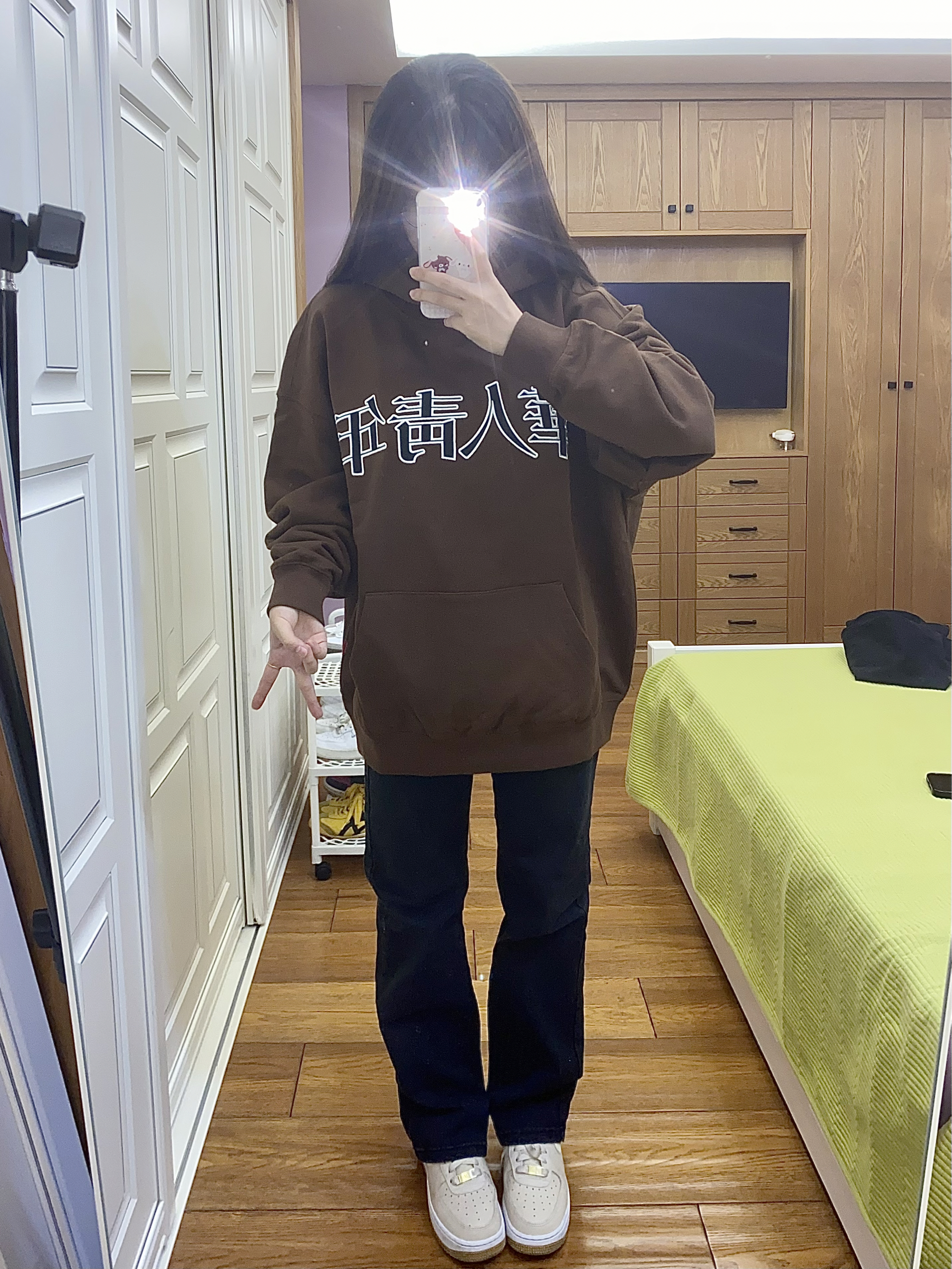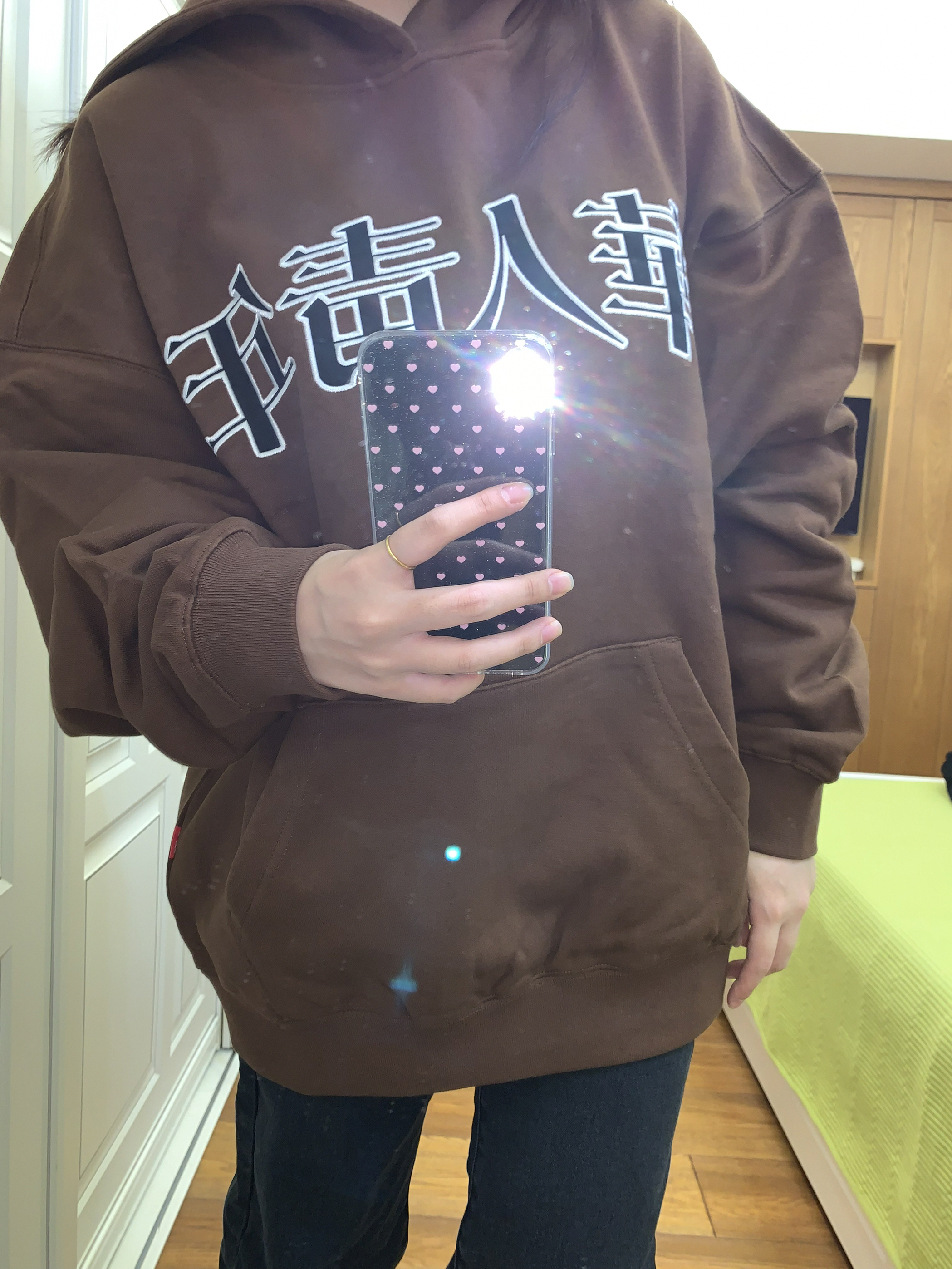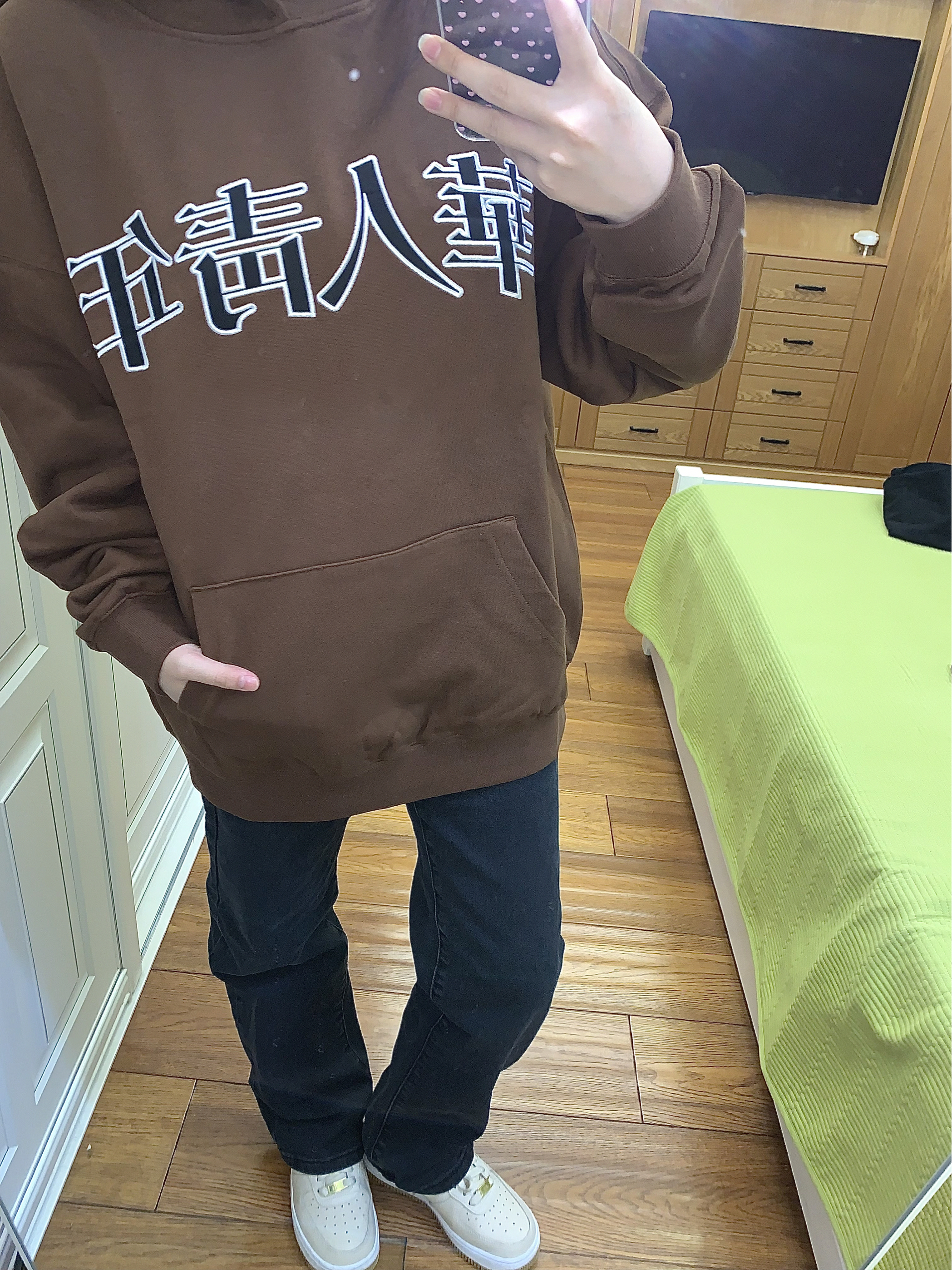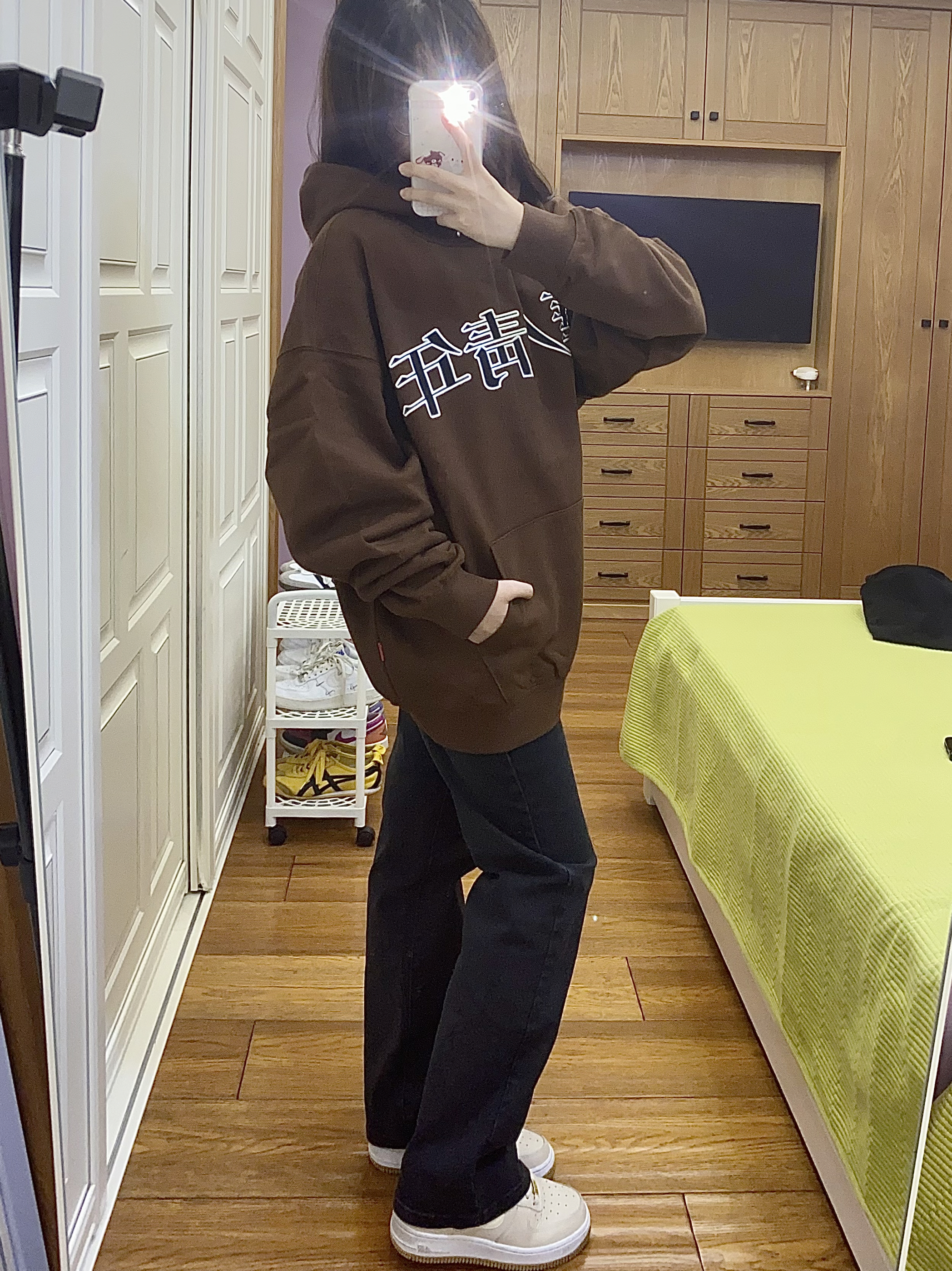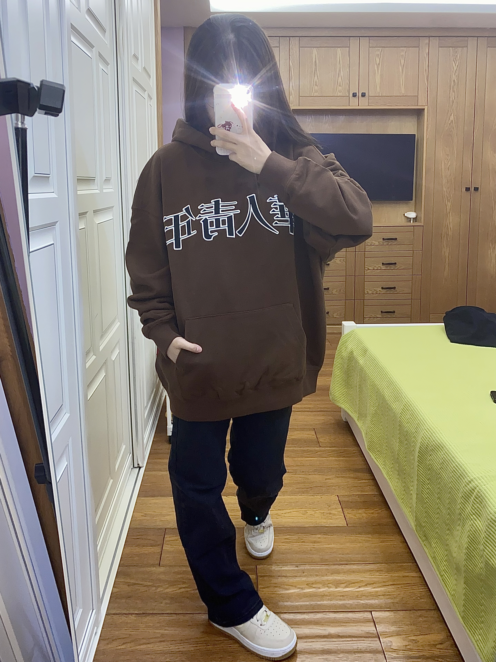 第一次穿棕色的卫衣 特别有秋冬季节的气息🍂 这个颜色穿起来颜色特别显白 胸前就是 华人青年 的黑色刺绣logo 整体显得很大气 也很百搭的款 面料版型都很不错 快为秋冬穿搭准备起来吧~
