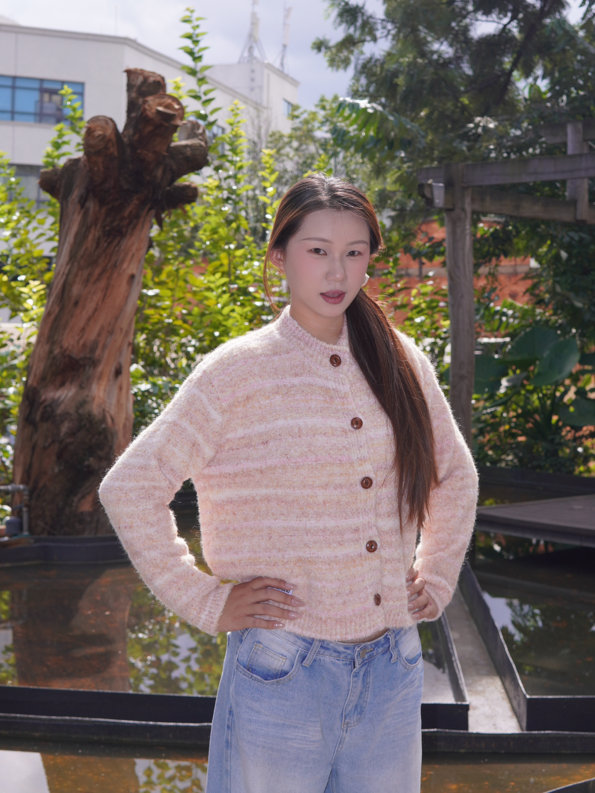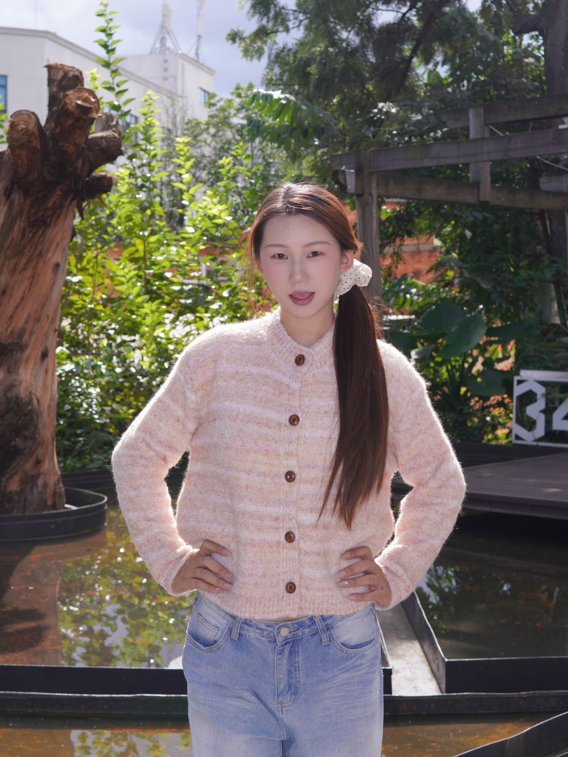 身高|体重:173/55 🧍♂️ 穿搭风格:韩系温柔气质风 👔 上衣:粉色条纹毛衣开衫 👖 下装:浅色直筒牛仔裤 👟 鞋子:nikev2k 🎒配饰:波点大肠发圈 整体是温柔又不甜腻的日常look 出门散步、约会都很适配~