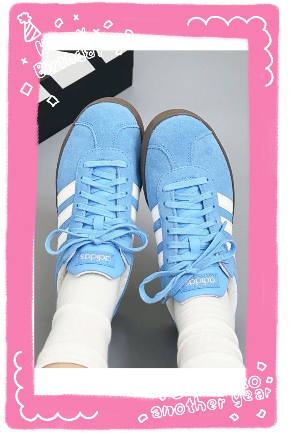 终于入手了这双adidas VL COURT 2.0蓝白德训鞋,拆箱的第一眼就被清新的蓝白配色戳中了💙!作为男女同款的低帮德训鞋,它的版型超正,鞋型偏修长,上脚不会显得脚臃肿。试穿一周下来,先说说优点:脚感是真的软弹,鞋垫的缓冲性对打工人通勤太友好了,每天走万步也不磨脚;橡胶鞋底抓地力强还耐磨,踩在水泥地、瓷砖上都不打滑;蓝白色调巨百搭,搭牛仔裤、运动裤甚至半身裙都毫无违和感,秋冬配浅色袜子还能穿...