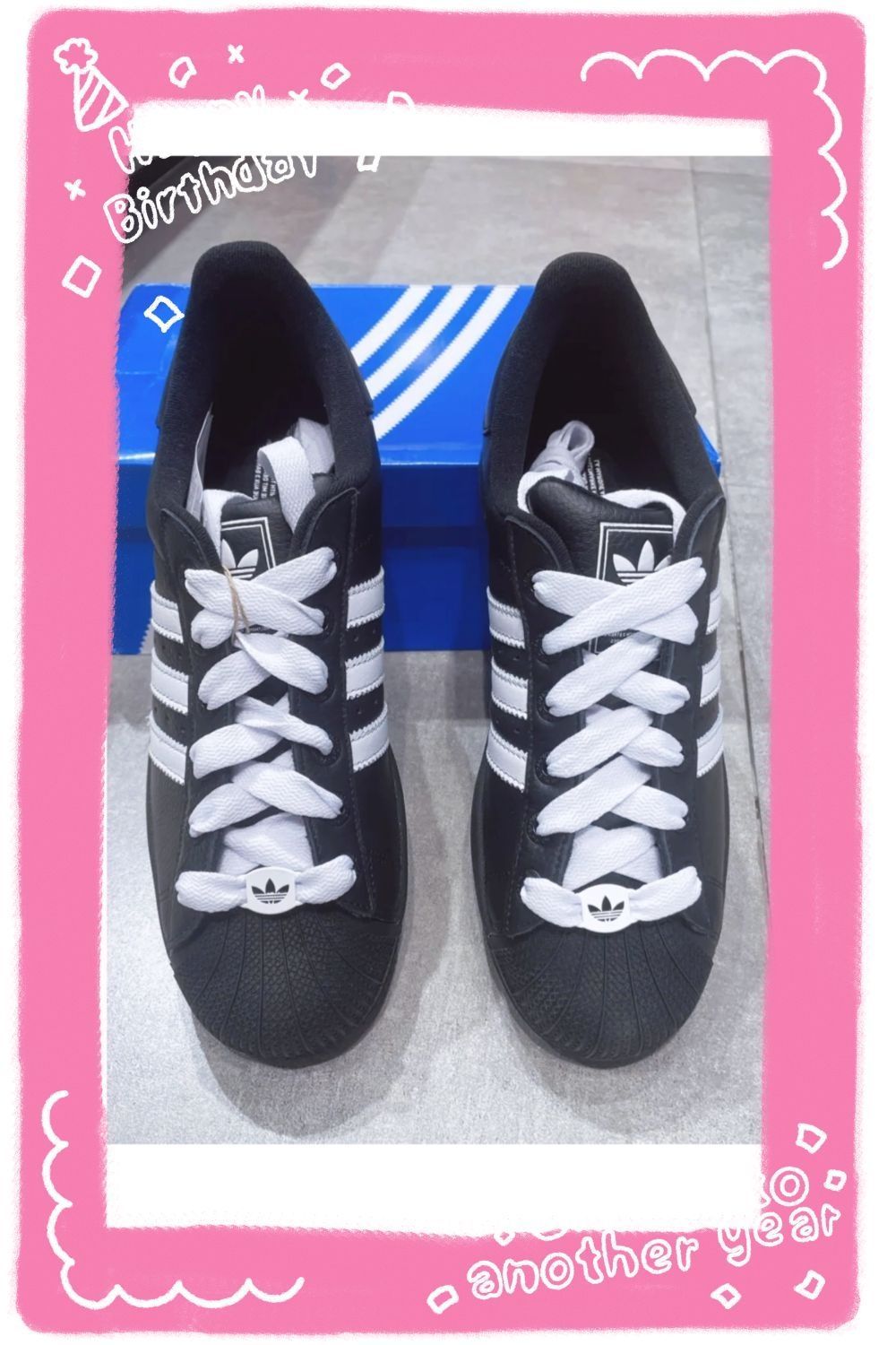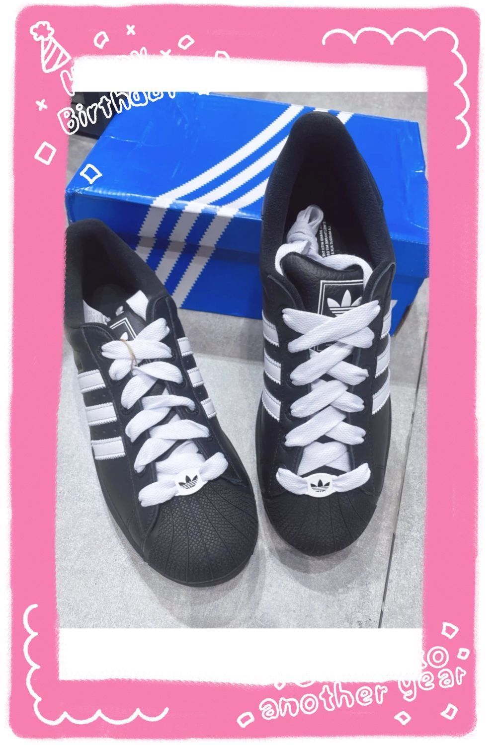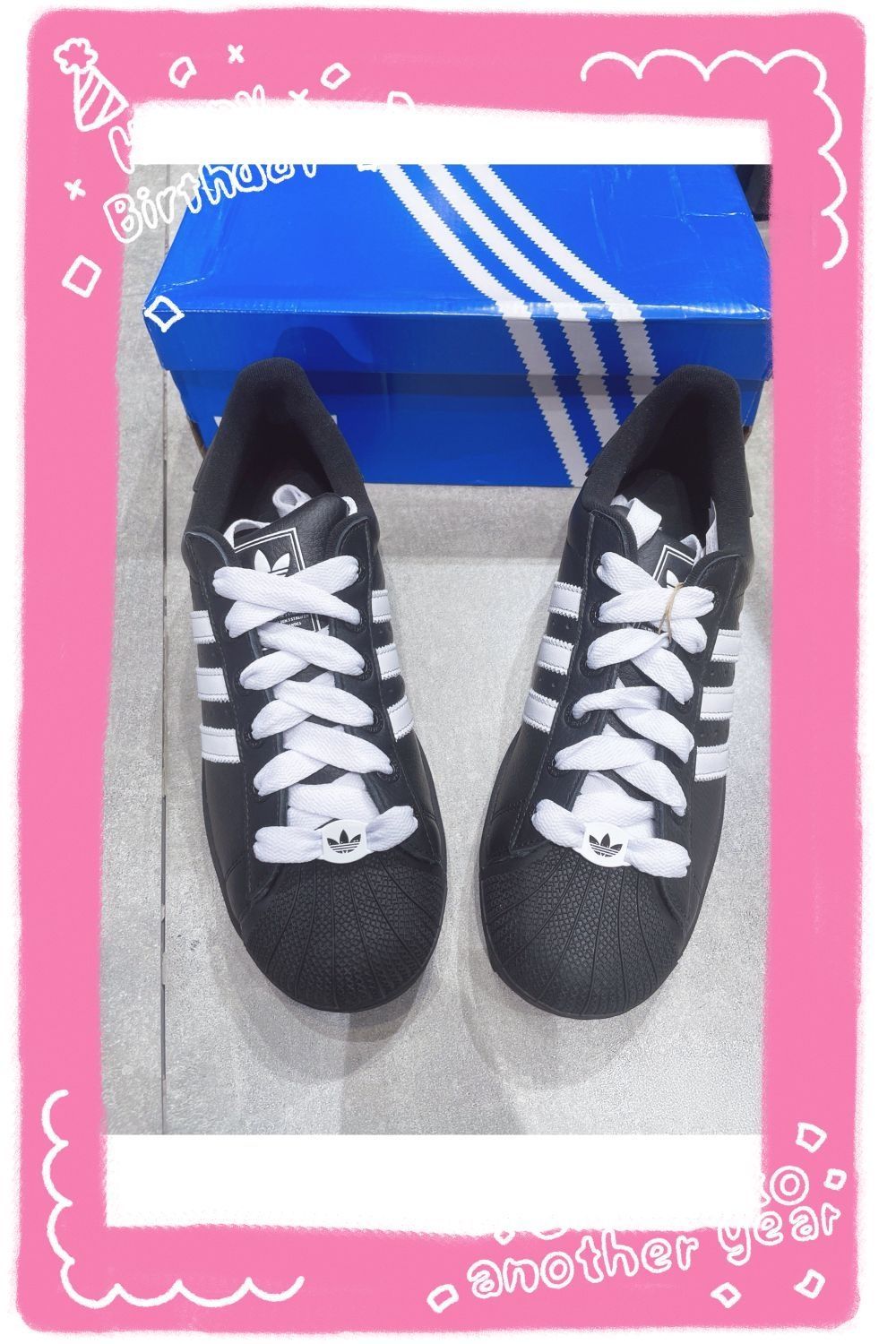 终于把心心念念的adidas originals Superstar 2黑武士贝壳头收入囊中啦🖤!拆箱的瞬间就被全黑鞋身+白色鞋带的撞色设计惊艳到,经典的贝壳头轮廓搭配三条杠元素,复古氛围感直接拉满~ 先和大家聊聊真实体验👇: ✅优点:鞋身是耐磨皮革材质,日常沾灰擦一擦就干净,打理超省心;标志性的贝壳头能很好保护脚趾,鞋底的橡胶缓震层走路很舒服,通勤逛街穿4、5小时都不磨脚;黑白色调巨百搭,搭...