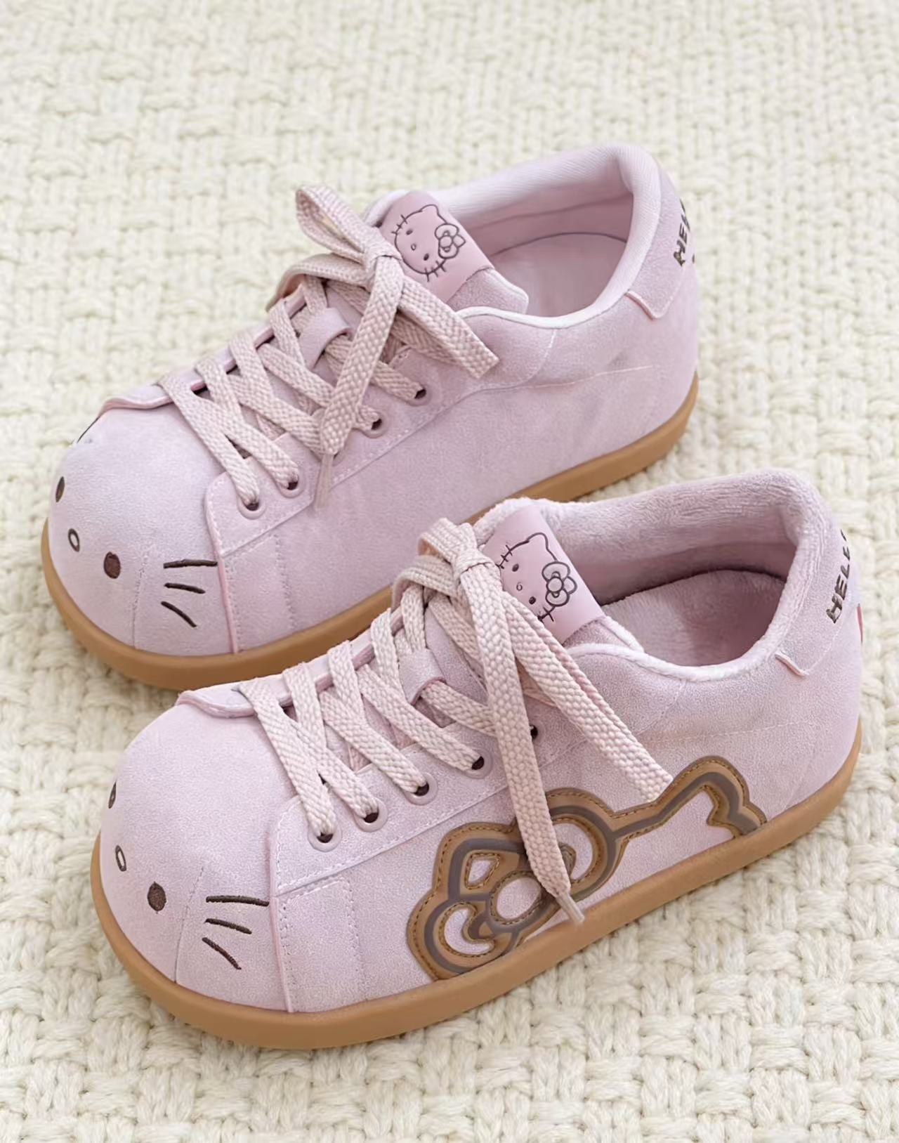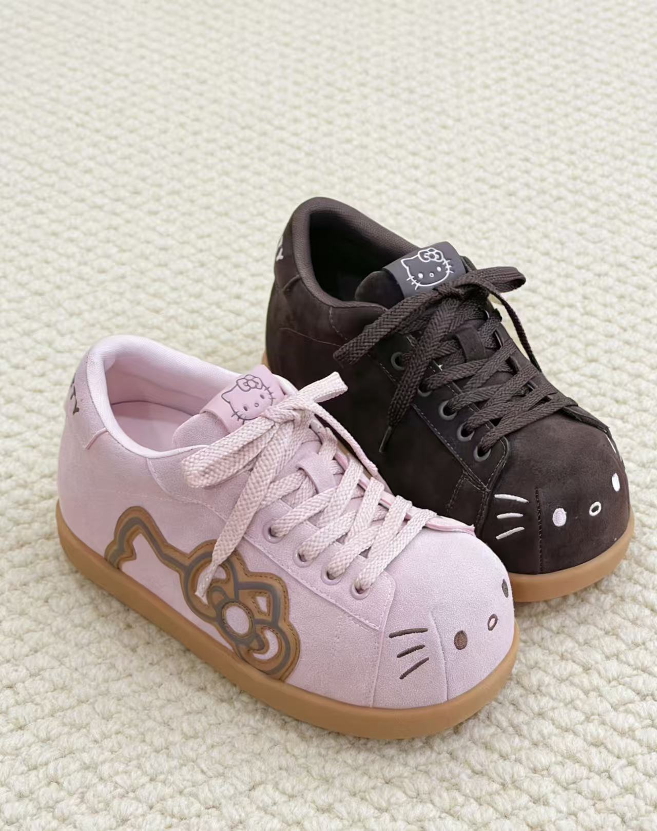 谁懂啊!这双融合了Hello Kitty元素的粉棕麂皮鞋简直是甜妹本命单品!柔和的粉棕配色自带秋冬氛围感,细腻的麂皮材质触感软糯又显质感,鞋身点缀的Hello Kitty经典元素瞬间戳中少女心。不管是搭配百褶裙打造学院甜妹风,还是配工装裤解锁甜酷混搭,它都能轻松hold住。而且鞋型贴合脚型,久走也不会累,颜值与舒适度双在线,秋冬鞋柜里必须有它的一席之地!