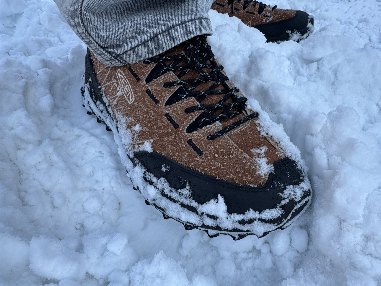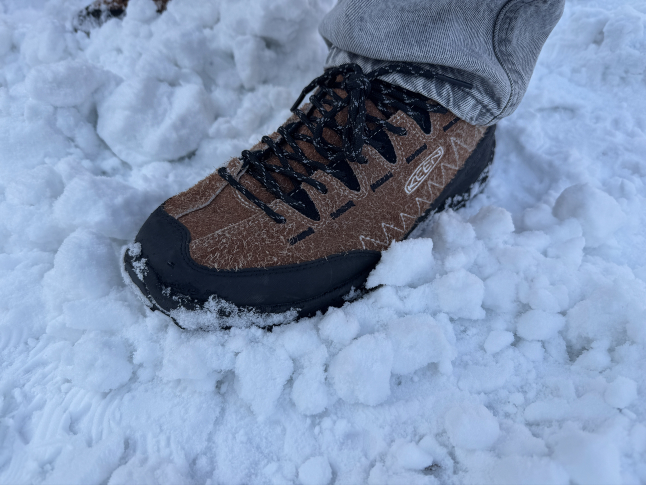 防滑性能一流,保暖性超级好!没想到这双Keen jasper zionic 这么能打!棕色搭配浅灰色牛仔裤,太好看了! 鞋子脚感很好,增高效果一流,踩起来也是相当厚实!