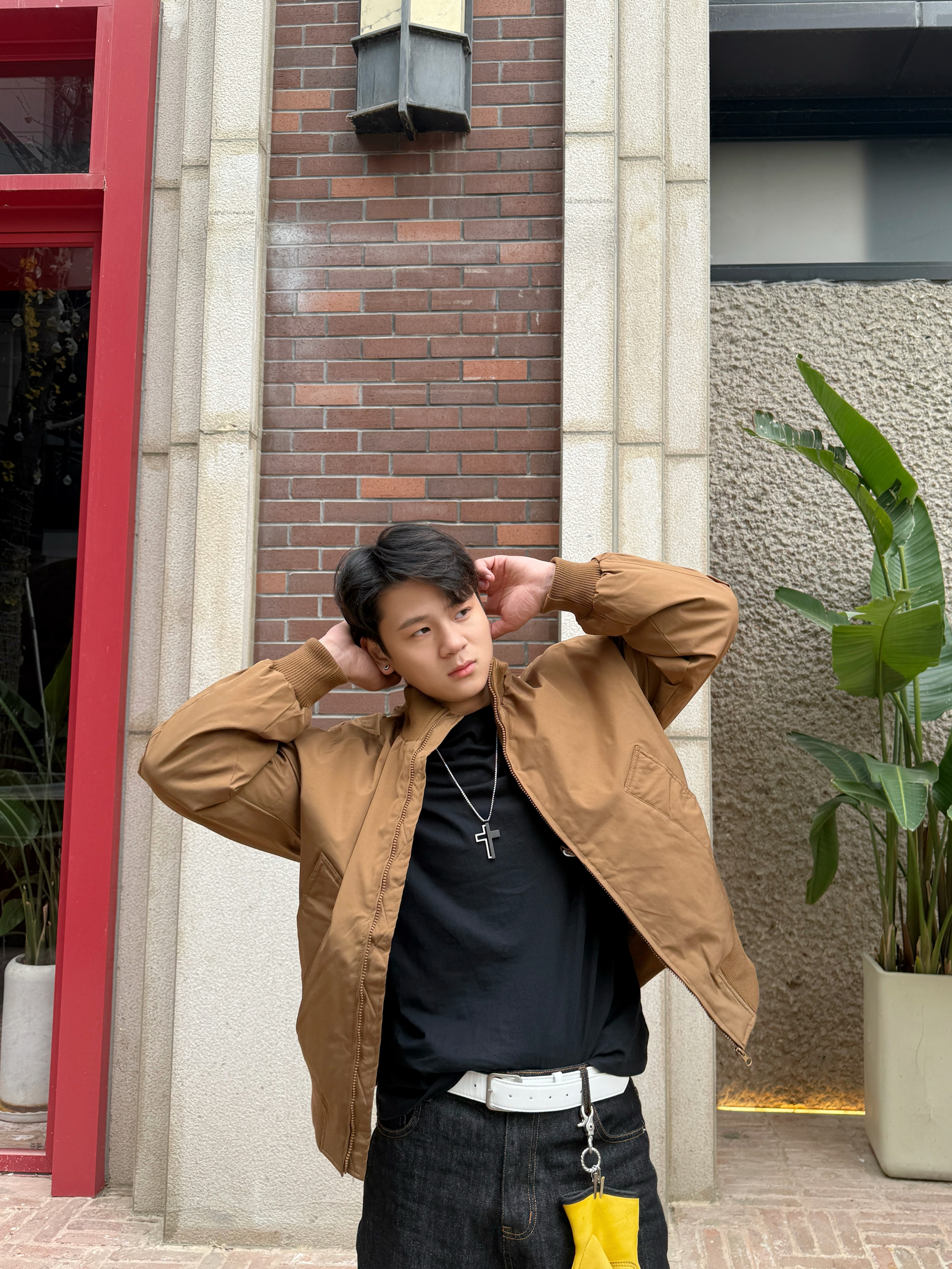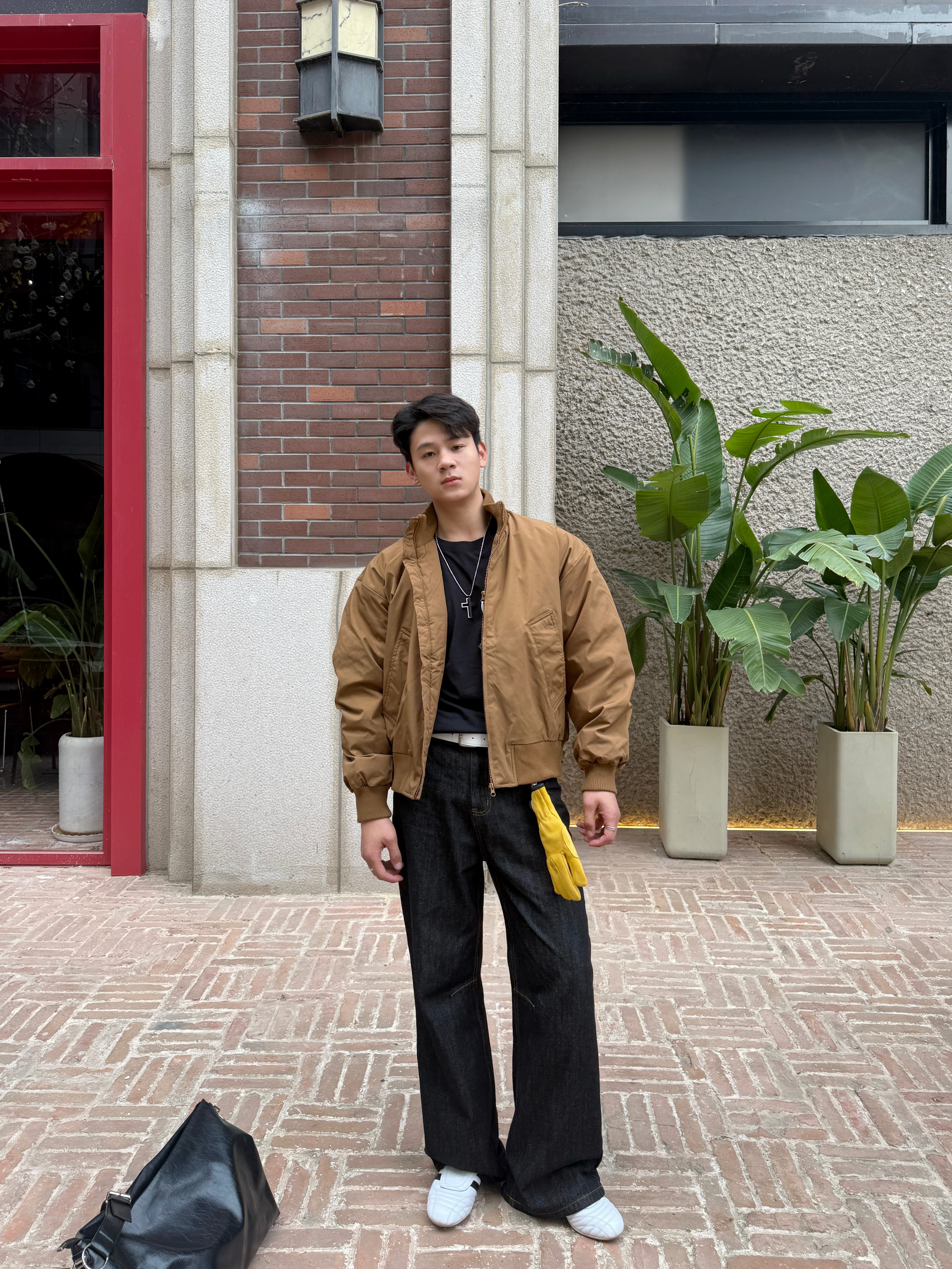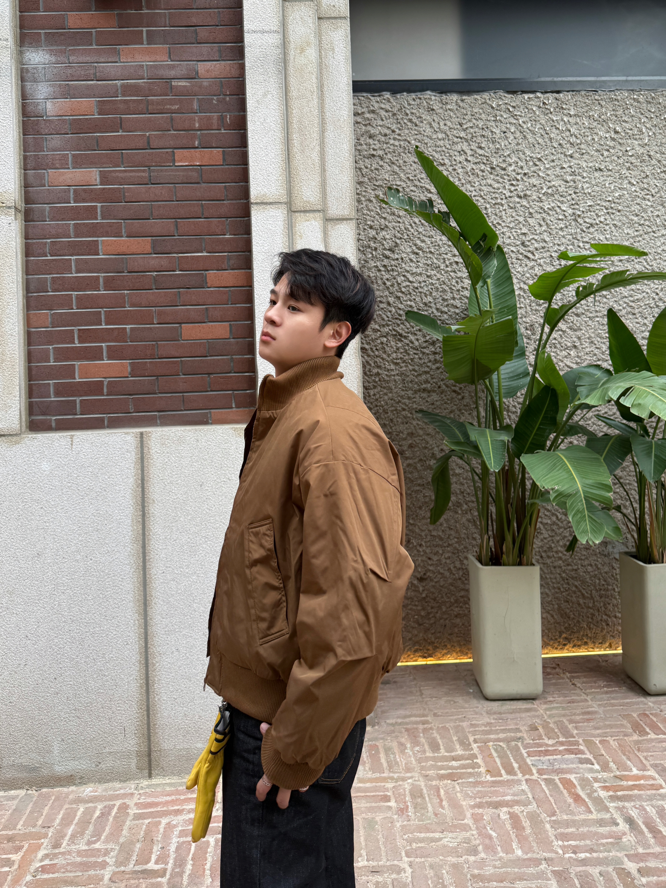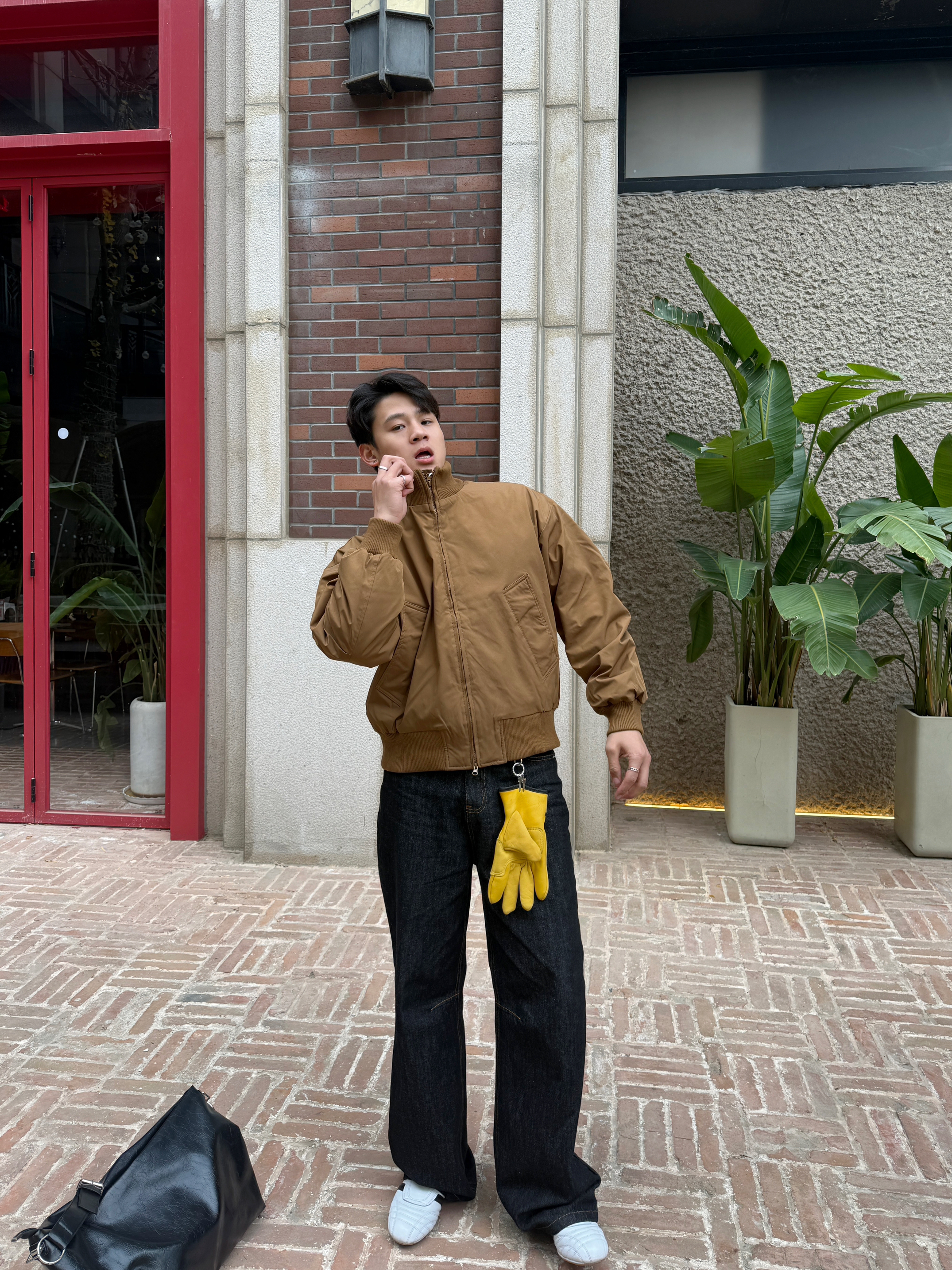 果然飞行夹克是我的必备单品 今日份ootd 上衣我选择一件立领加绒飞行夹克 立领双拉链穿起来实用,上身还显精神 正肩廓形的版型不用担心穿不起来 加绒加厚,冬天穿起来温度风度都在线 裤子我选择一件黑色直筒牛仔裤 棕色上衣与黑色裤子搭配,色差感和谐 百搭的小白鞋是我的选择 整体就是美式复古风多一点~ 这样一身下来简单松弛又随性,适合日常通勤逛街 今天的穿搭你get✅了吗?