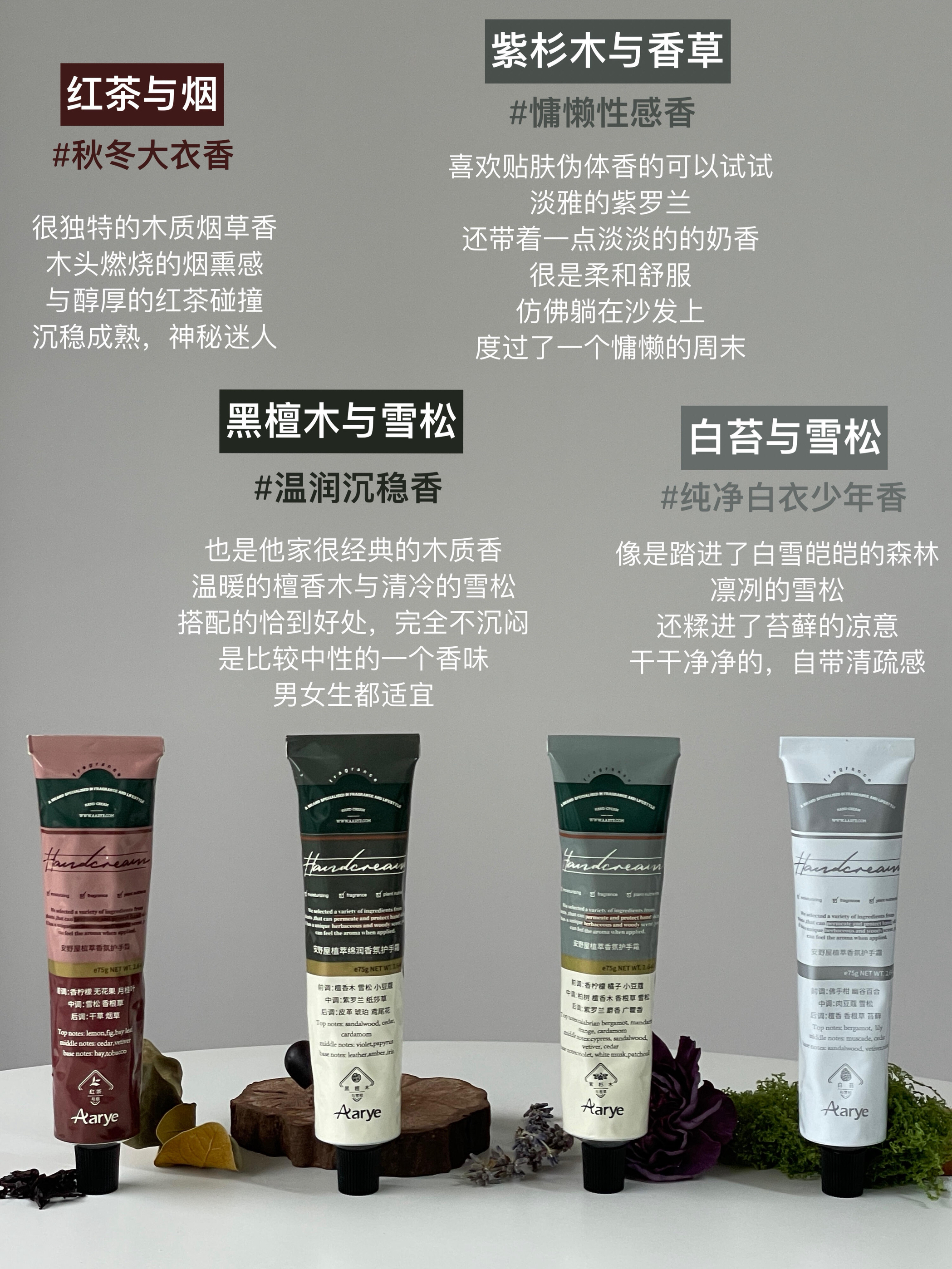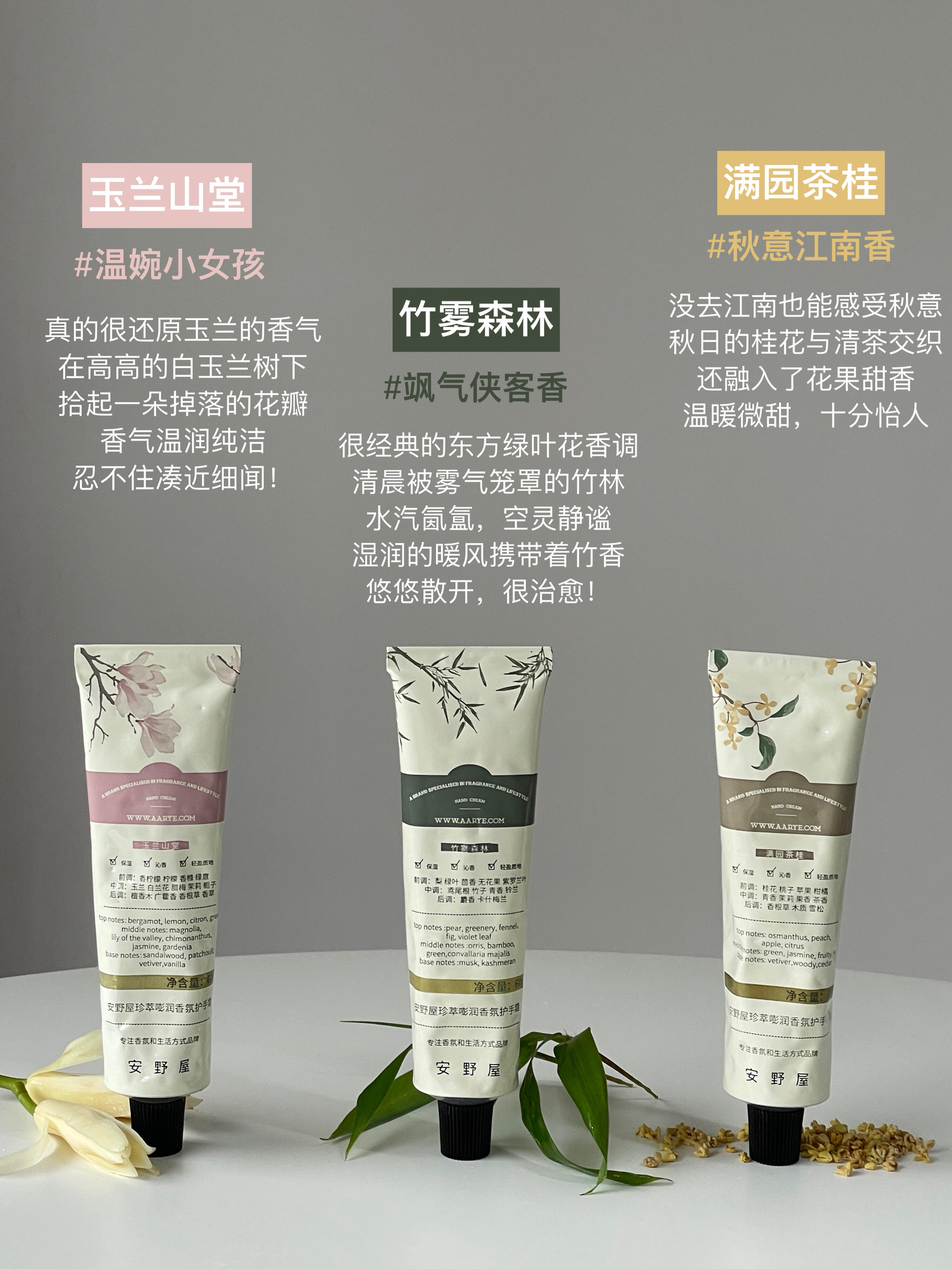本篇笔记关联了安野屋 馥润香氛花开护手霜 抗皱保湿淡纹便携 倚梦睡莲、安野屋 馥润香氛花开护手霜 抗皱保湿淡纹便携 茉海香山、安野屋 铝管经典植萃香氛护手霜 烟酰胺亮白水润保湿持久留香 无花果与叶等商品,为用户提供真实的使用体验和购买参考。