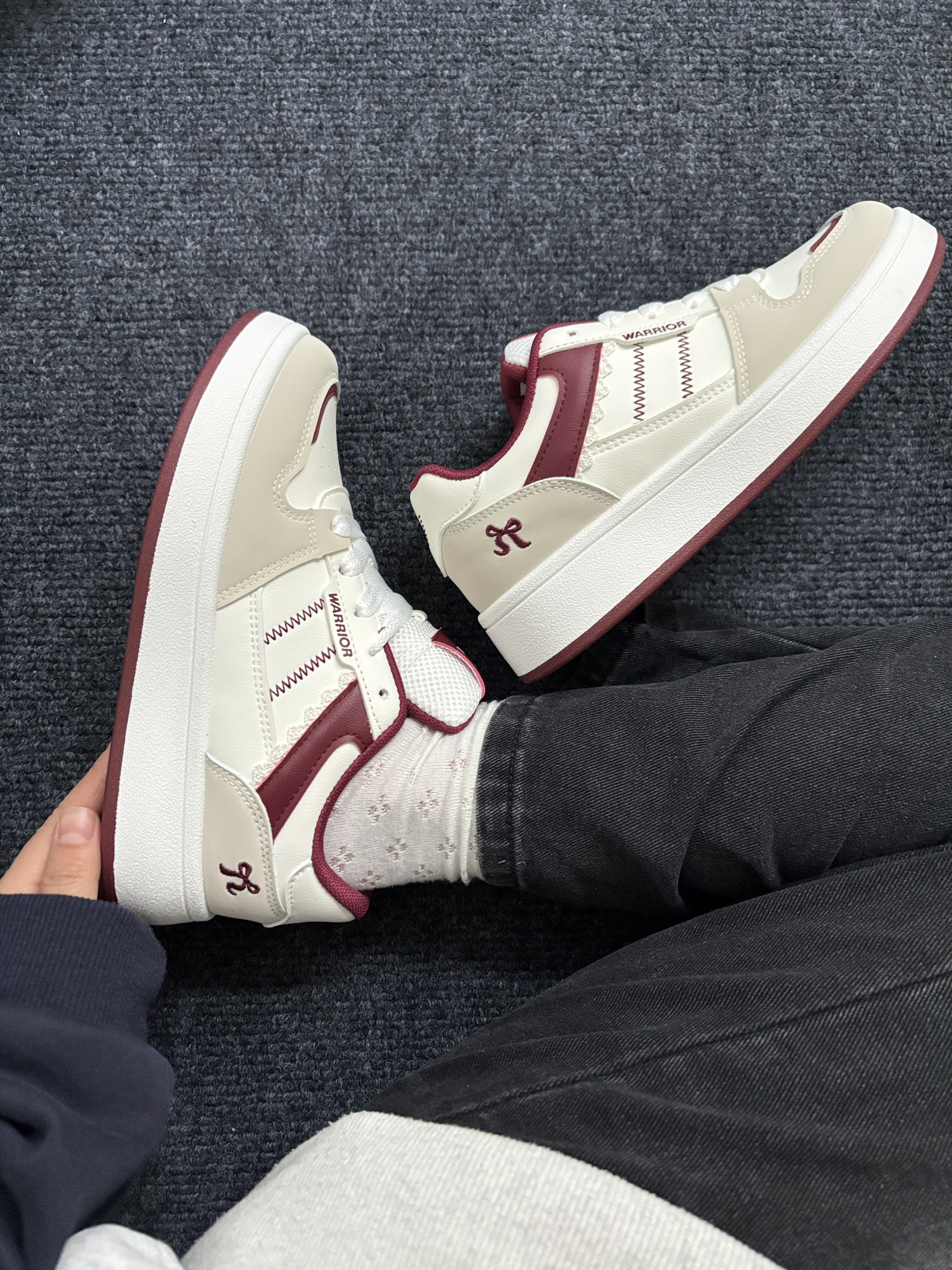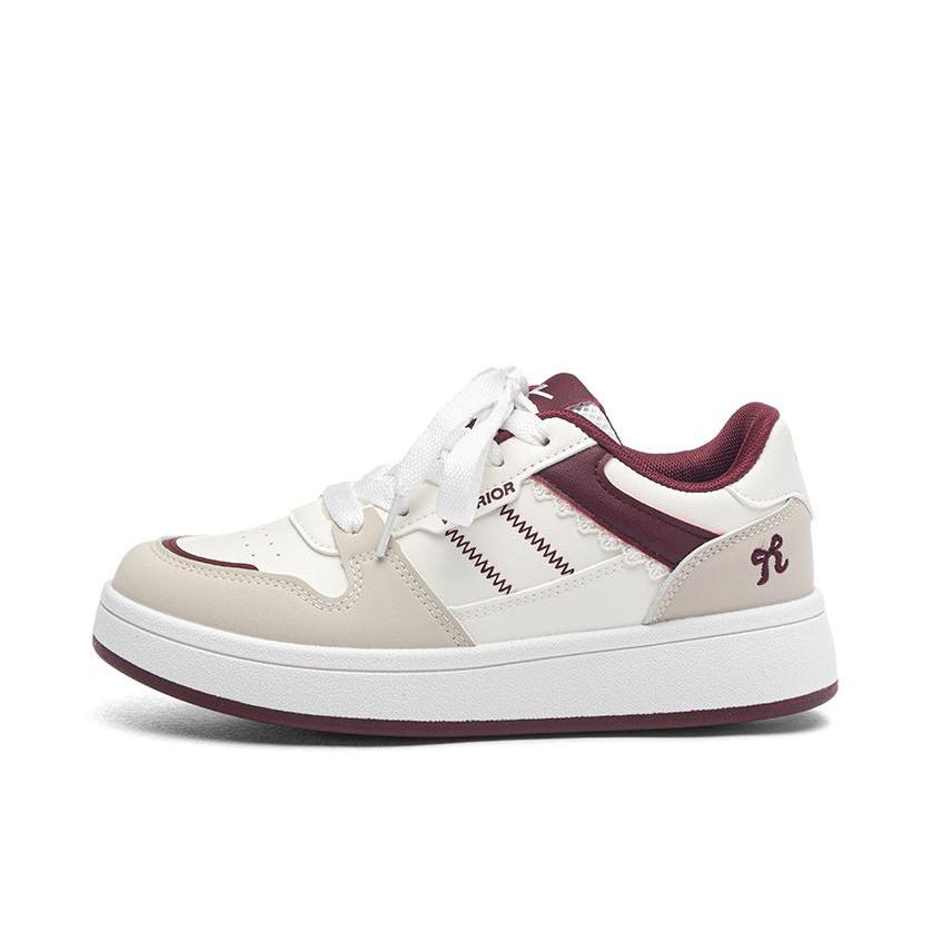 今天和大家分享一双吼吼看的小板鞋Q 它这个米白+酒红配色简约又复古风满满! 给人一种眼前一亮的赶脚哎! 低帮的版型好看又百搭~ 合成革的鞋面很柔软网眼设计透气不臭脚 鞋底纹路清晰防滑耐磨上脚也舒服 随便搭配各种风格的衣服都好看🫶