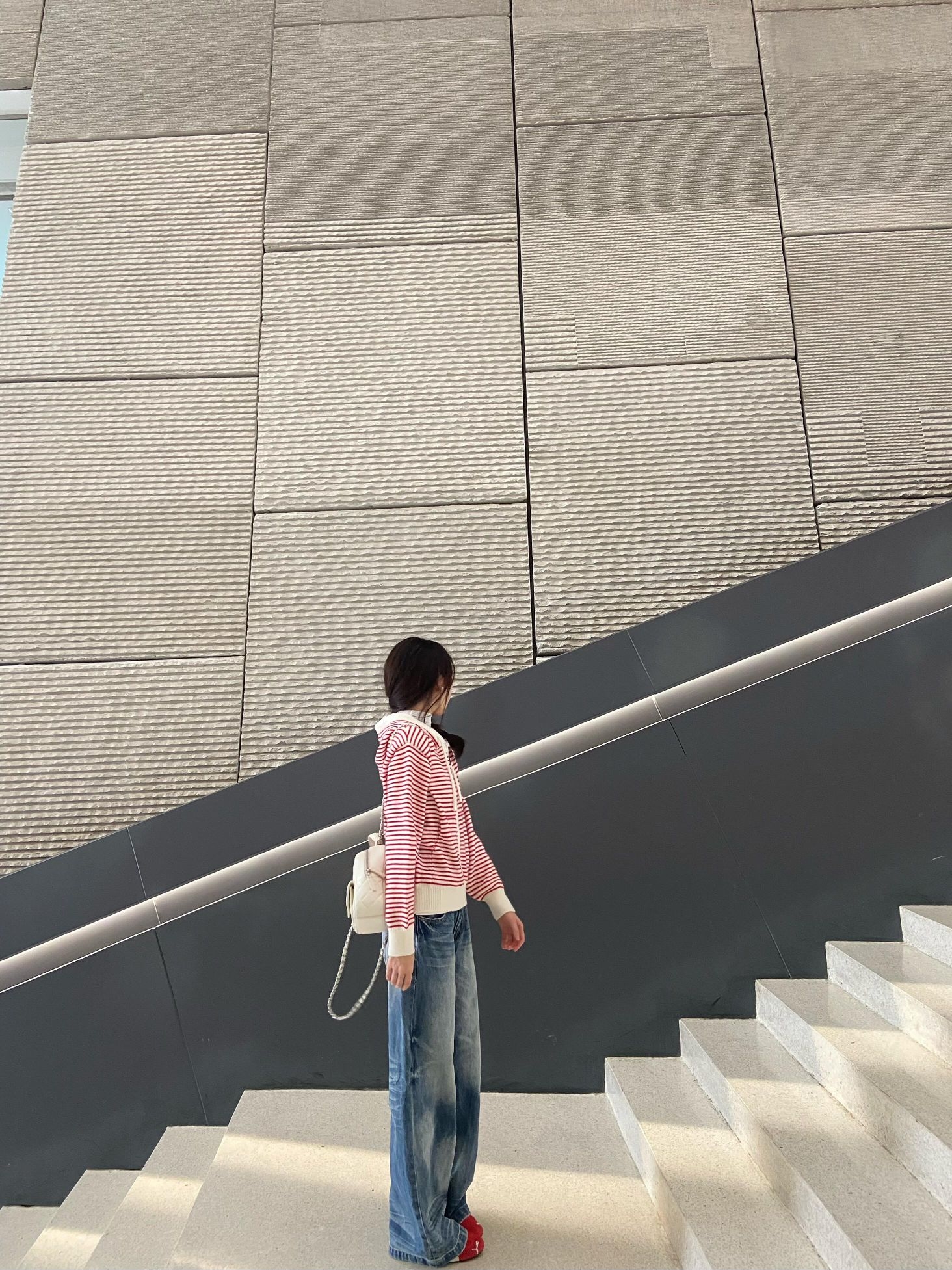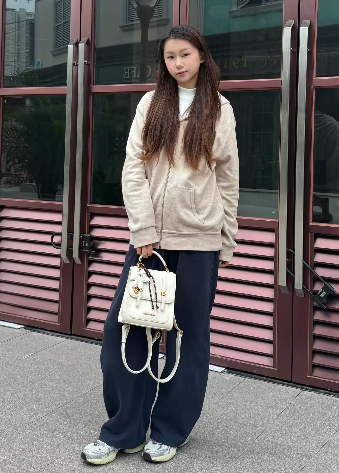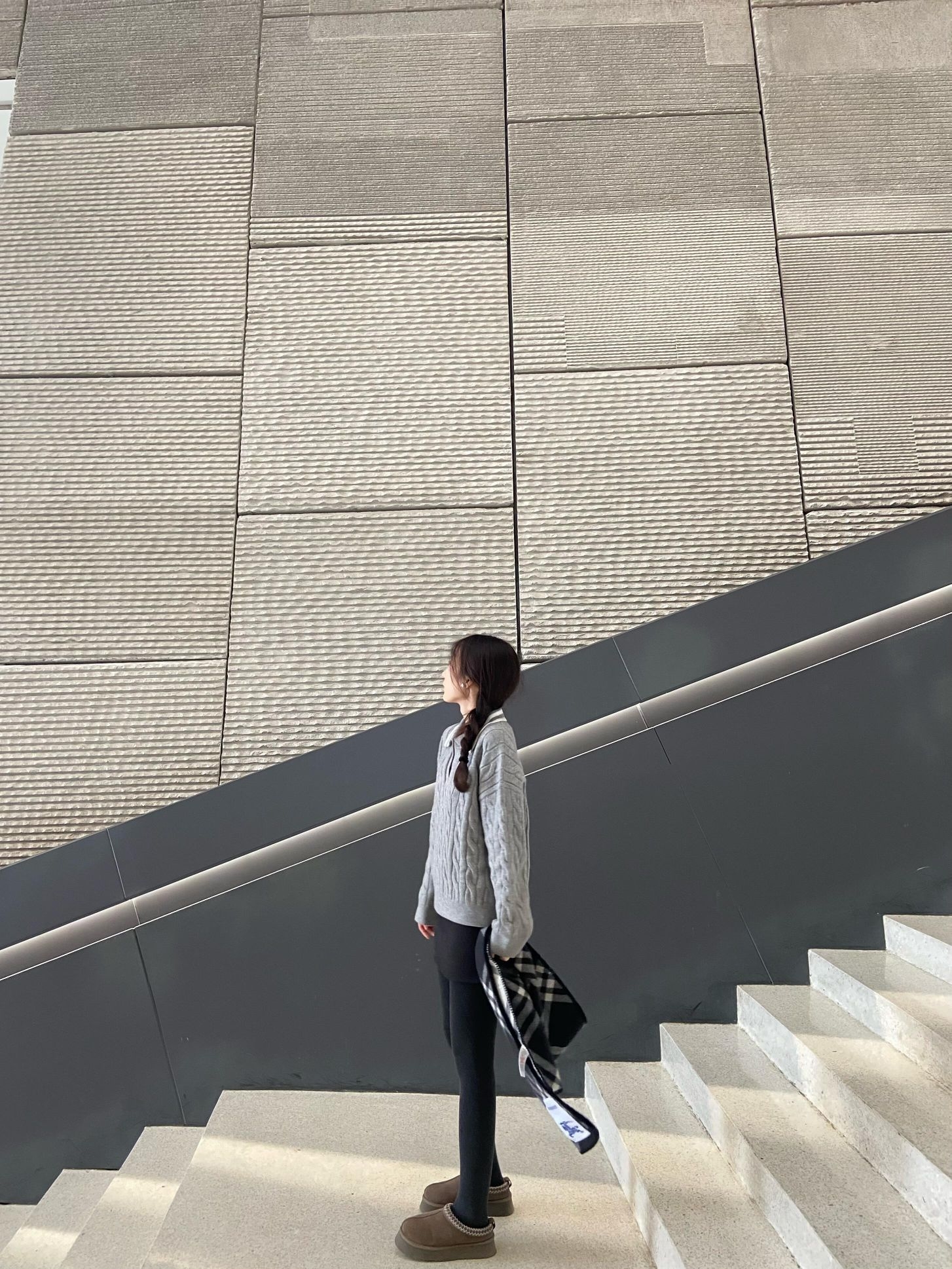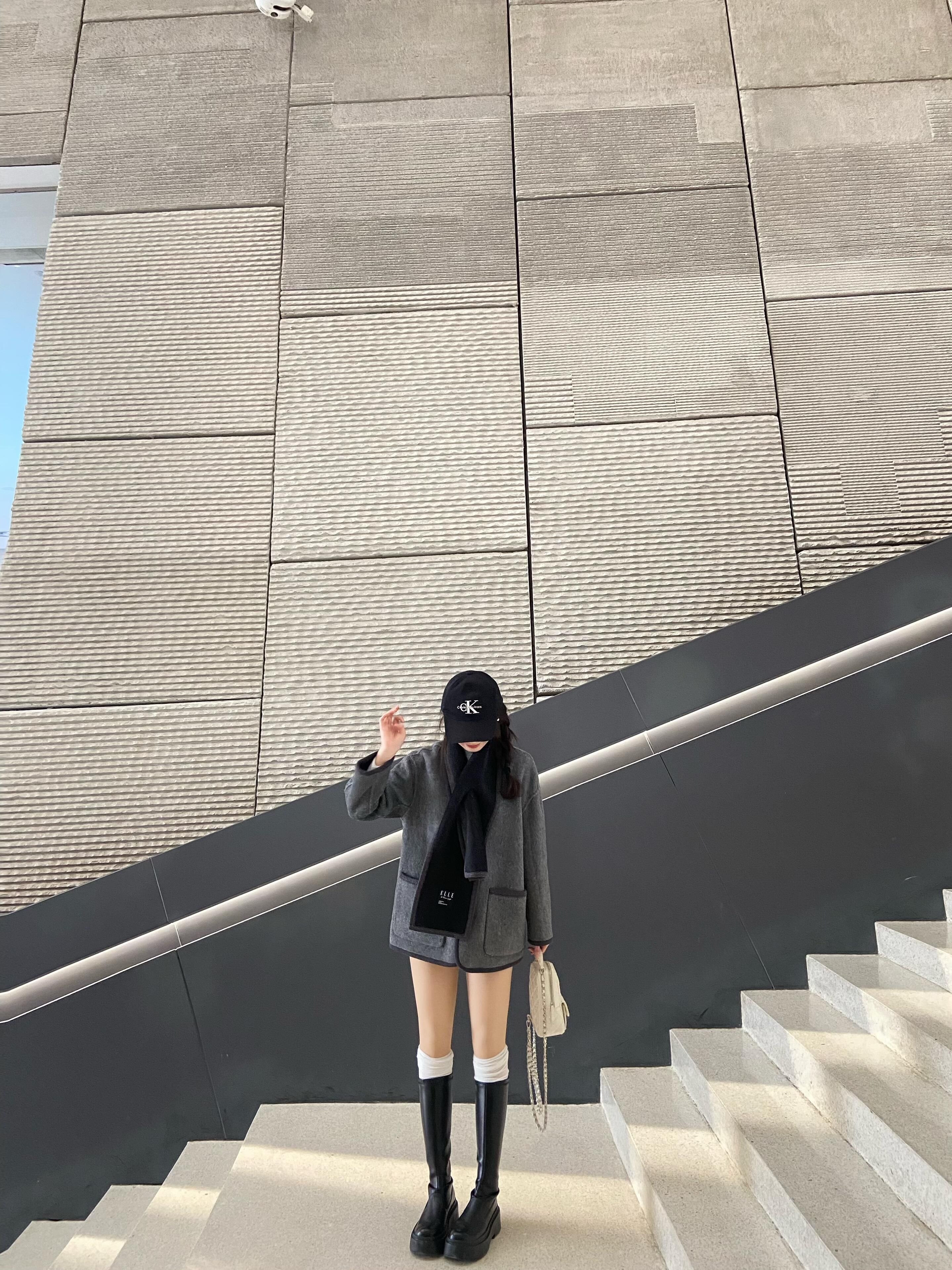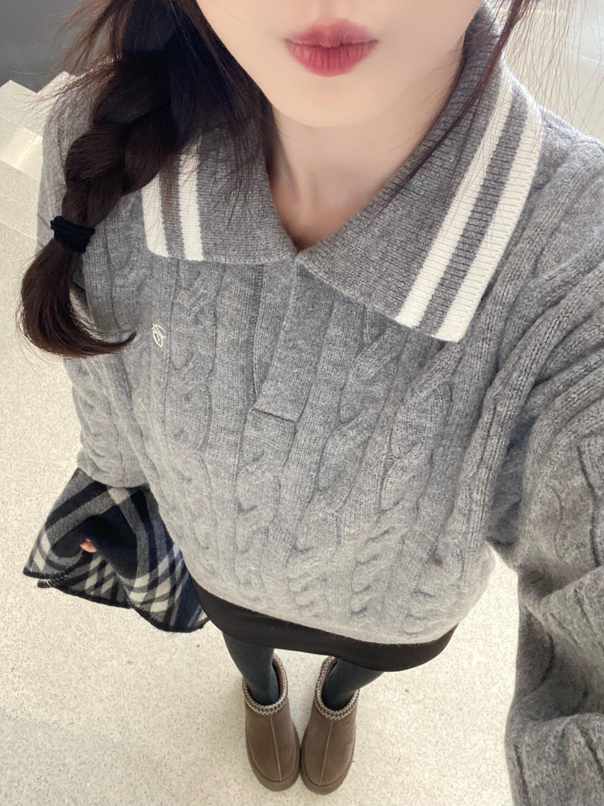 今天穿黑色长款羽绒服 长款羽绒服真的是冬天的必需品! 搭配灰色毛衣好韩捏 脱掉外套也是好看的一套~
