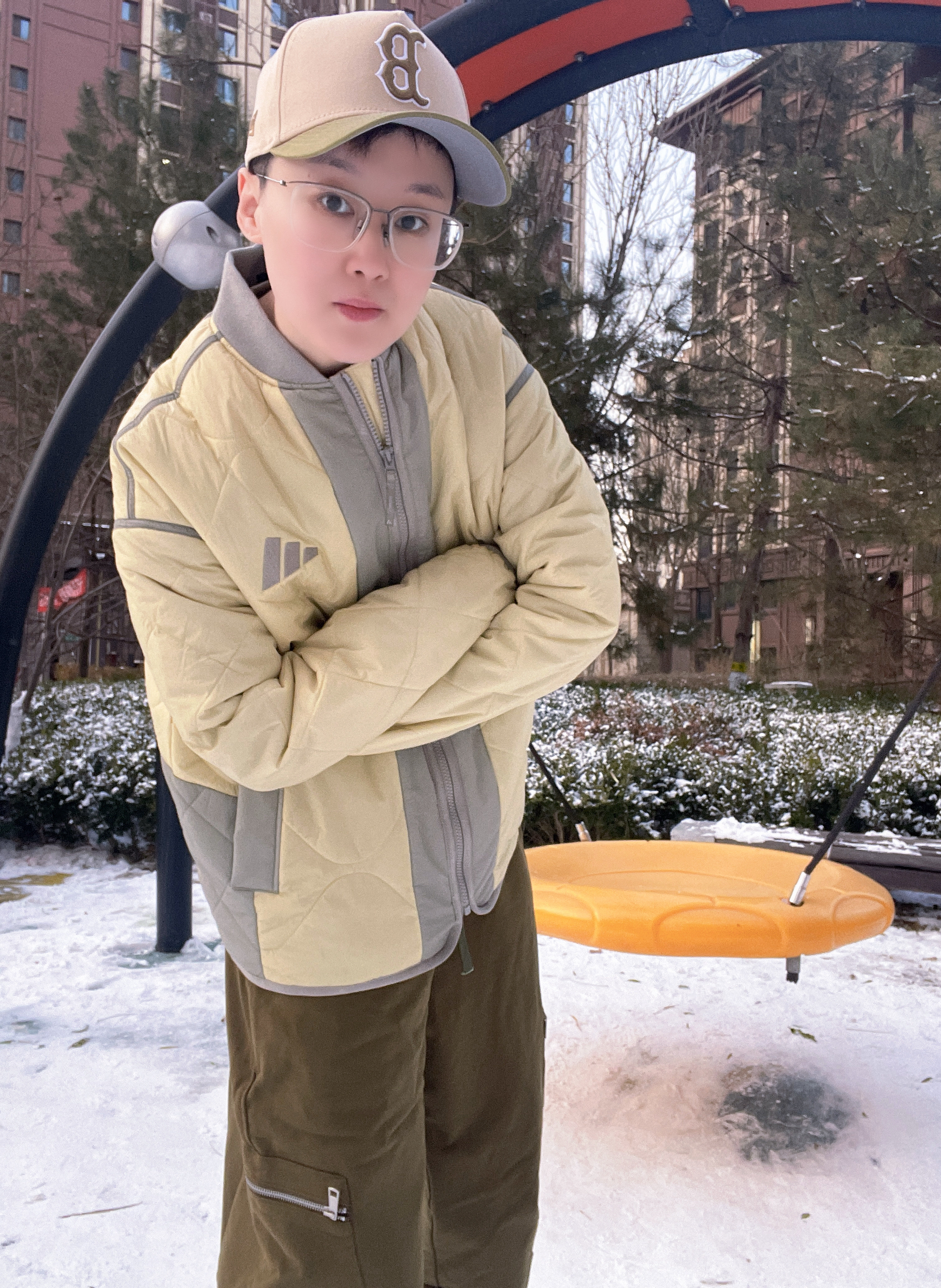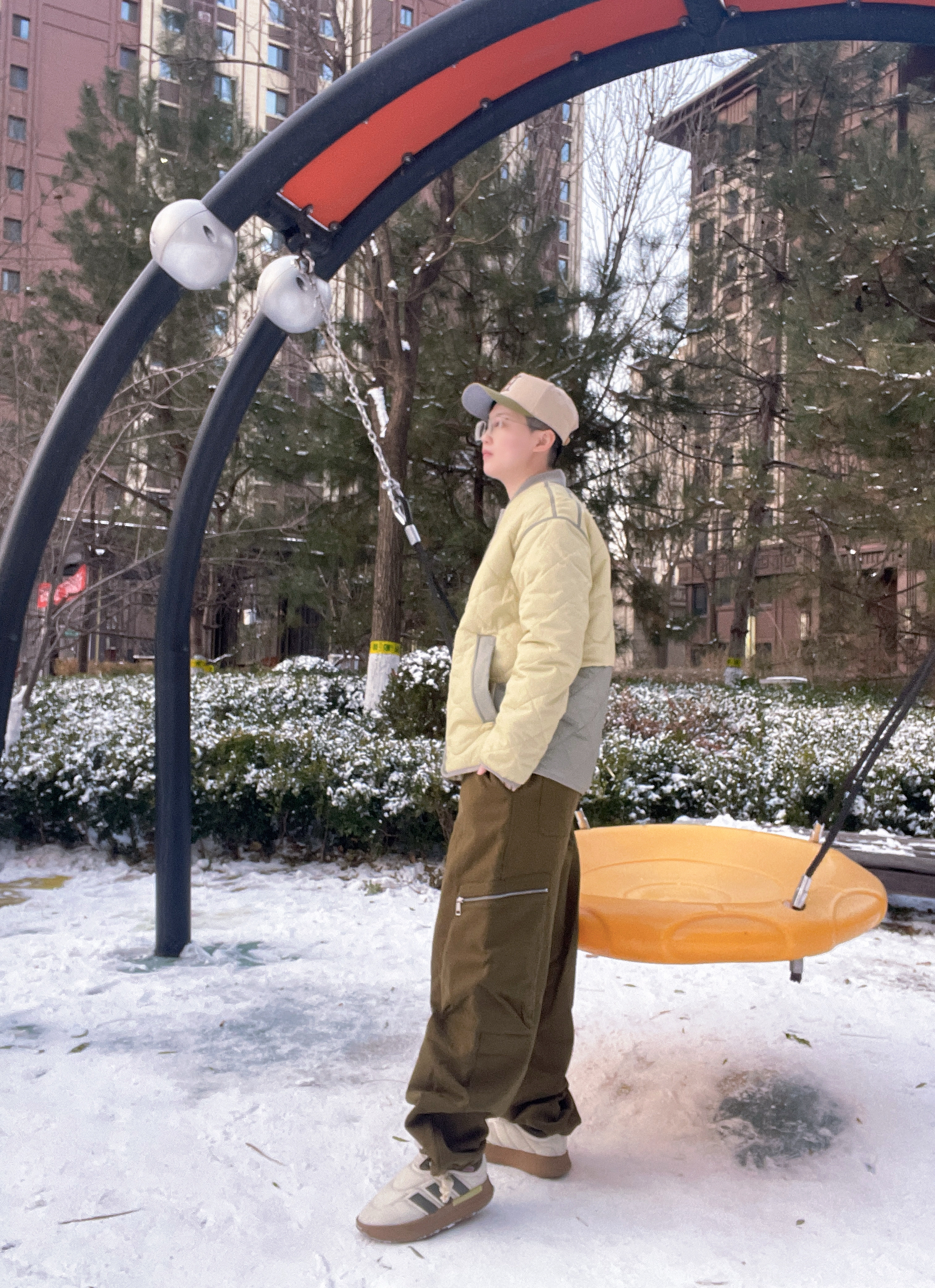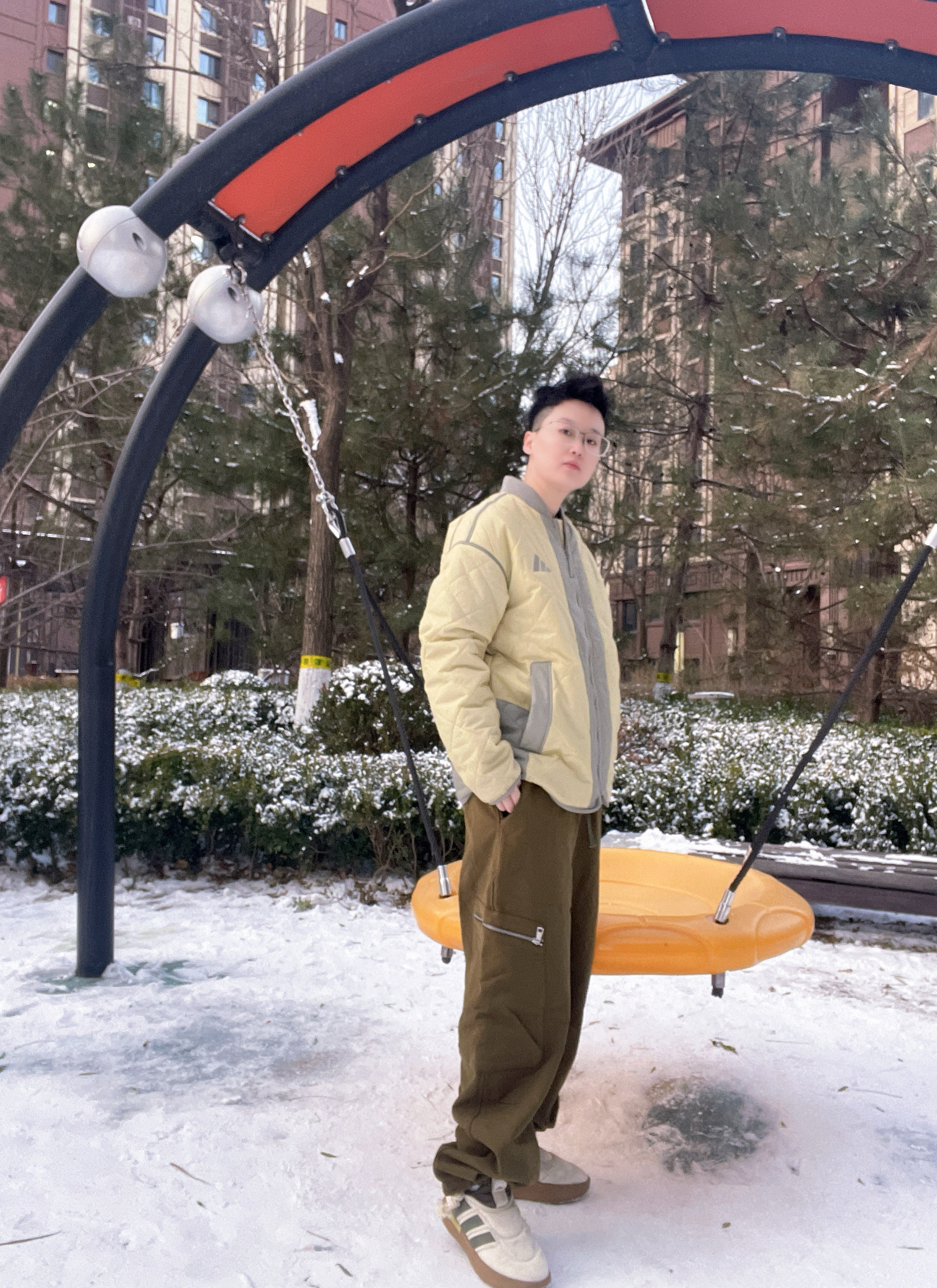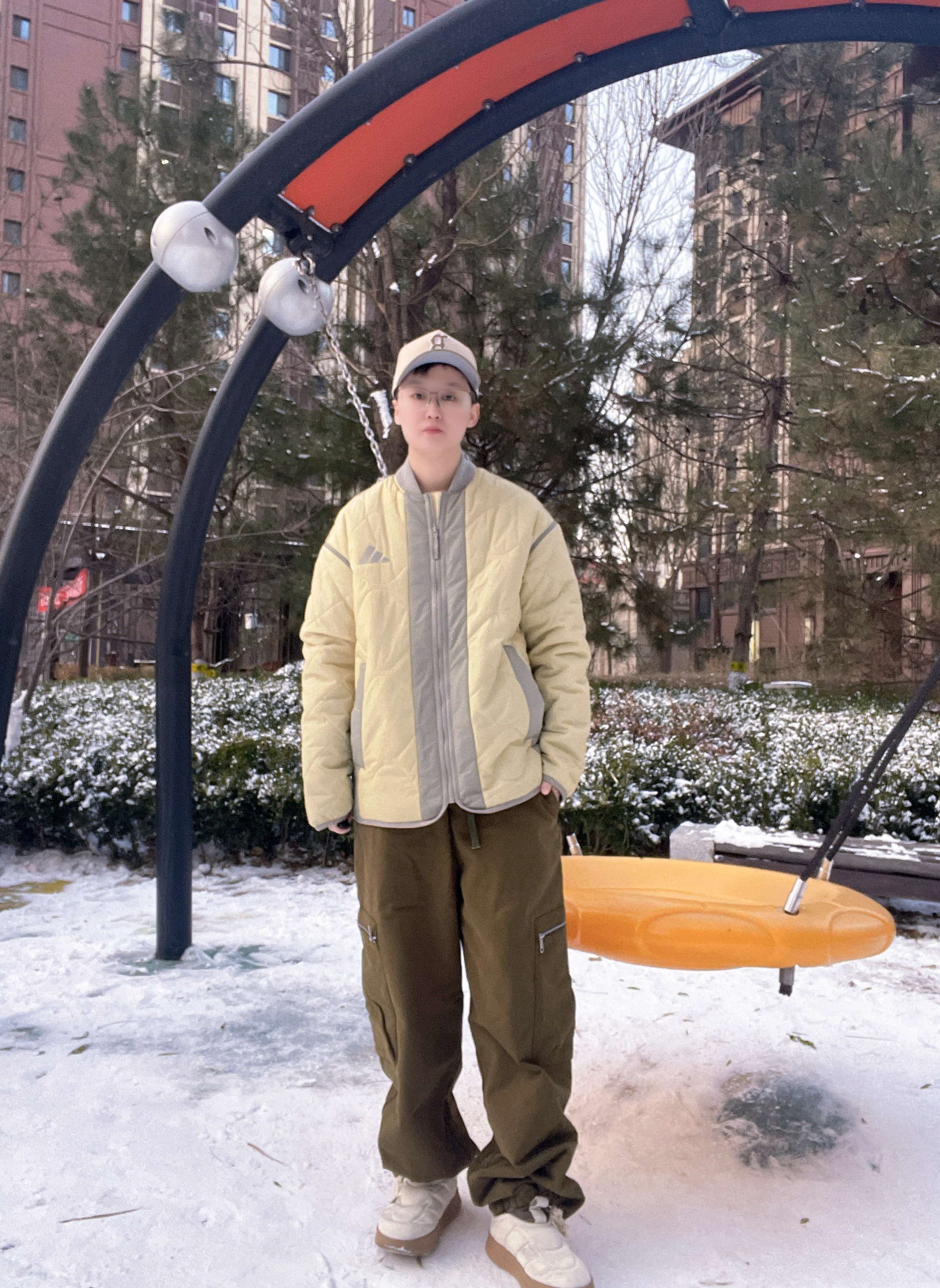 阿迪棉服+一脚蹬板鞋,轻暖防风还百搭,雪天搭工装裤超有范儿,颜值与实用性双在线!