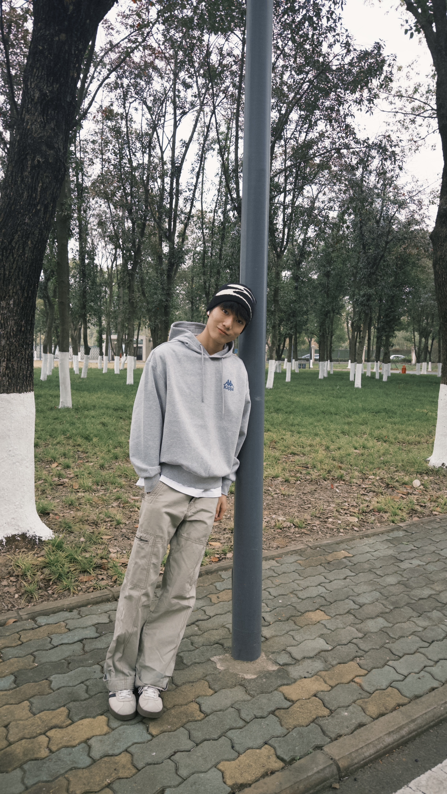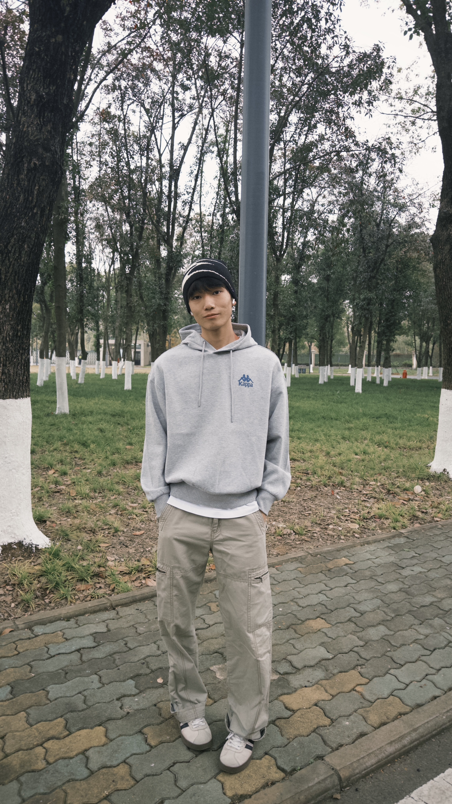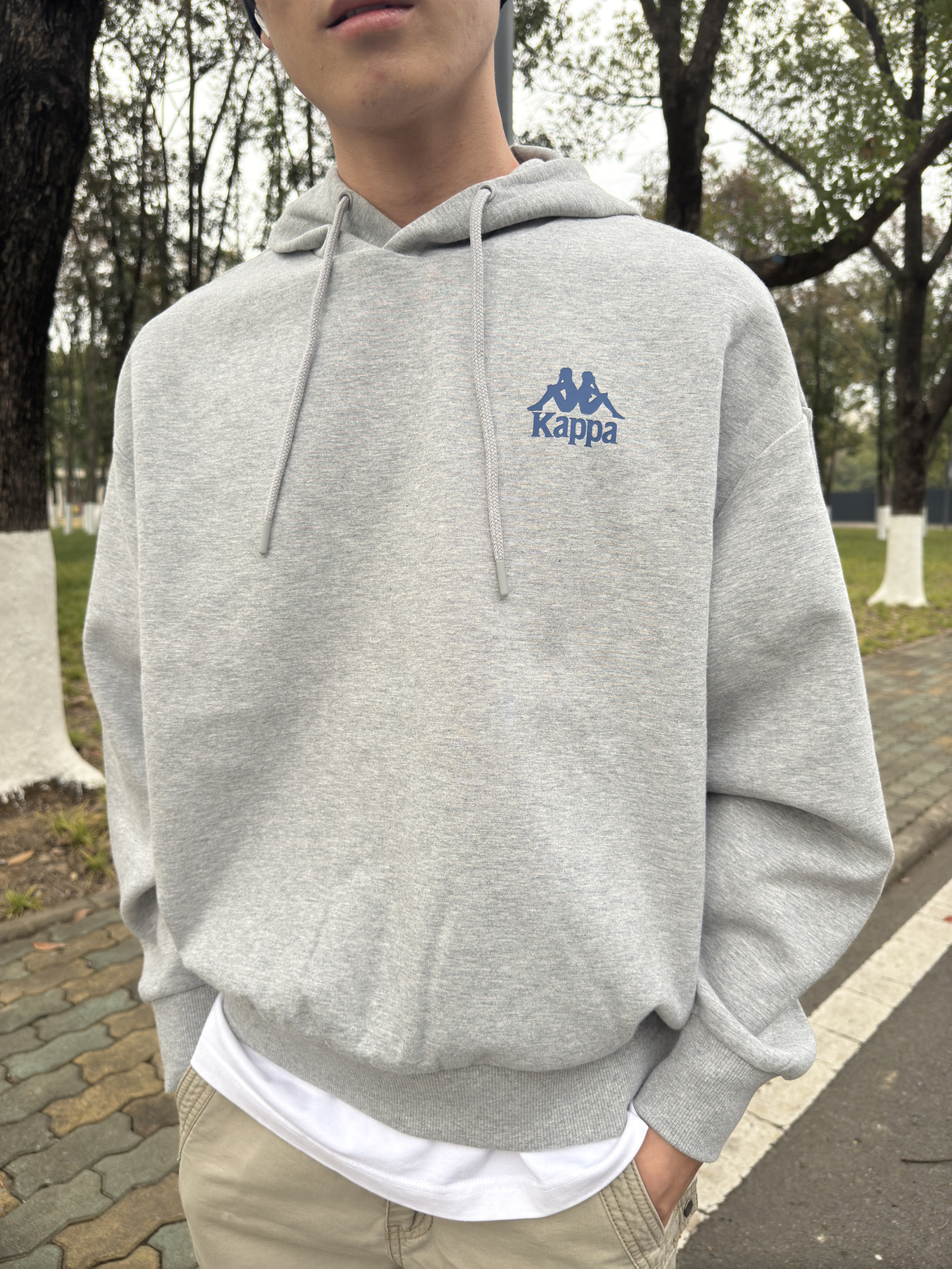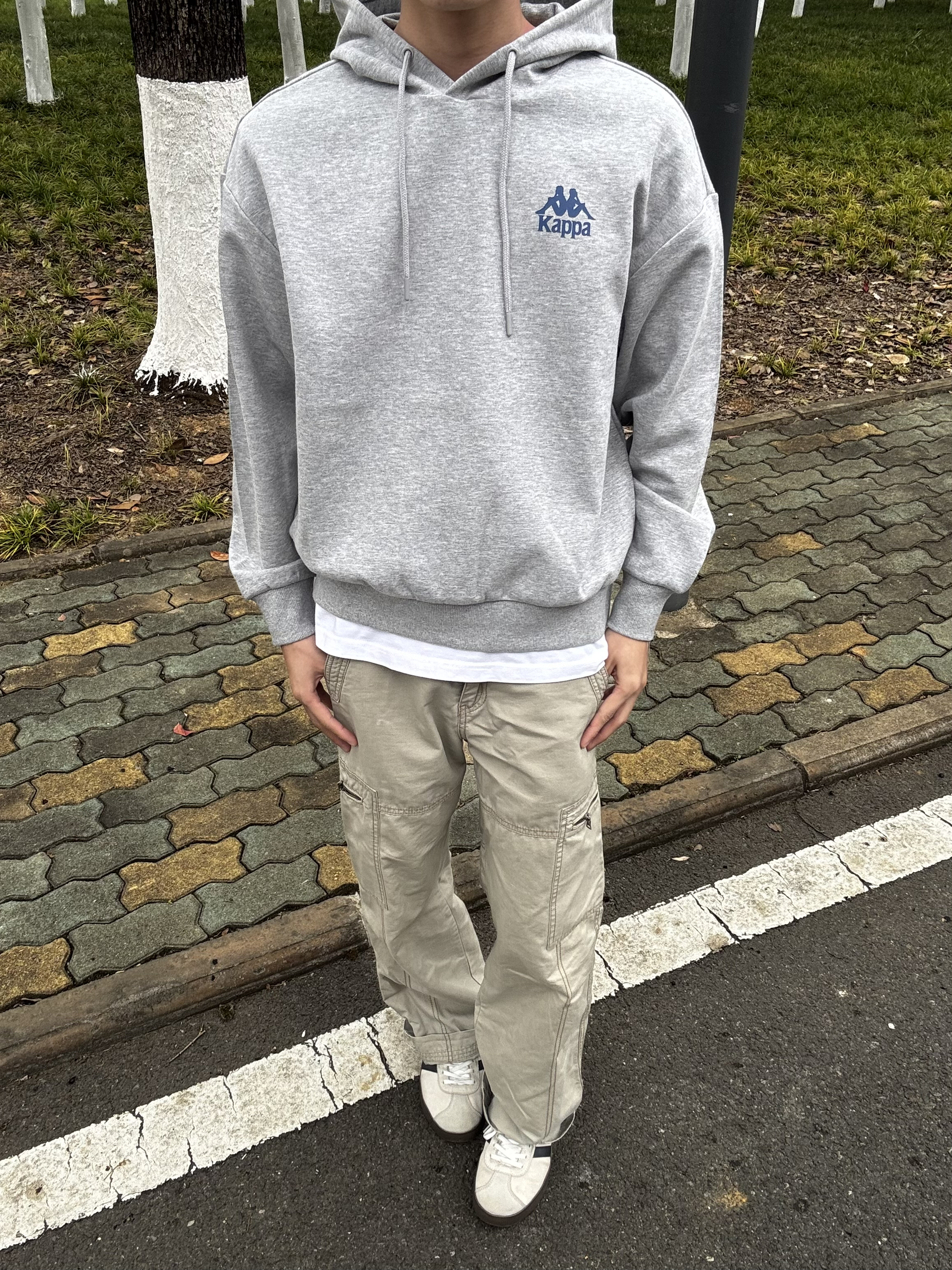小帅今日穿搭👦 这抹浅灰一上身,直接戳中秋冬的“温柔潮”👇 • 小标藏满复古感:胸前蓝调小人标低调又识货,懂Kappa的朋友扫一眼就问“这是经典款吧”,细节里的质感直接拉满 • 软到不想脱:裹在身上像抱了团云,连帽绳垂着都顺得舒服,逛公园吹冷风时,兜帽一拉暖得刚好 • 搭卡其裤直接赢麻:oversize版型配工装裤,下摆露点白边,走在林荫道里随便拍都是“慵懒潮人”既视感 小帅身高179体重1...