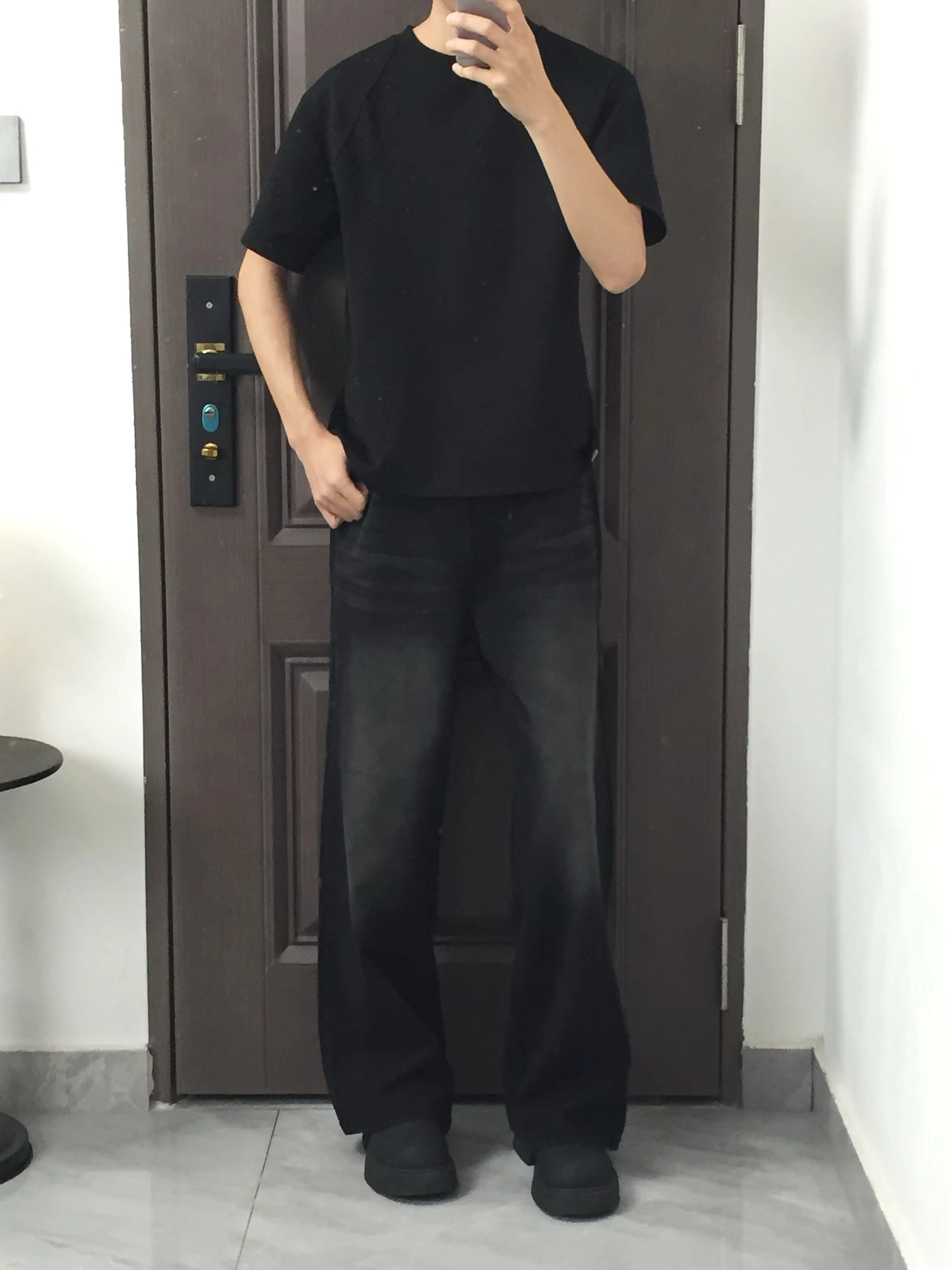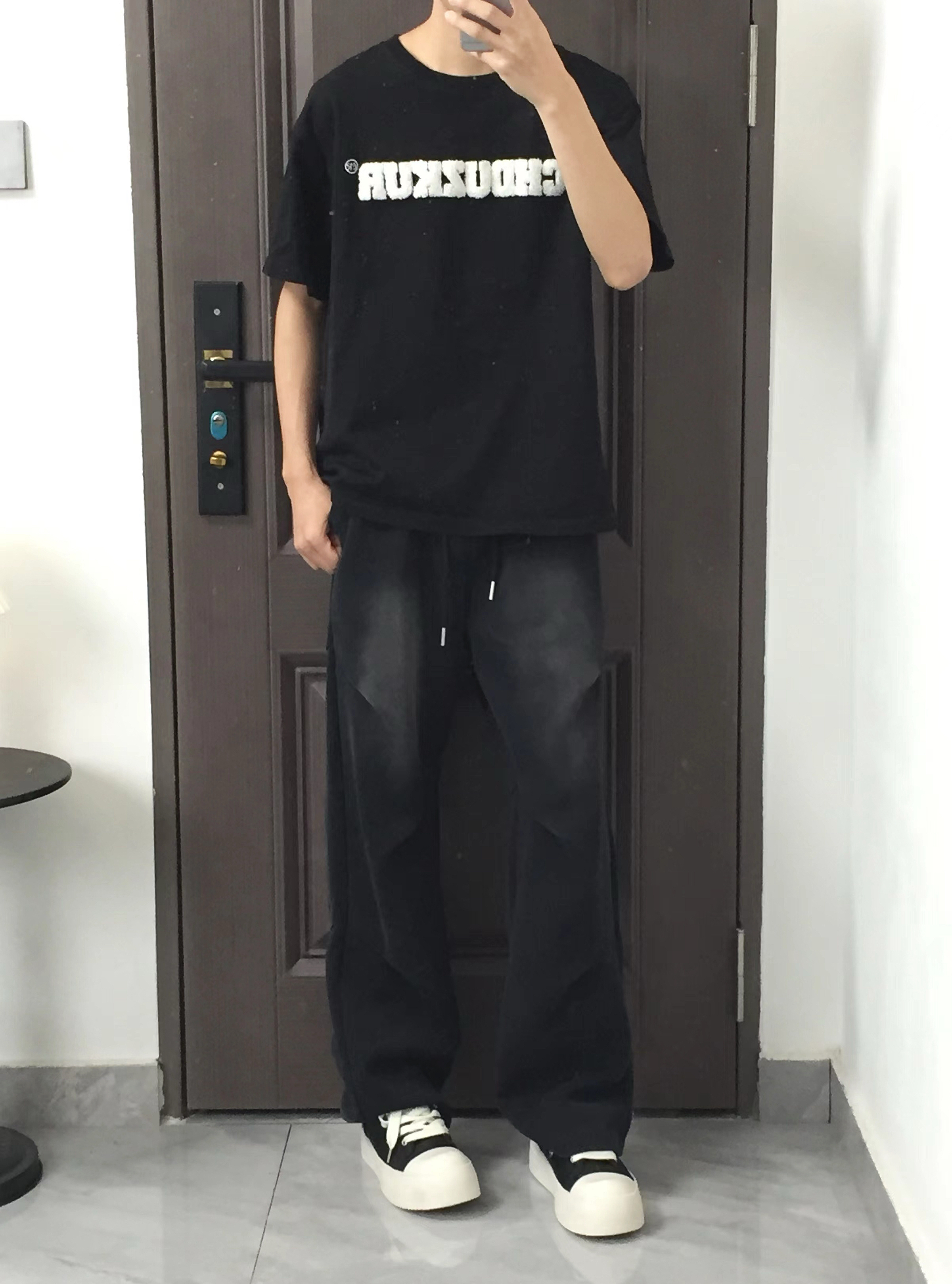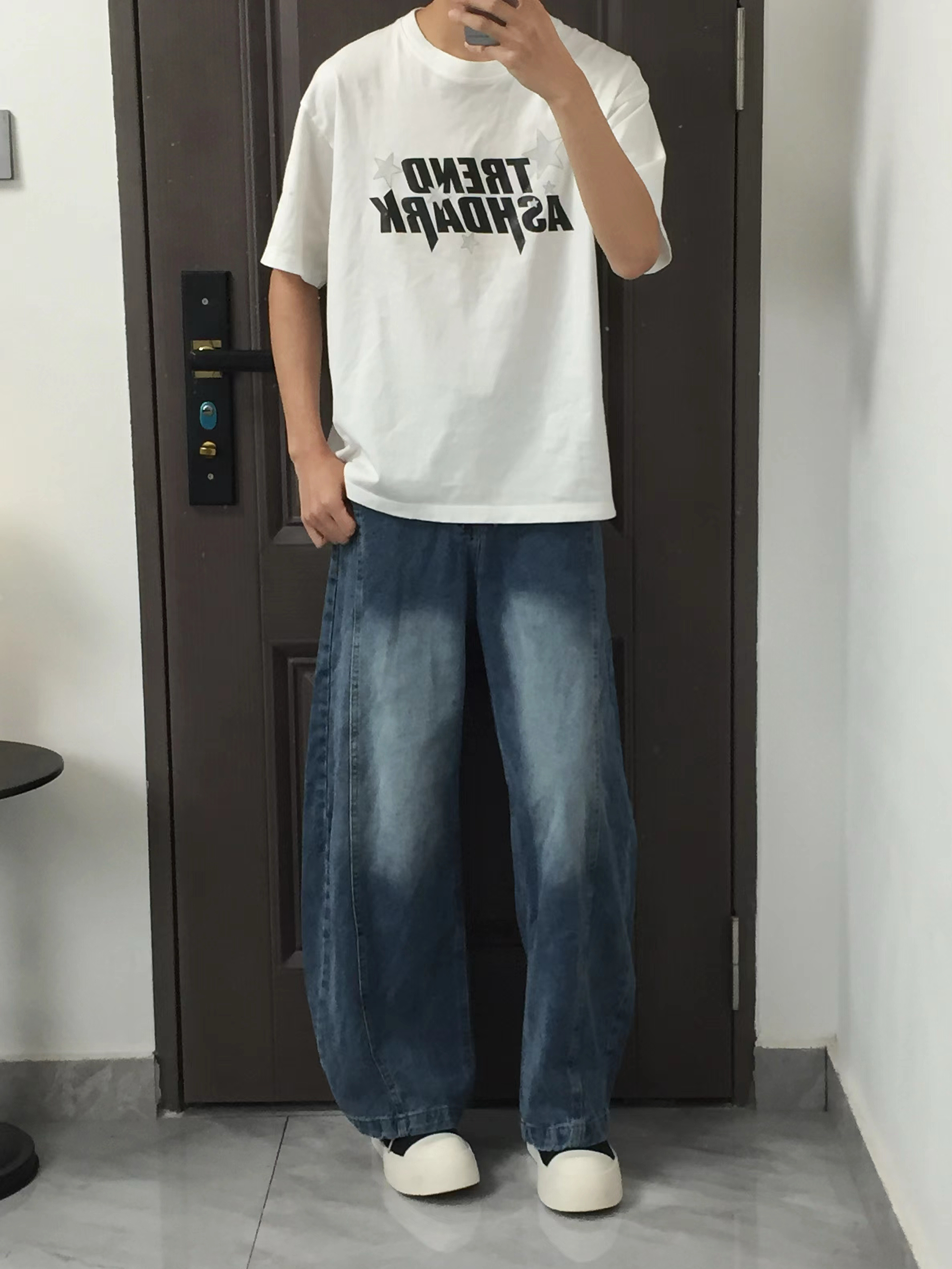 第一套是白印花T+卡其工装裤,经典的休闲工装风,白T的字母印花增加设计感,卡其工装裤的大口袋和阔腿版型,不仅遮肉还能穿出随性的街头感,搭配小白鞋清爽又少年气。 第二套纯黑插肩袖T+黑灰渐变牛仔裤,all black的搭配自带酷感,插肩袖的版型修饰肩线,渐变牛仔裤打破纯黑的沉闷,整体简约又不单调,走暗黑系风格的男生直接冲。 第三套白印花T+水洗蓝阔腿牛仔,清爽的蓝白配是标配,水洗做旧的牛仔裤自带...
