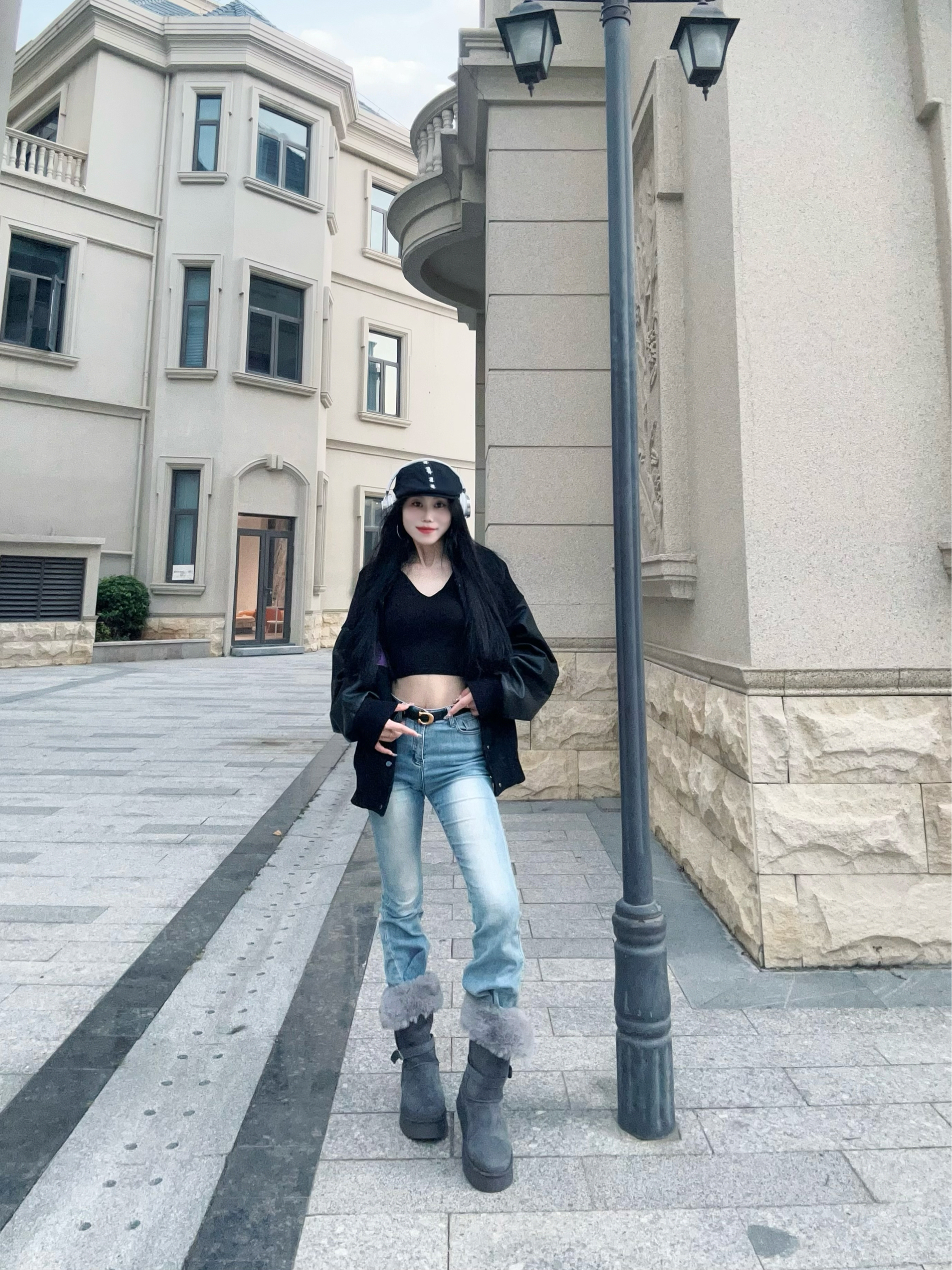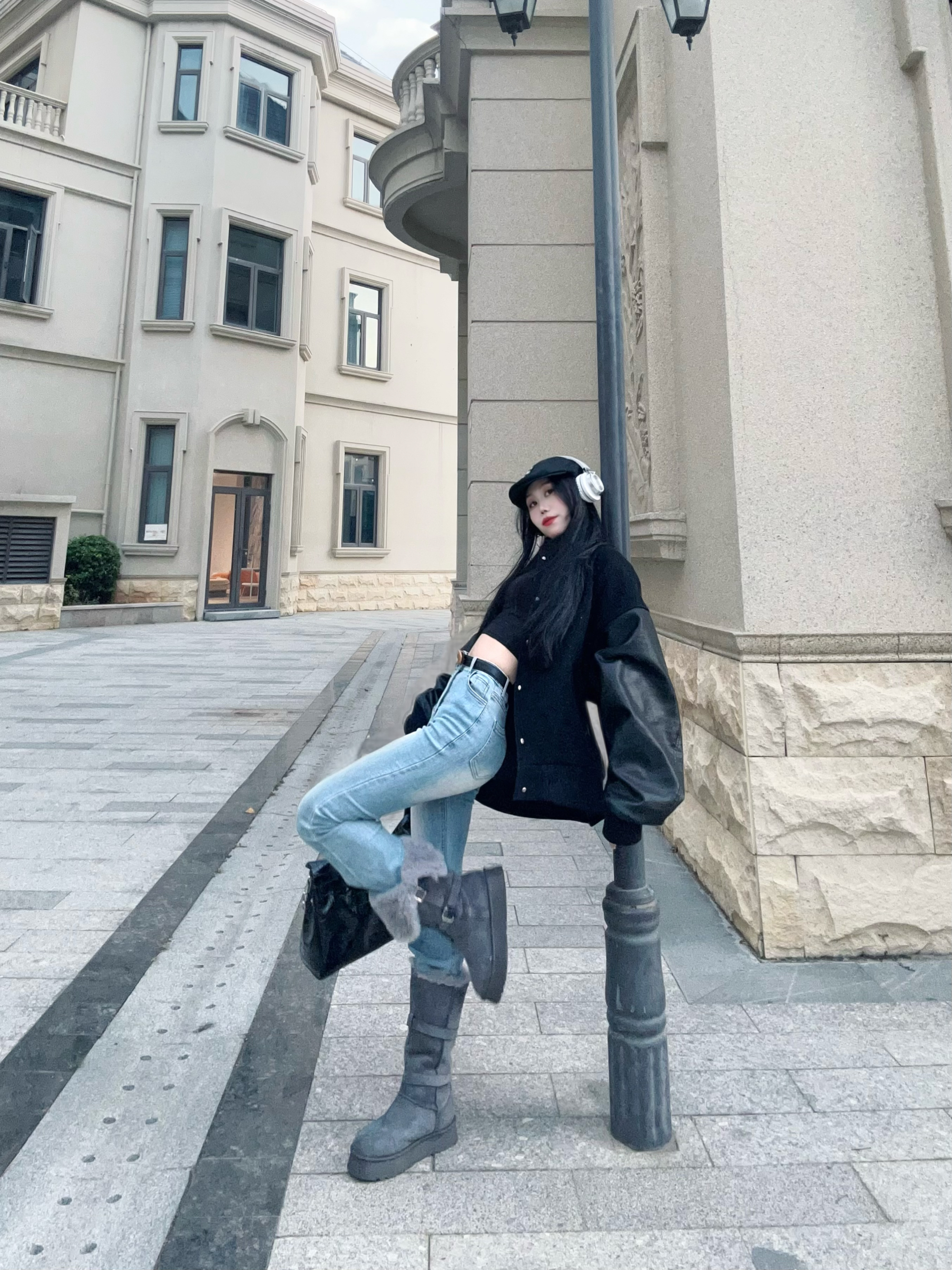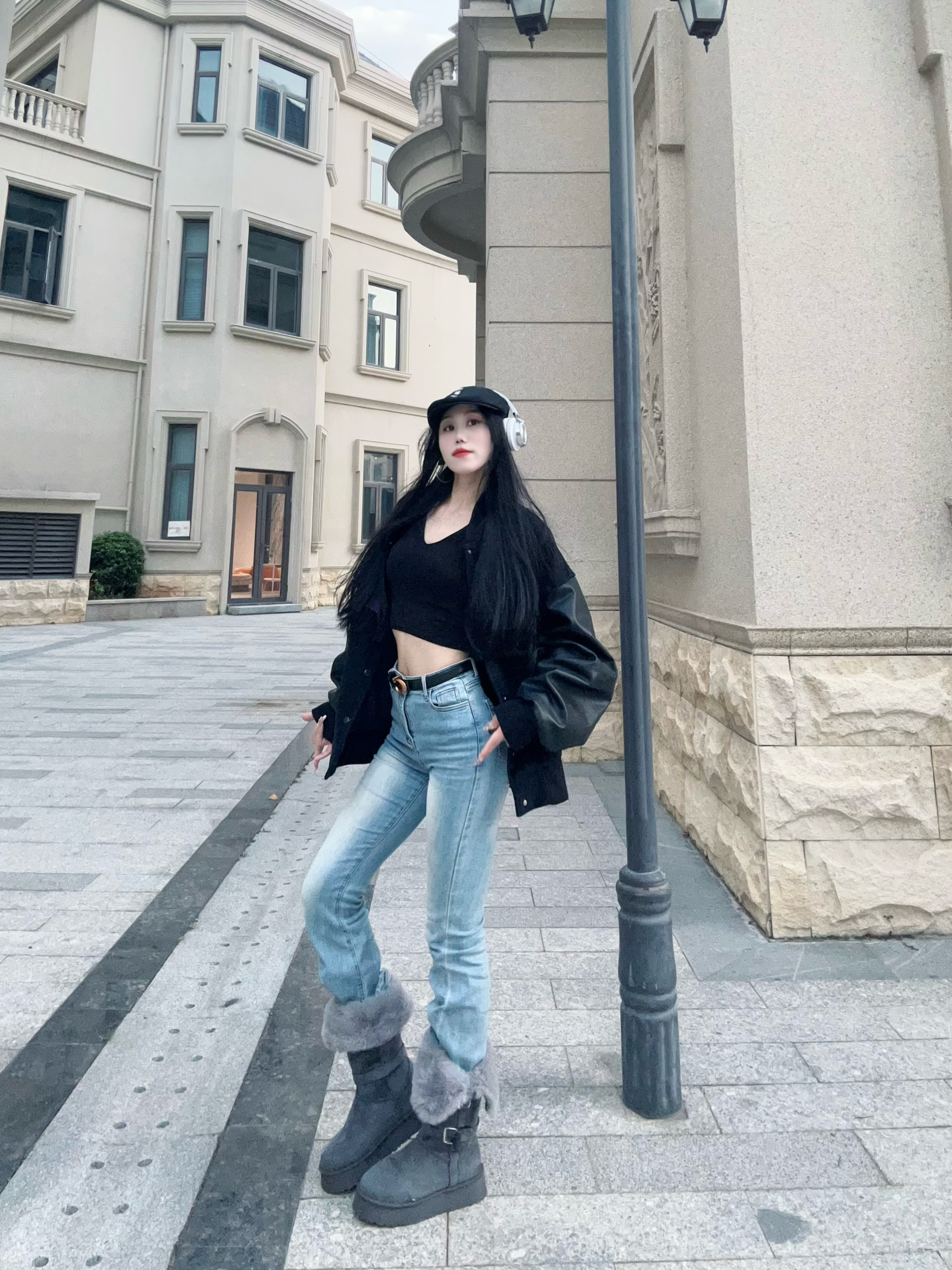 冬日出街从头暖到𝙟𝙞𝙤👣 性感好看又很有张力 随性高冷 却时髦感十足 - 今天的𝙤𝙤𝙩𝙙我真的好喜欢 紧身微喇叭牛仔裤👖搭配灰色长靴👢 裤腿塞进毛绒绒的靴子里面 小腿以下一下子就暖到要出汗 - 而且这个靴子还有两种穿法 全立起来真的无敌保暖 折一半下来露出毛绒绒的边边 视觉就暖和了很多呀🤩 鞋底防滑又耐磨 还自带增高效果 冬天穿它踩雪❄也不怕打滑 - 上衣搭配的紧身长袖+棒球服 感觉软硬结合...
